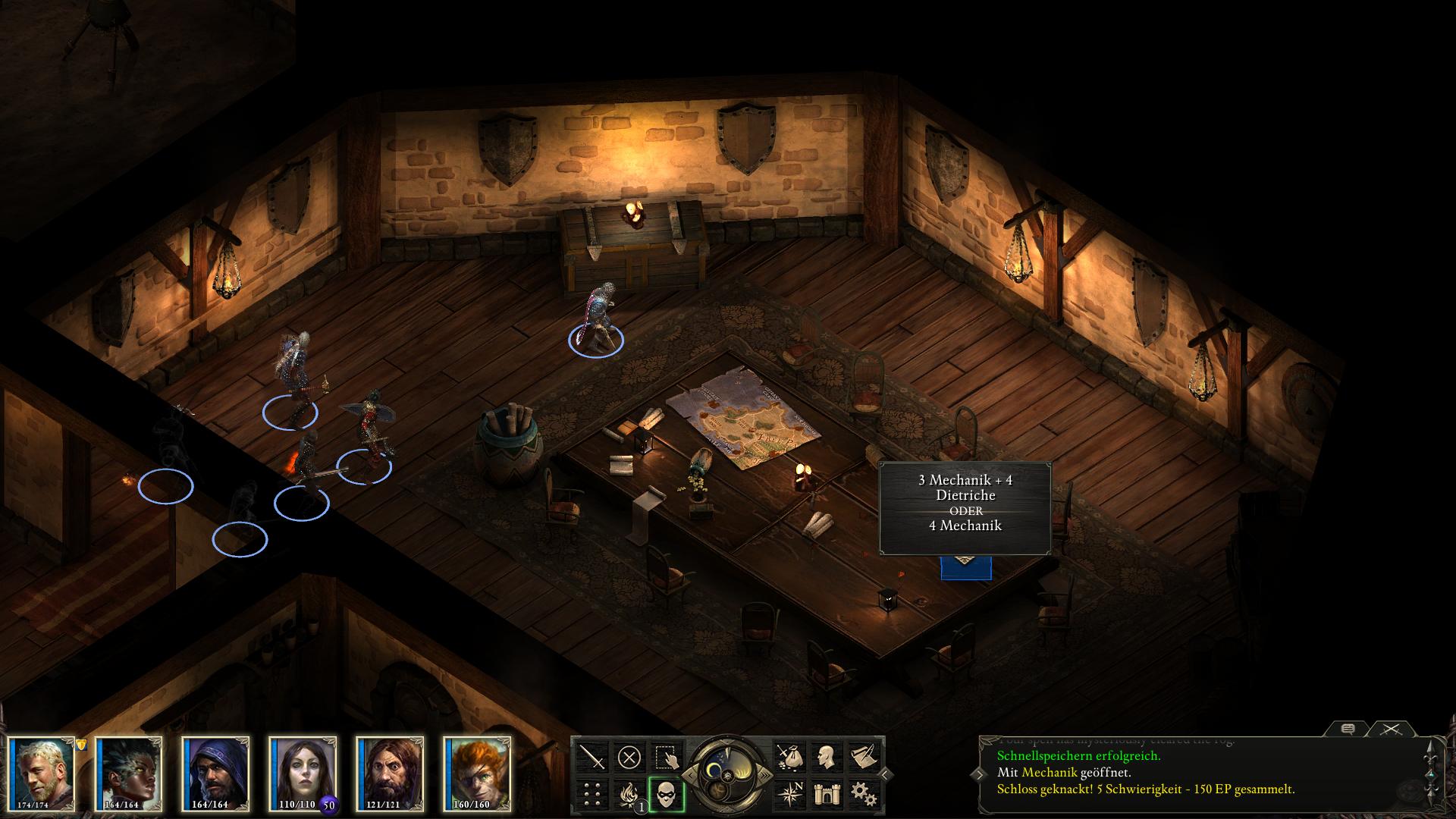- Die kleine Truhe auf dem Tisch im Hinterzimmer von Admeth Lager knacken (erfordert 4 Mechanik) und euch die Geologische Karte daraus schnappen.