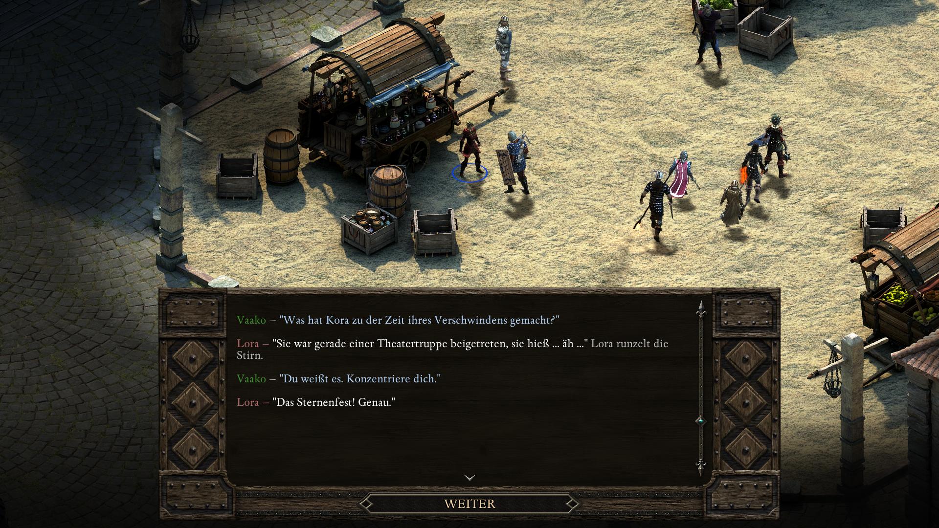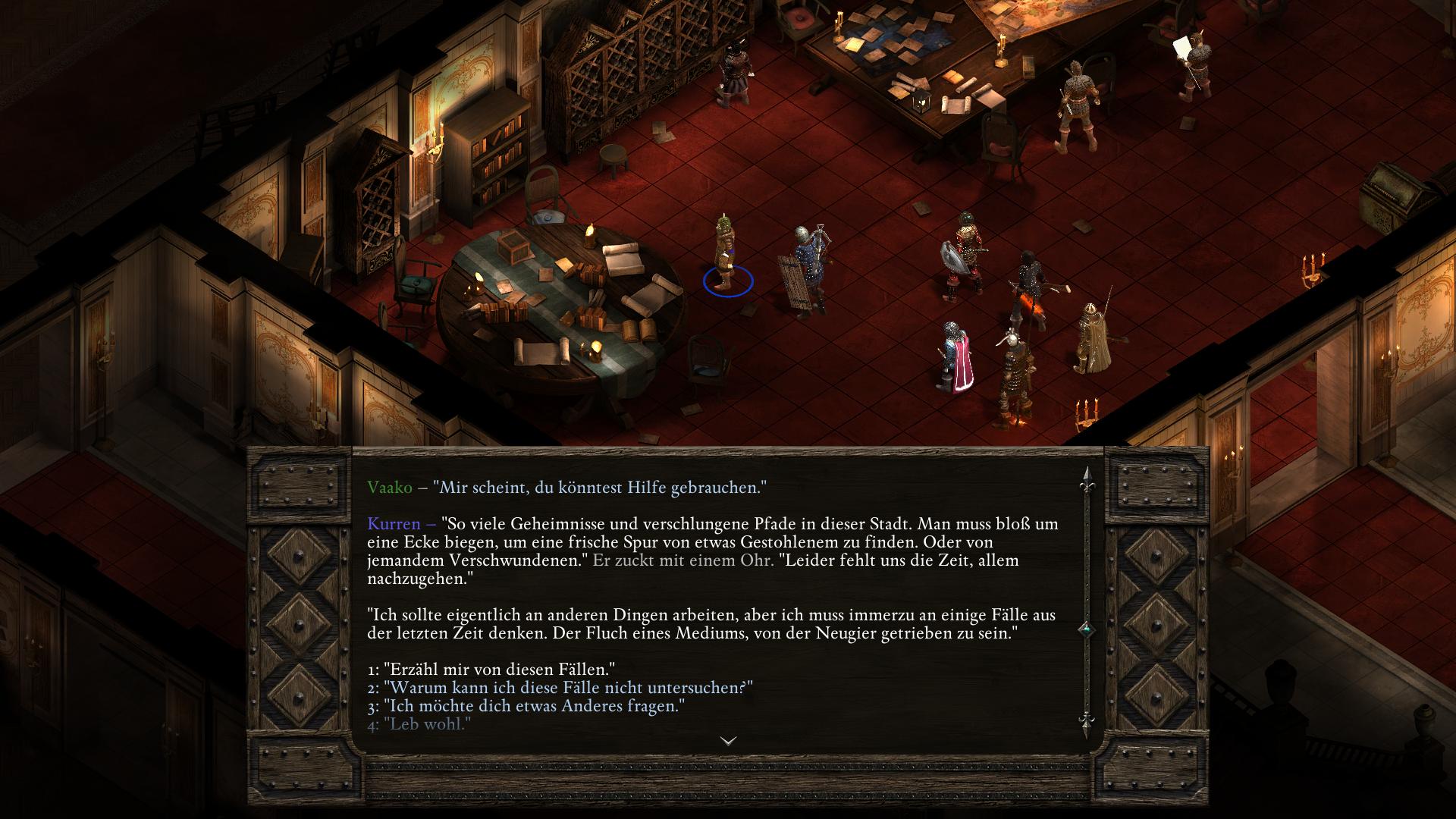 Kurren hat mir von drei Vermissten berichtet und mir gesagt, wer sie jeweils als vermisst gemeldet hat. Ich sollte mit Oly, Lora und Elcga sprechen.