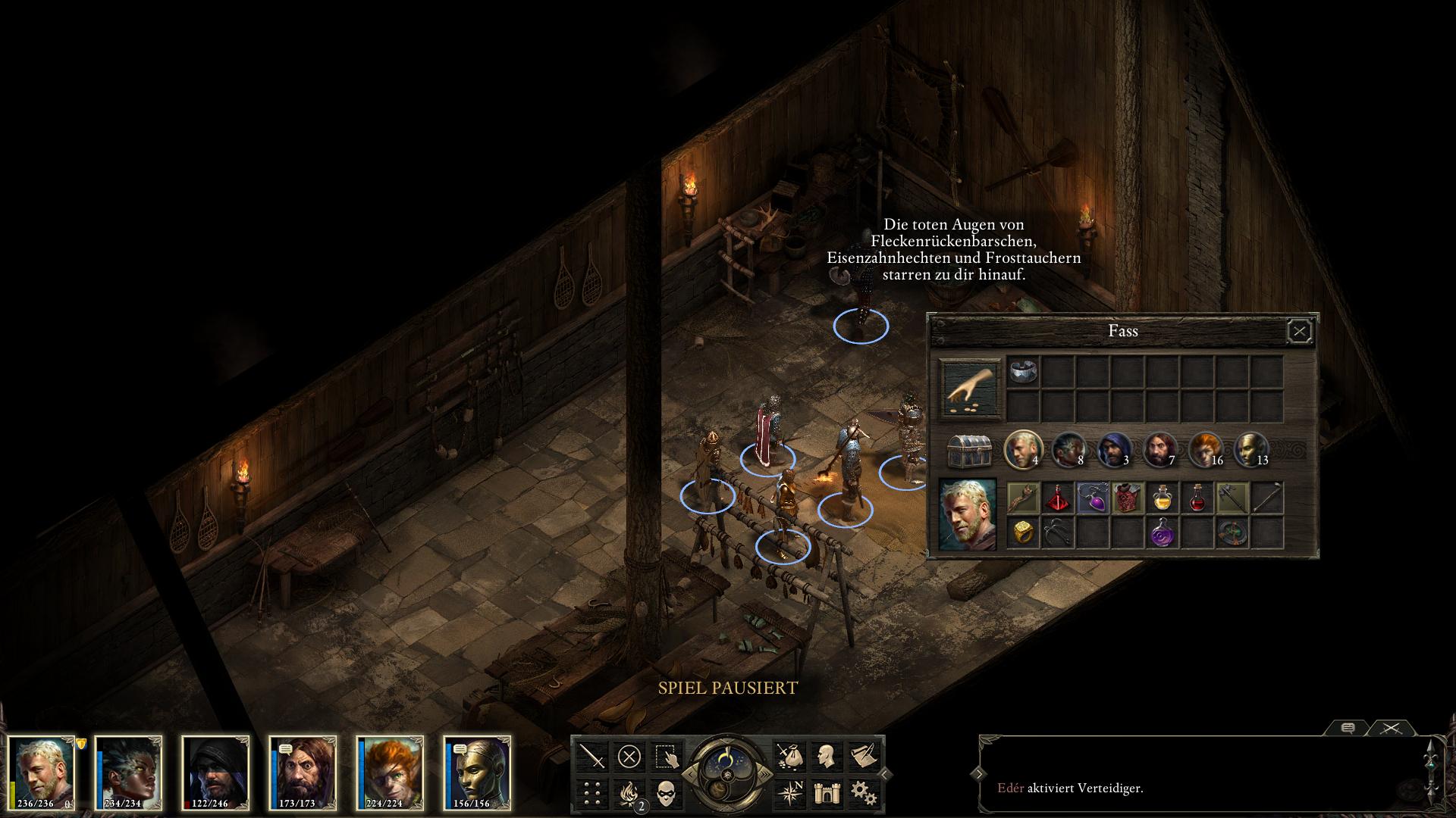 Die Reaktion "Nein. Damit kommst du nicht davon." oder der direkte Angriff, zwingen euch Grynde zu töten. Was euren Ruf in Stalwart verschlechtert (Gering Negativ), weil ihr seinen Kollegen ebenfalls töten müsst. Galvino findet es zwar nicht gut, dass Grynde der Schmach entkommen ist, belohnt euch aber dennoch mit zwei Saphiren, zwei Topas und zwei Tränken der Großen Ausdauer. - Grynde vertreiben