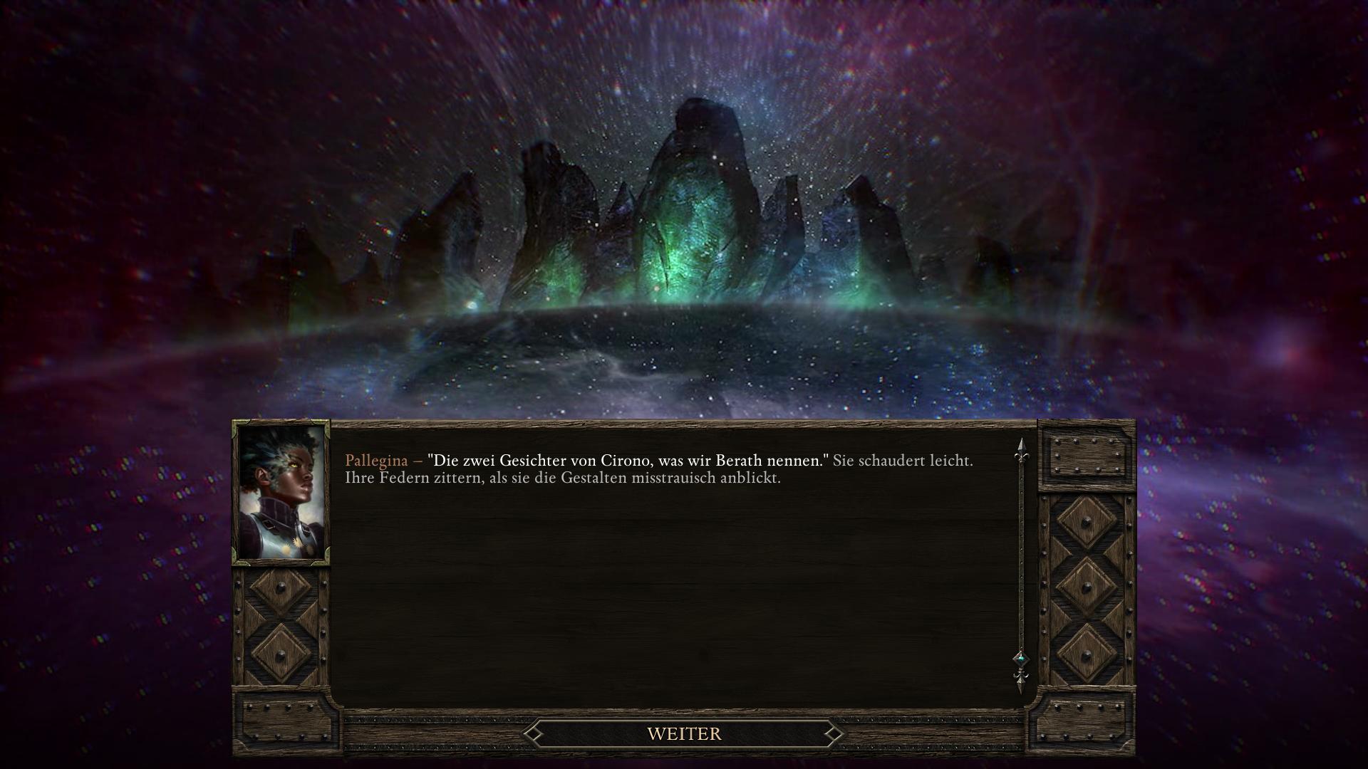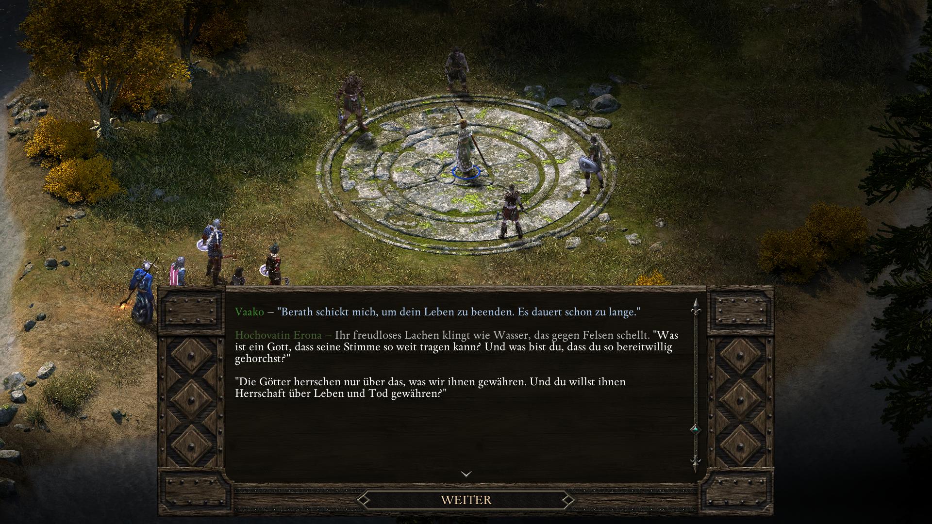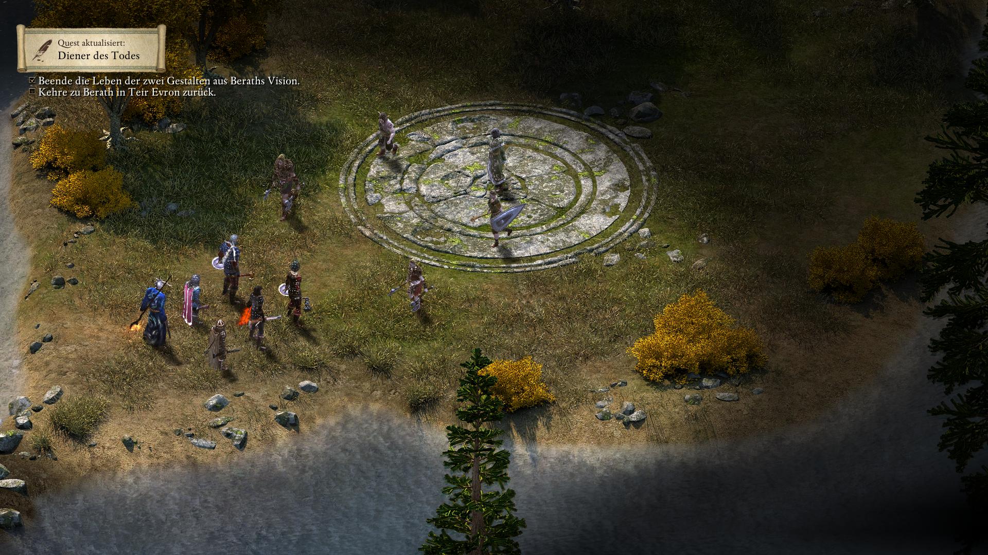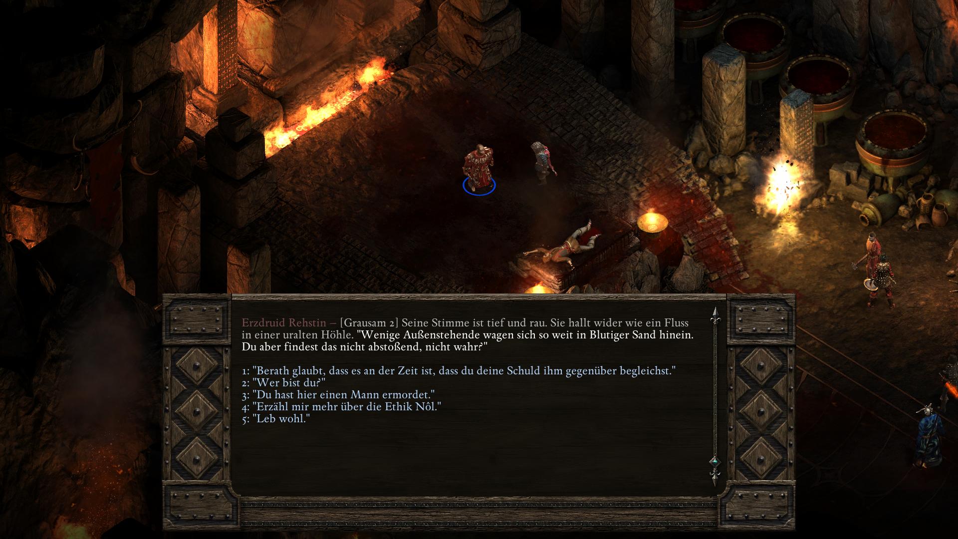 Berath, der Gott des Todes und der Wiedergeburt, hat mir eine Vision einer Elfin und eines Zwergs gezeigt, die auf einer Straße angehalten haben. Durch meine Berührung starben sie - erst dann konnte ich den Weg weitergehen.
