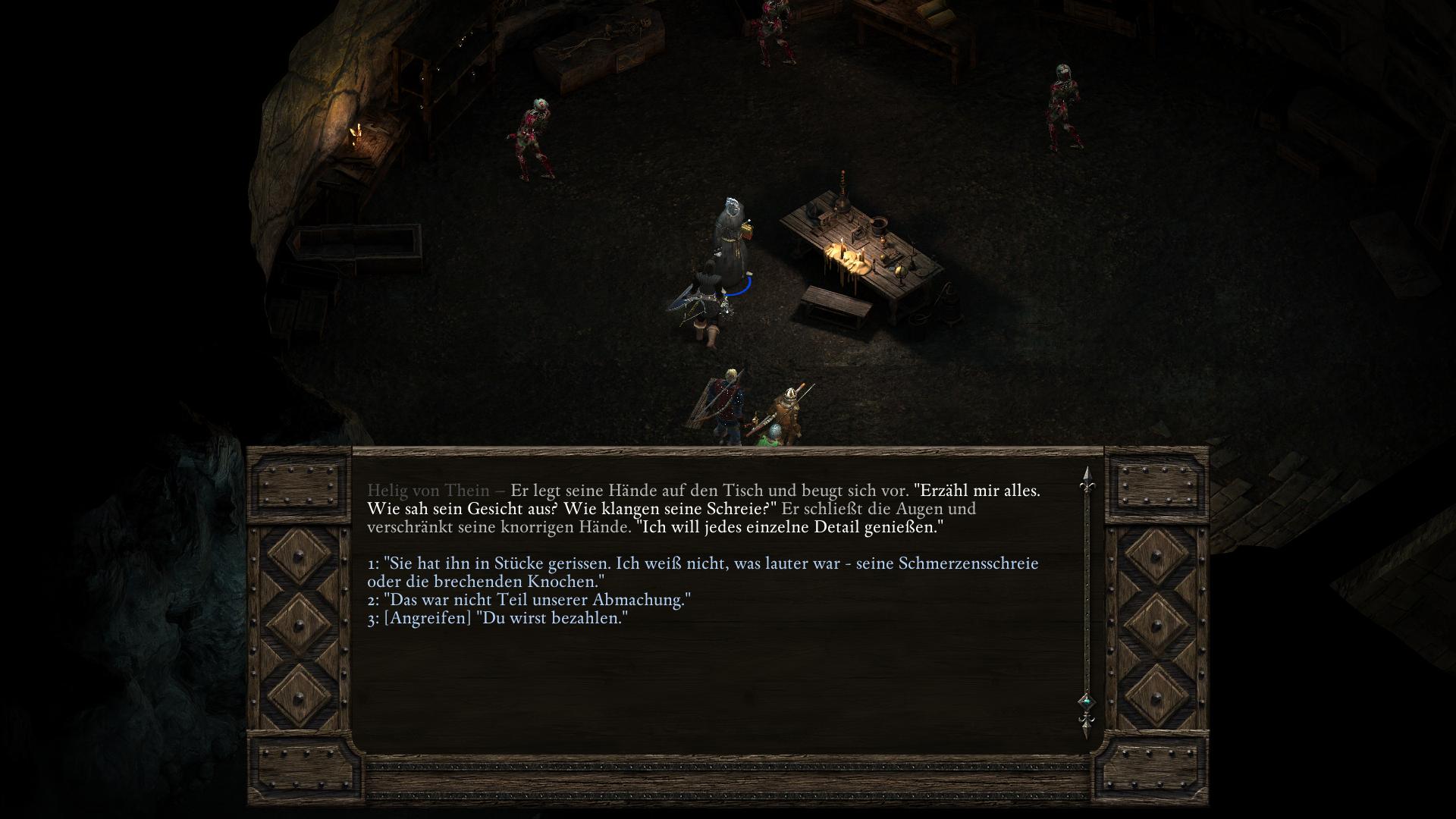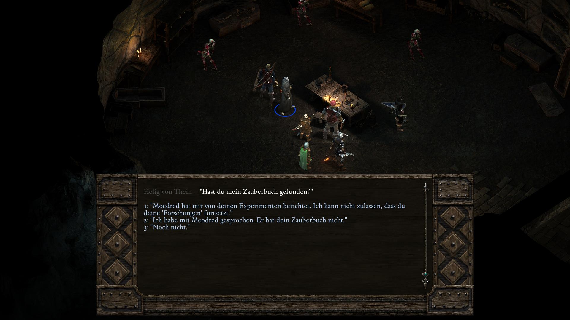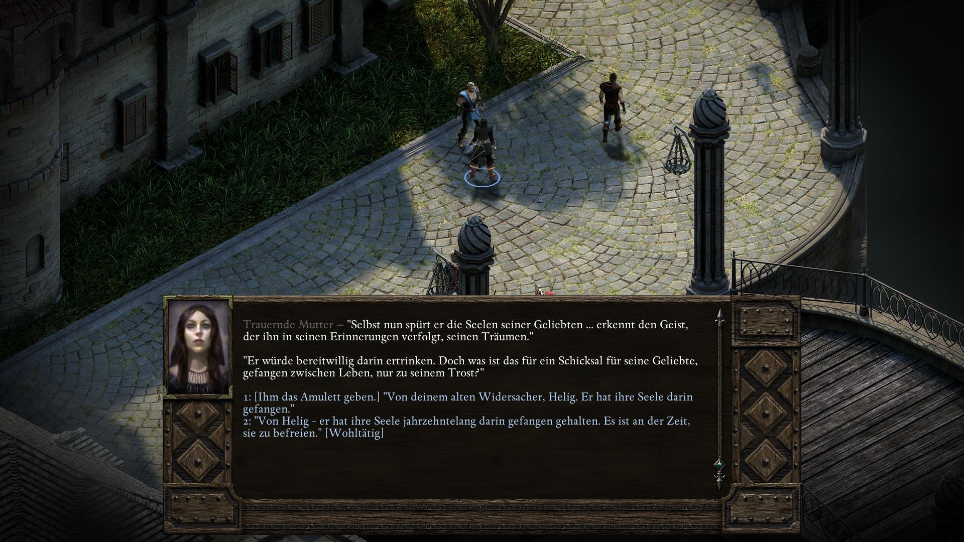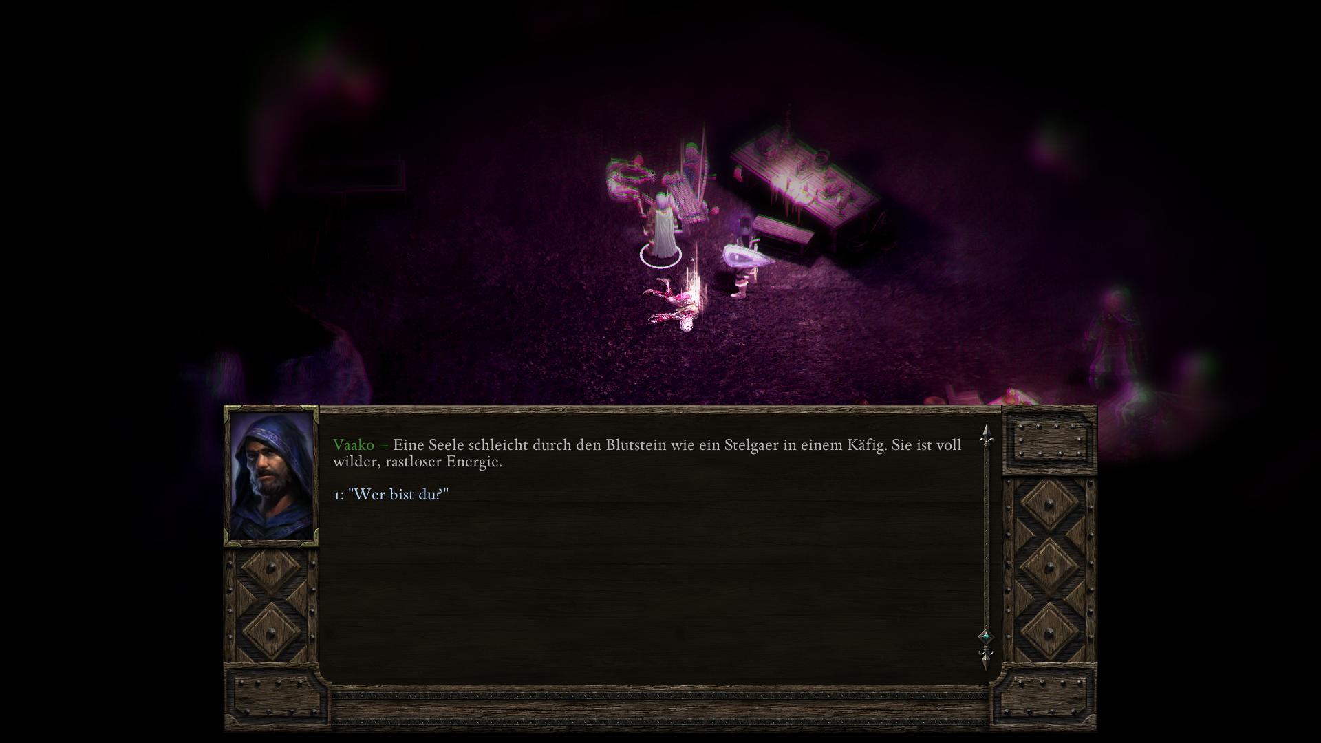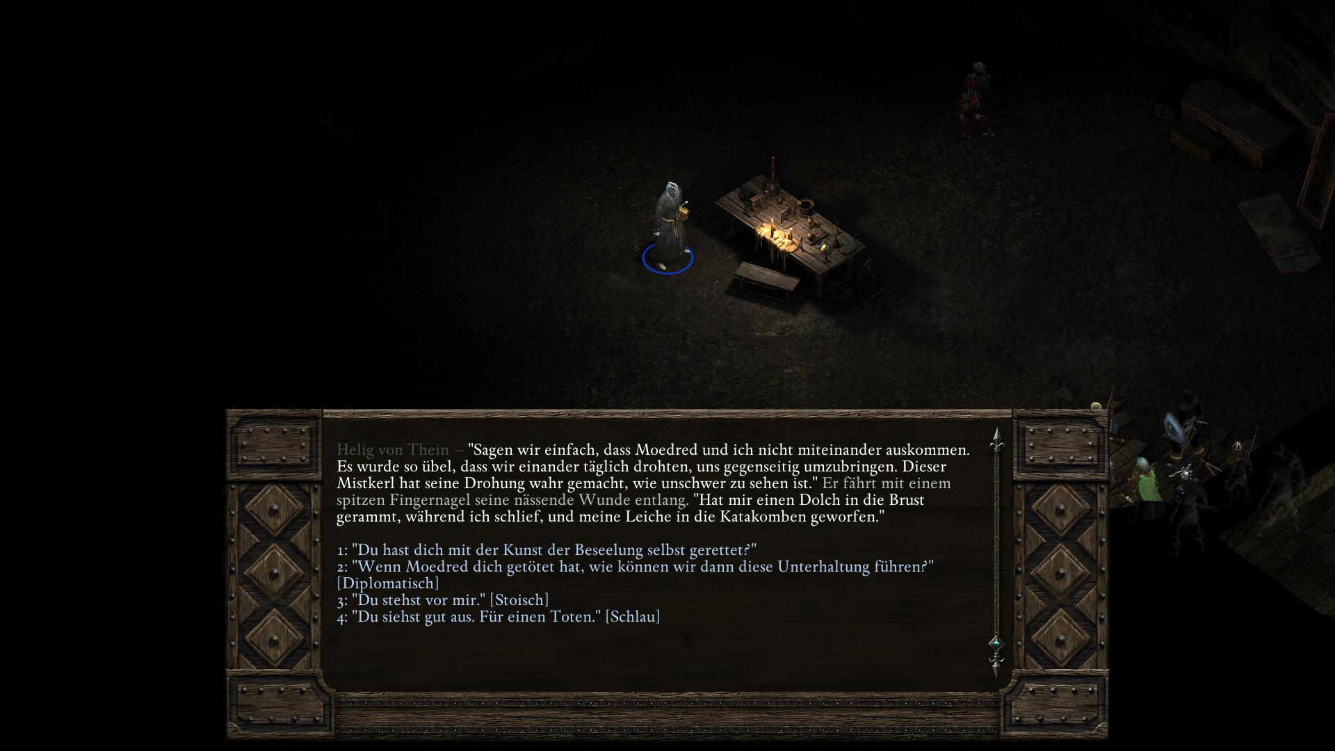 Im Westen des Kupferwegs (Copperlane) stammelt ein alter Mann [10] vor sich her. Sprecht ihr ihn darauf an, erzählt er euch von seiner Geliebten, die vor 60 Jahren gestorben ist, dessen Stimme er neuerdings aber wieder hört. Er bittet euch nach ihr in den Katakomben unter dem Kupferweg [13] zu suchen.