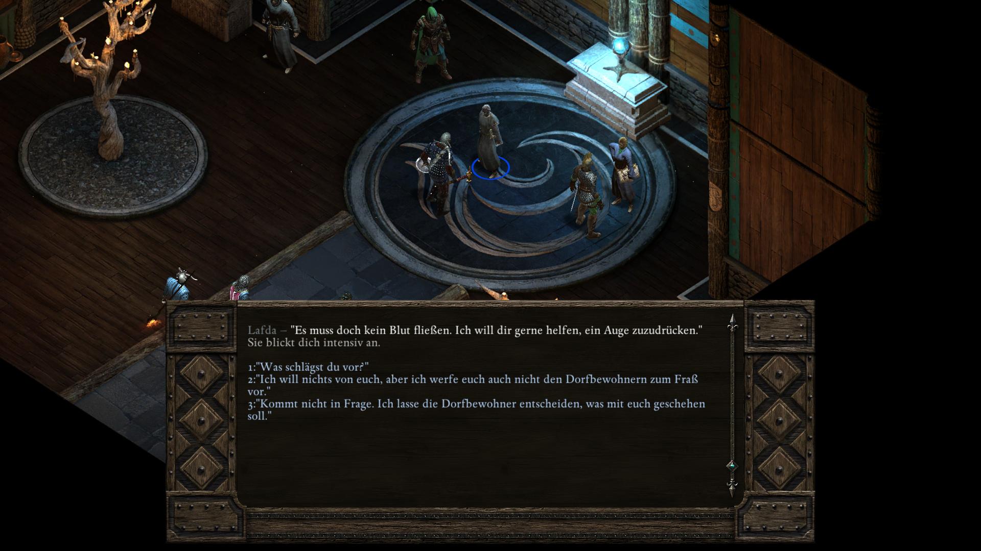 Kehrt ihr mit dem Fund zu Lafda im Ondra Tempel von Stalwart zurück, gibt diese zu, dass sie allen nur etwas vorgegaukelt haben und keine echten Priester sondern Diebe sind. Gleichzeitig zucken alle Akoltyen jedoch schon ihre Waffen, weshalb ihr eure nächsten Worte gewissenhaft wählen solltet.