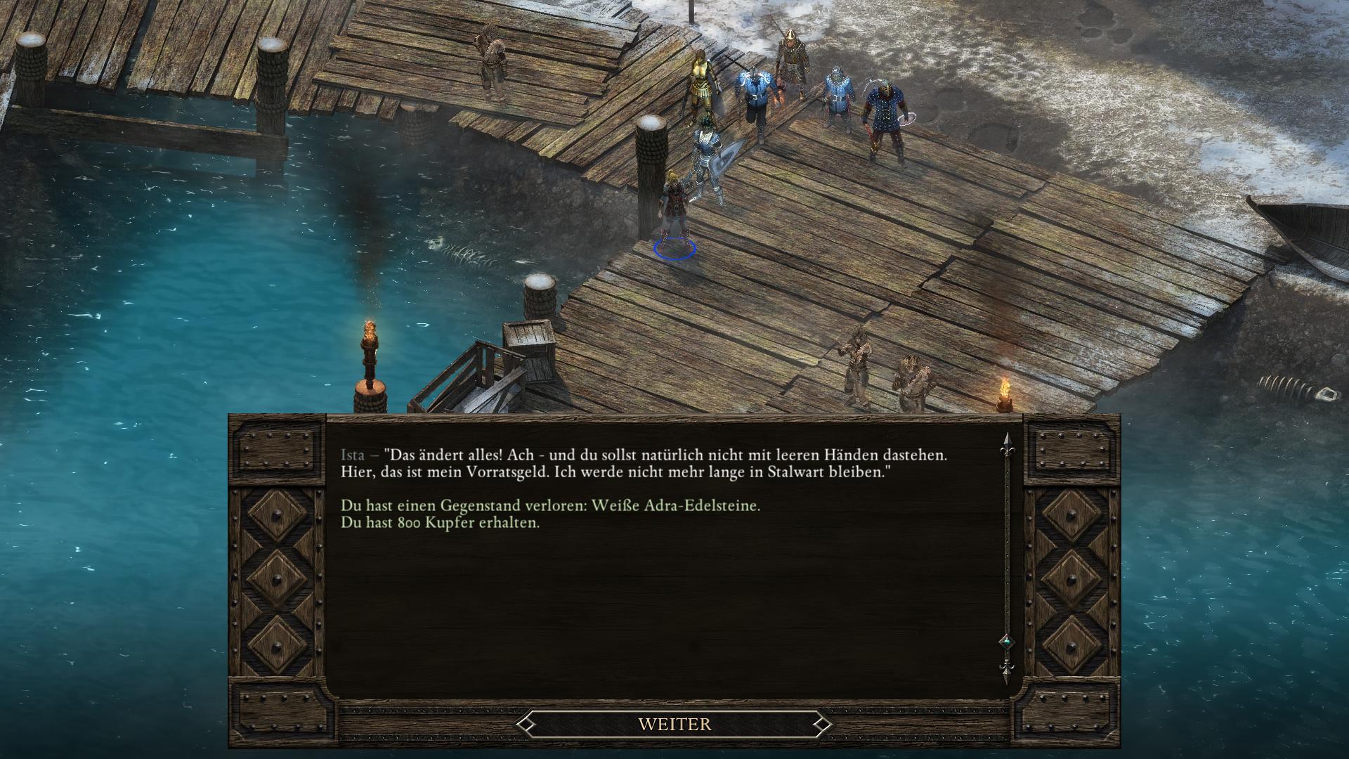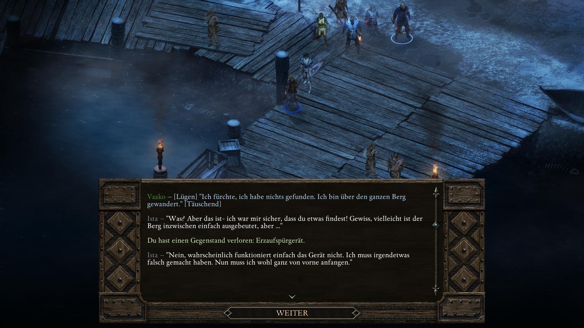 Erzählt ihr Ista hingegen, dass das Gerät funktioniert aber ihr die Edelsteine behaltet, hat sie keinen Beweis und gibt euch gar nichts. Ihr könnt die Edelsteine jedoch für 1.500 Kupfermünzen verkaufen. - Ist anlügen