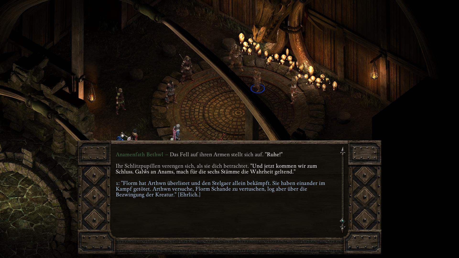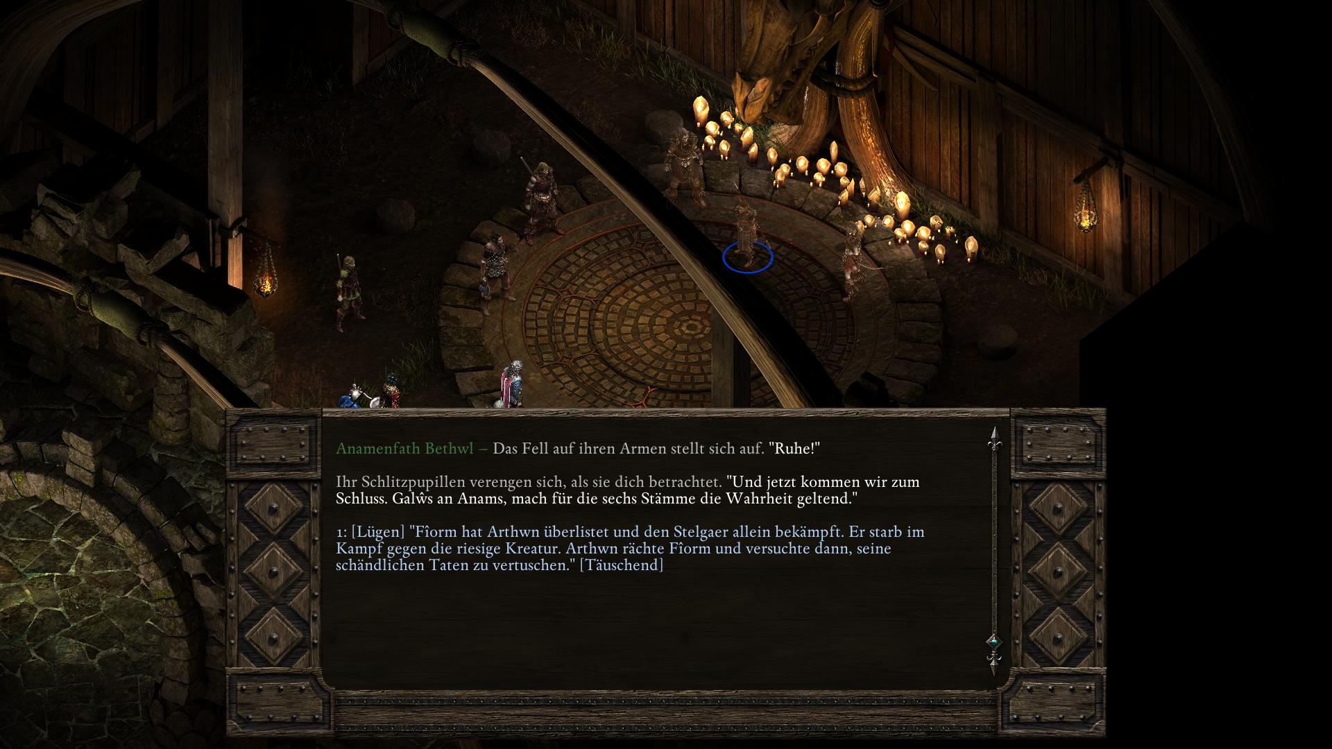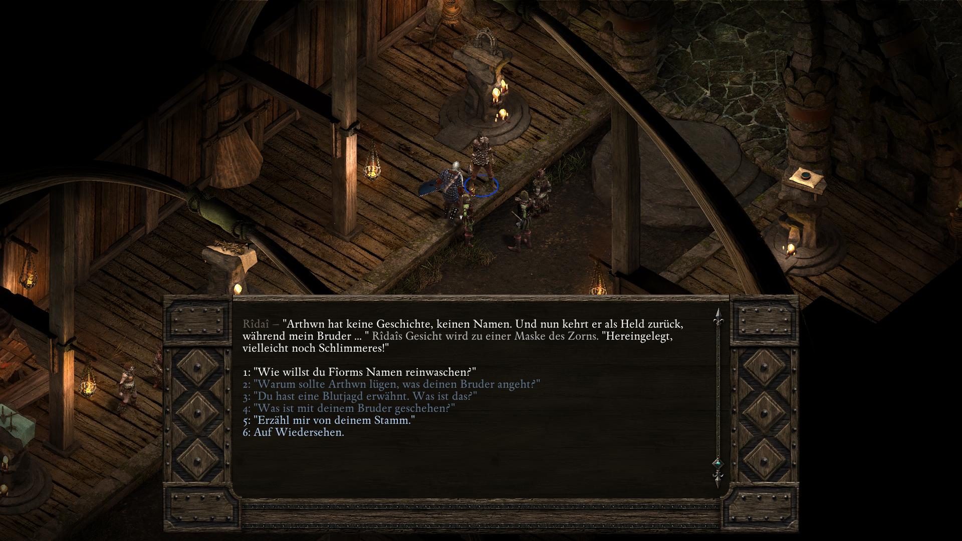 Arthwn behauptet, dass Fîorm aus Schande, einen riesigen Stelgaer bei ihrer Blutjagd nicht töten zu können, selbst ins Exil gegangen sei. Rîdaî glaubt, dass Arthwn, ein Angehöriger eines niederen Stammes, zu seinem eigenen Vorteil lügt.