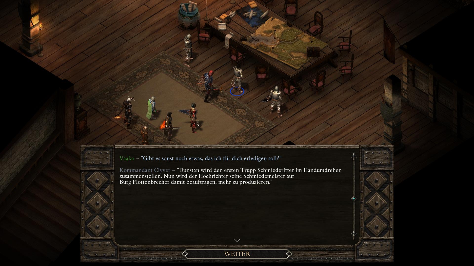 Die Schmiederitter von Kommandant Clyver scheinen ein Erfolg zu sein. Tatsächlich möchte der Hochrichter sich vergrößern, indem seine Schmiedemeister noch mehr Schmiederitter auf Burg Flottenbrecher bauen.