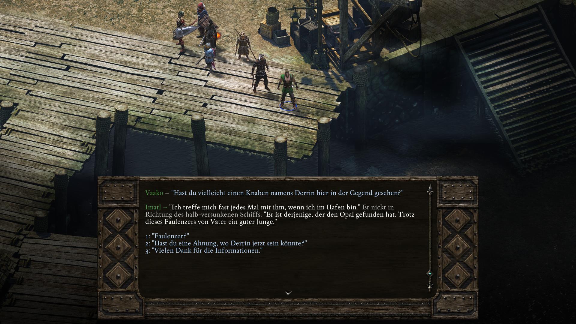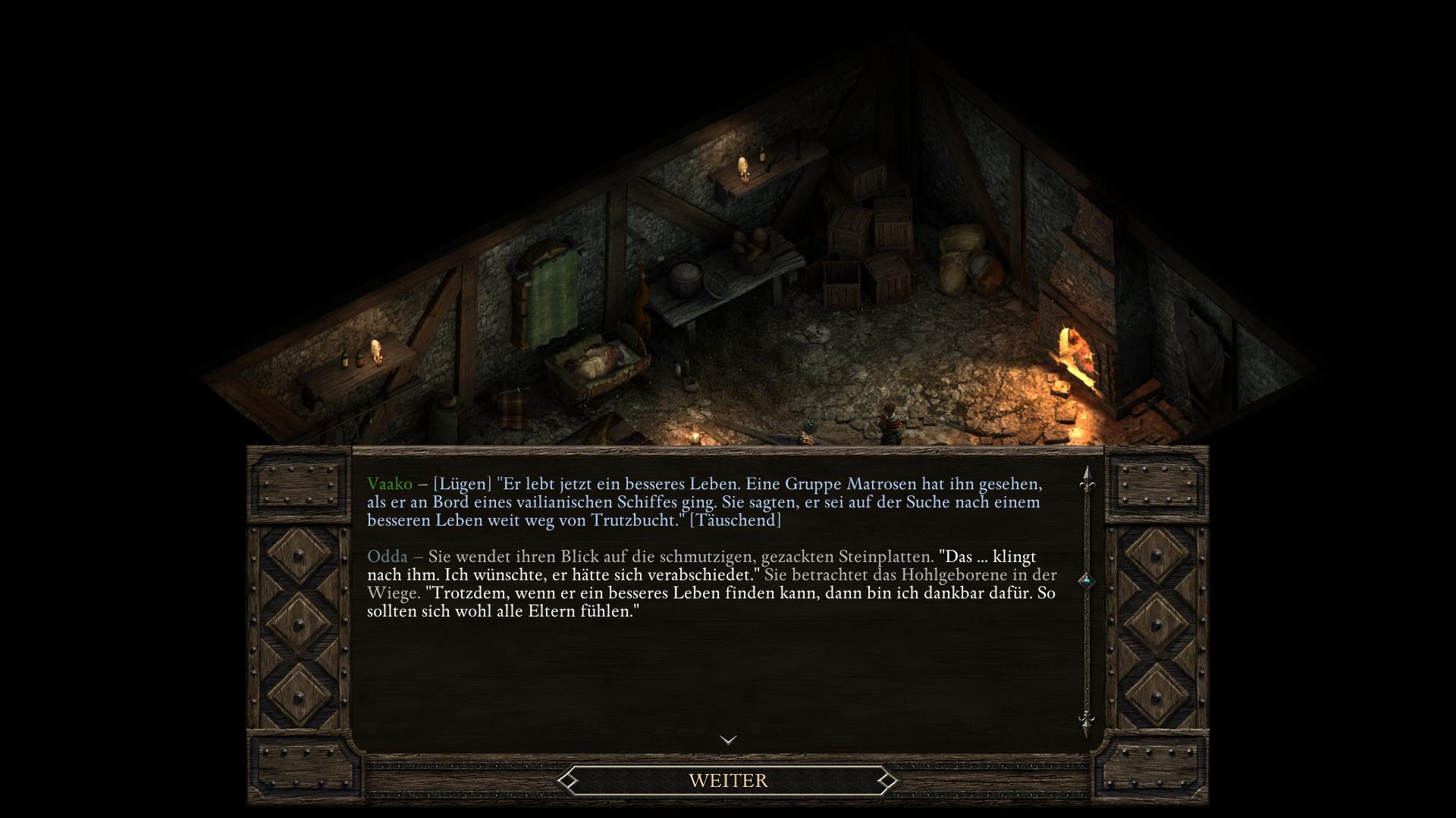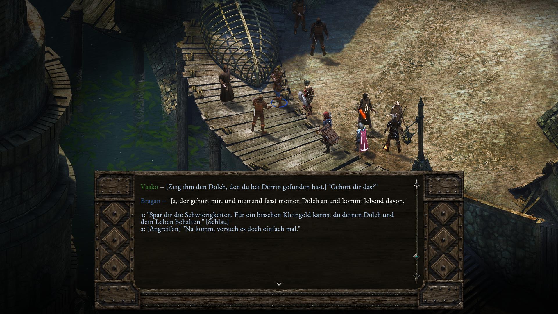 - Den Besitzer des Dolches, Bregan [7], aufspüren, ihm dem Dolch zurückgeben, dafür einen Topas einstreichen und Odda erzählen was ihr wollt.