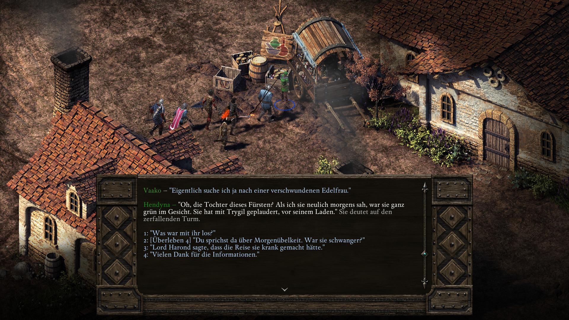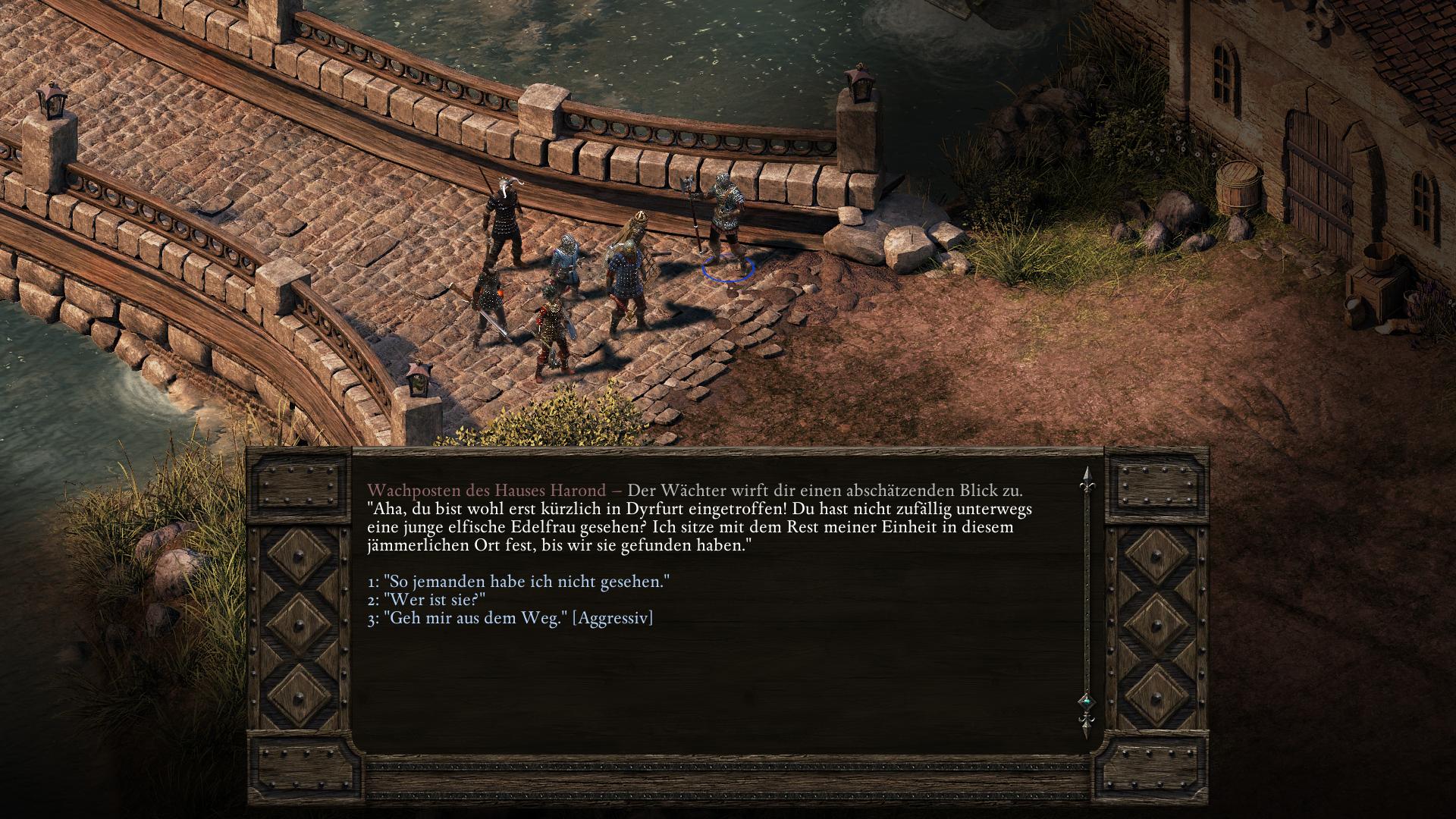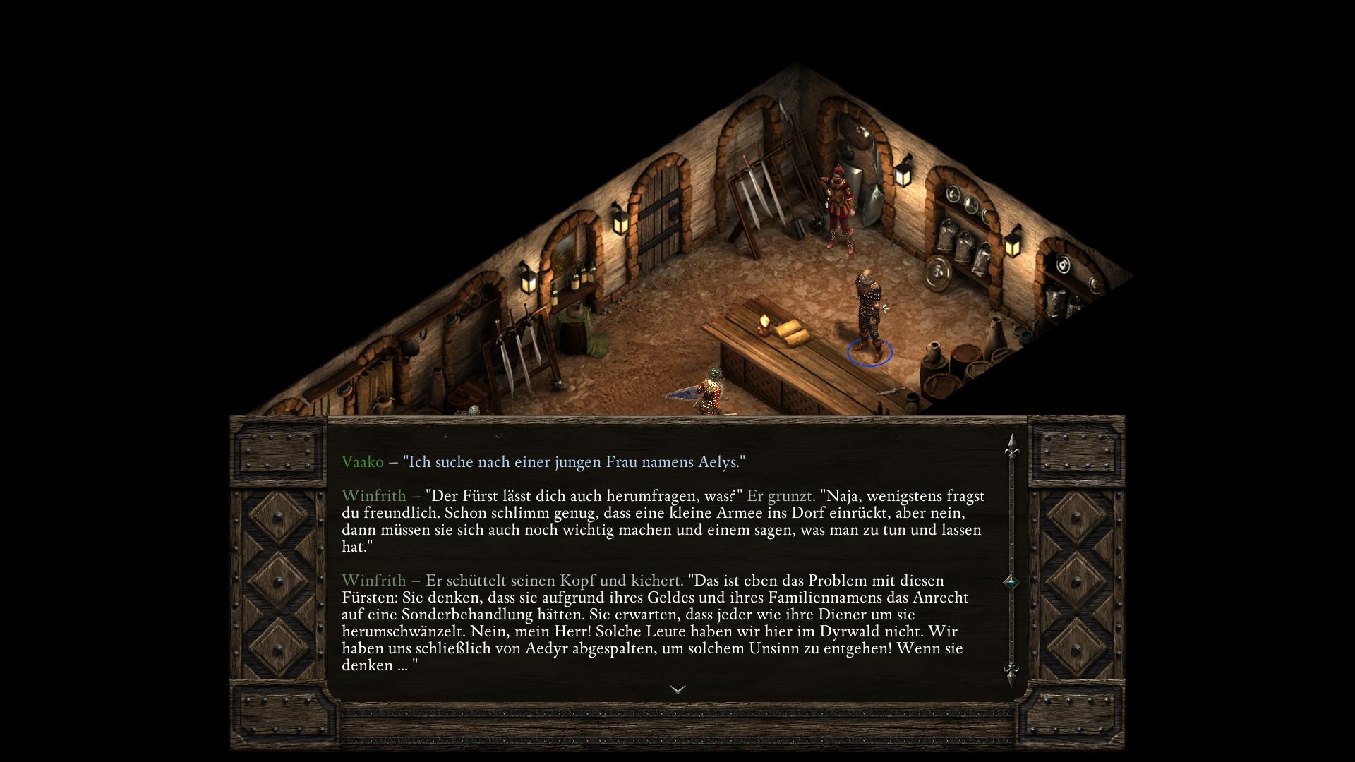 Fürst Harond hat Jungfürstin Aelys schon seit einigen Tagen nicht mehr gesehen, und anscheinend haben die Dörfler von Dyrfurt ihm auch nicht besonders geholfen. Aber vielleicht bringe ich etwas in Erfahrung, wenn ich mich ein wenig umhöre.