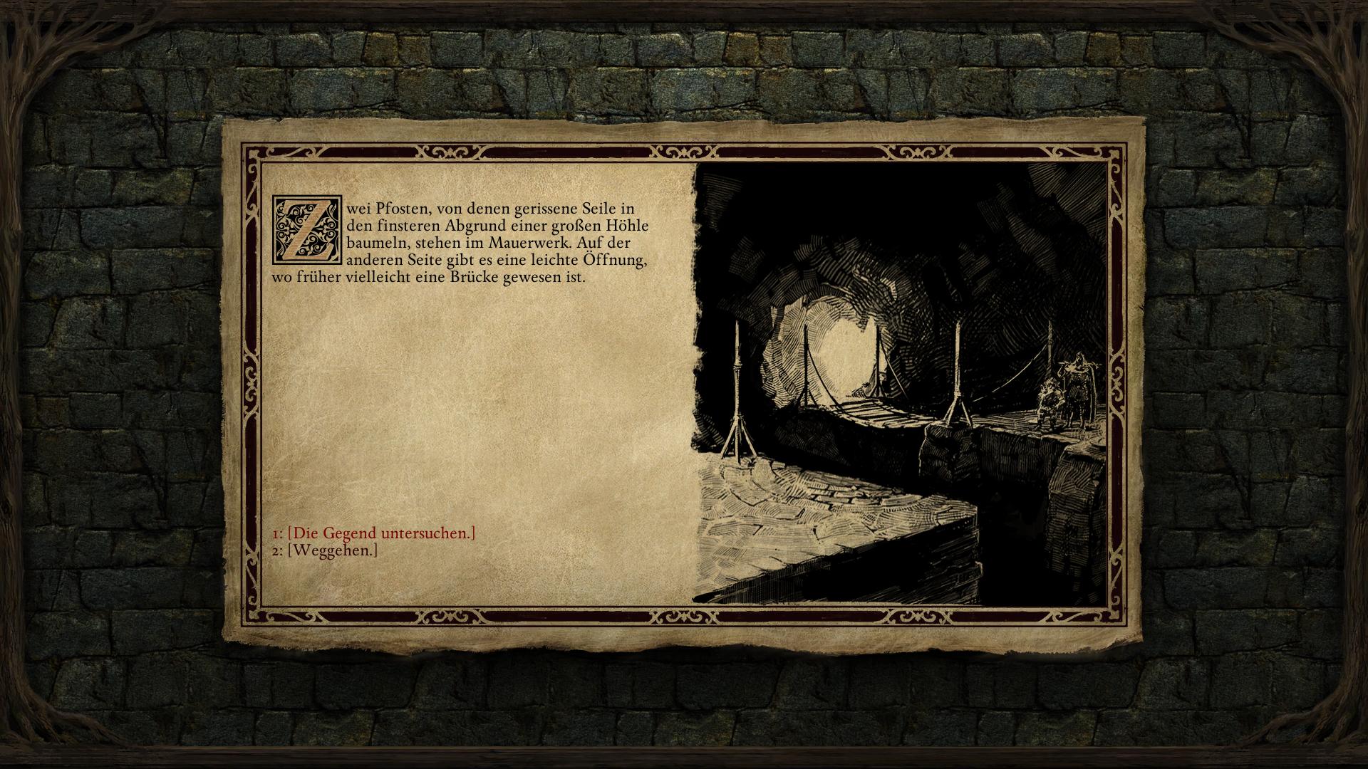Sucht als erstes "Winfriths Waffen und Rüstungen" [10] auf. Befragt ihr den Besitzer, nach der jungen Frau bekommt ihr direkt seine Ablehnung gegenüber dem Fürsten zu spüren. Da ihr selbst jedoch höflich gefragt habt, verrät er euch, dass sich Aelys länger mit Hendyna [8] unterhalten hat. Hendyna erzählt euch wiederum, dass Aelys Übel war. Mit Überleben 4 könnt ihr auch selbst feststellen, dass das Morgenübelkeit und Aelys entsprechend Schwanger ist. Außerdem verweist sie euch auf Trygil [4] in der Turmruine. Angeblich hat er sie zuletzt gesehen. Trygil will nicht so recht mit der Sprache rausrücken. Ihr müsst mit Hendynas Informationen nachbohren und ihn damit konfrontieren, dass Aelys Schwanger war. Trygil behauptet daraufhin mit Aelys am Fluss im Osten gewesen und dabei von einem Oger überfallen worden zu sein, der sich Aelys geschnappt hat. Woraufhin der feige Trygil sich verdrückt hat und sich euch zwei neue Wege bieten: