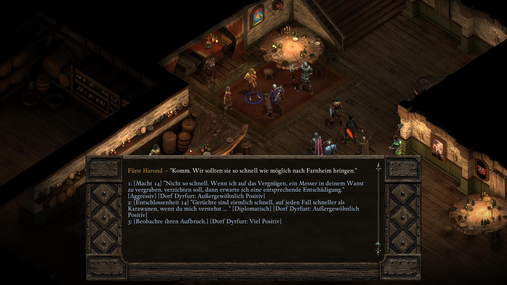 Fürst Harond wartet in der Schänke. Er weiß gewiss mehr über ihr Verschwinden.