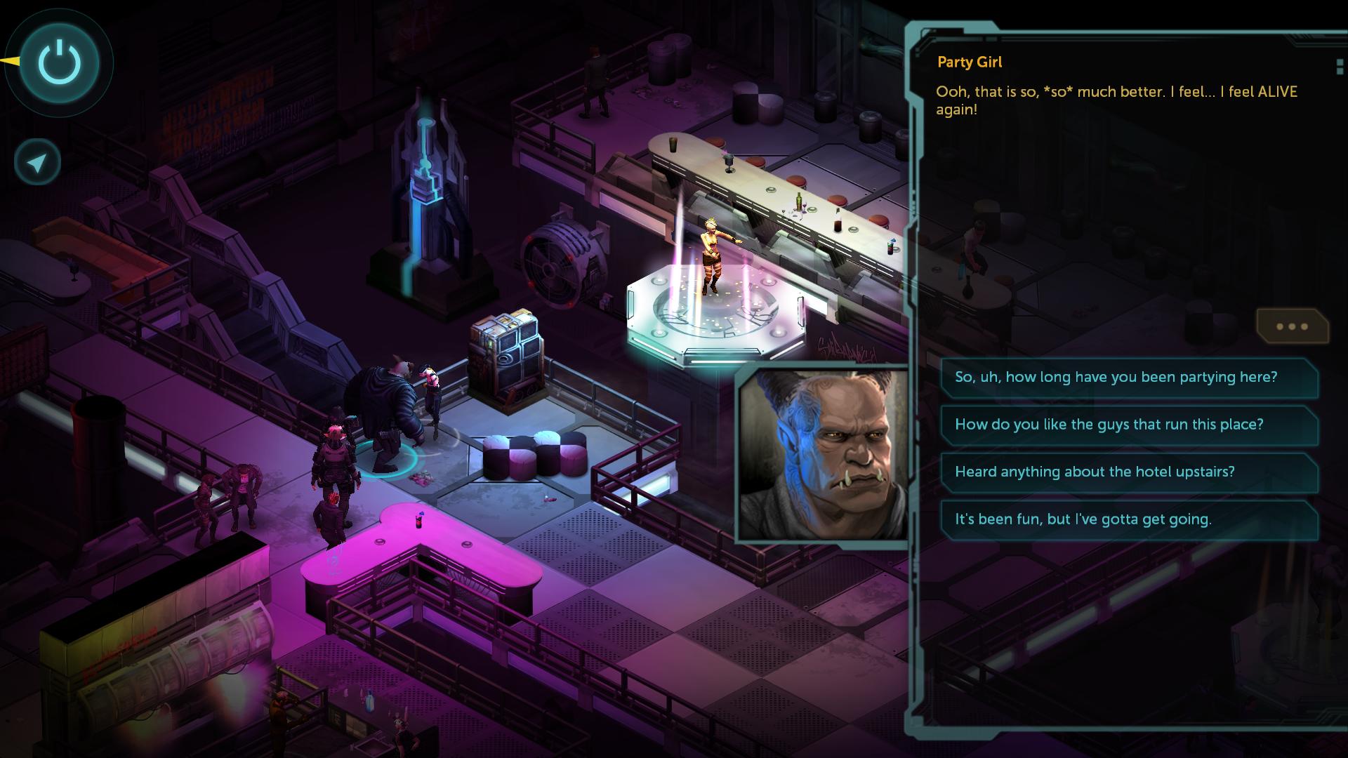 Kroner kann dir selbst zwar nicht in die oberen Hoteletagen verhelfen, verweist dich aber auf Frank <4> im Nordosten des Clubs. Das Party Girl <3> gibt dir, nachdem du ihr einen 150 Nuyen Drink spendiert hast, den gleichen Tipp. Das ist also eine Sackgasse, die gar nicht erst erkundet werden braucht. So fern du nicht gerade Rigger bist, ist Frank dein einziger Zugang zu den anderen Etagen.