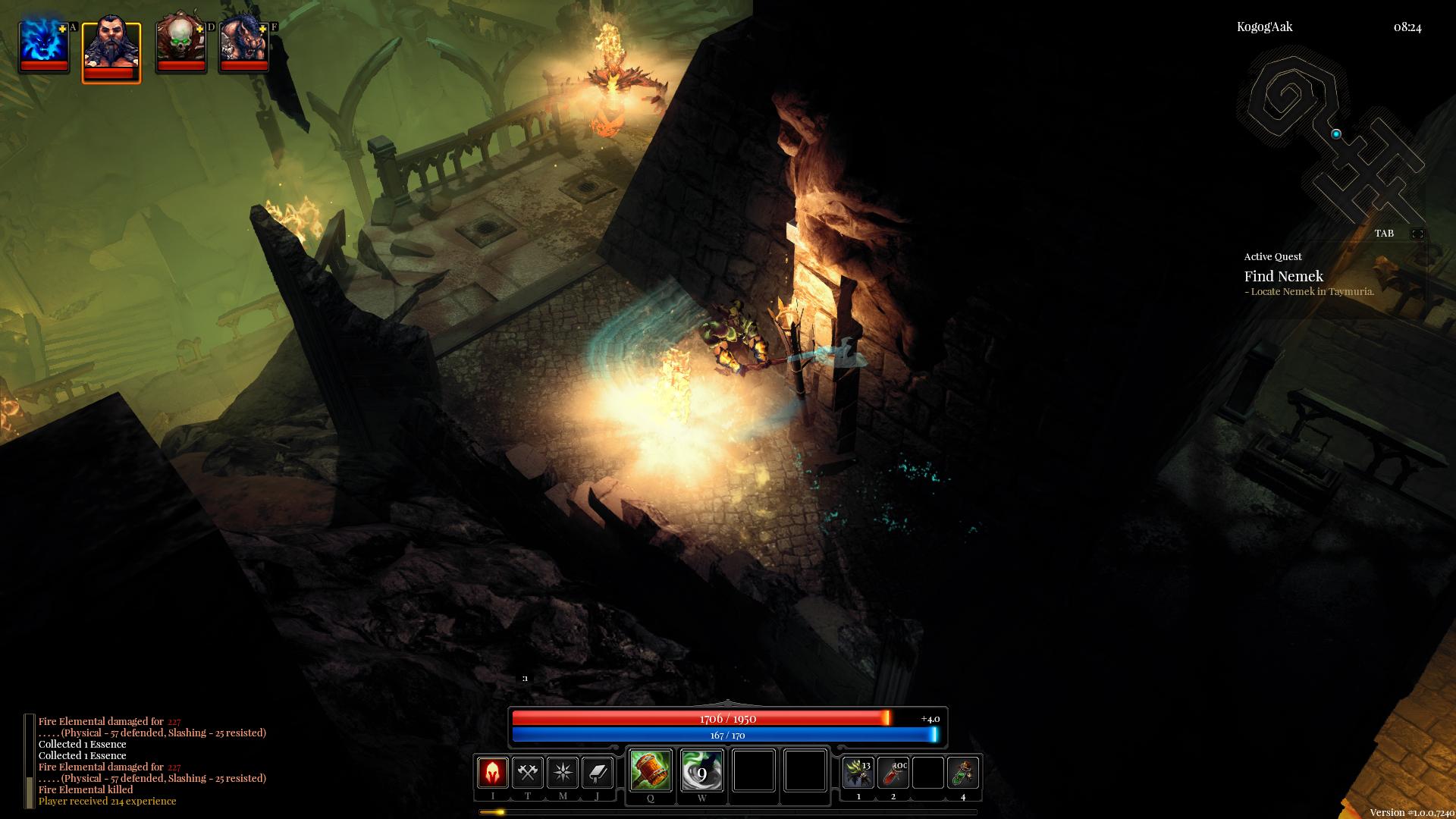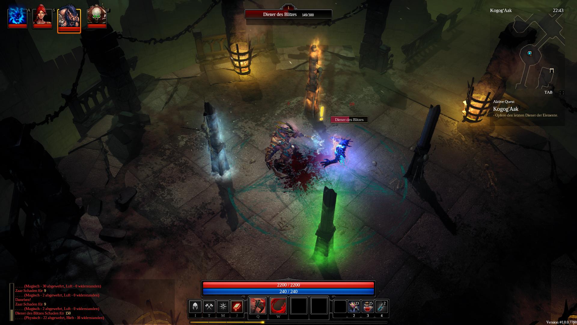 Der dritte Schritt von Kogo'Aak benötigt ihr genau so viele Bruchstücke des Sonnensteins. Wahrscheinlich wird es noch einen Moment dauern, bis ihr die alle zusammen habt. Ihr werdet also wahrscheinlich später hierher zurückkehren müssen. Sobald ihr durch die Tür seid, gilt es zunächst alle normalen Elementare in den vier Kammern auszuschalten. Anschließend müsst ihr die vier Siegel auf die Podeste [F, G, H, I] legen. Dadurch wird die Plattform in der Kammer aktiv. Klickt ihr diese an, entsteht ein neuer Elementar. Den müsst ihr nun in die Kammer mit dem Pentagramm und den vier Säulen locken und dort töten. Mit jedem toten Elementar eines der vier Elemente, sollte eine der Säulen in dessen Farbe beginnen zu leuchten und ein akustisches Signal ertönen. Gehen alle drei an, öffnet sich die nächste Tür. Dahinter liegt auf einem Podest der "Hammer der Stämme". Für den Sonnenstein am Ausgang braucht man vier Bruchstücke.