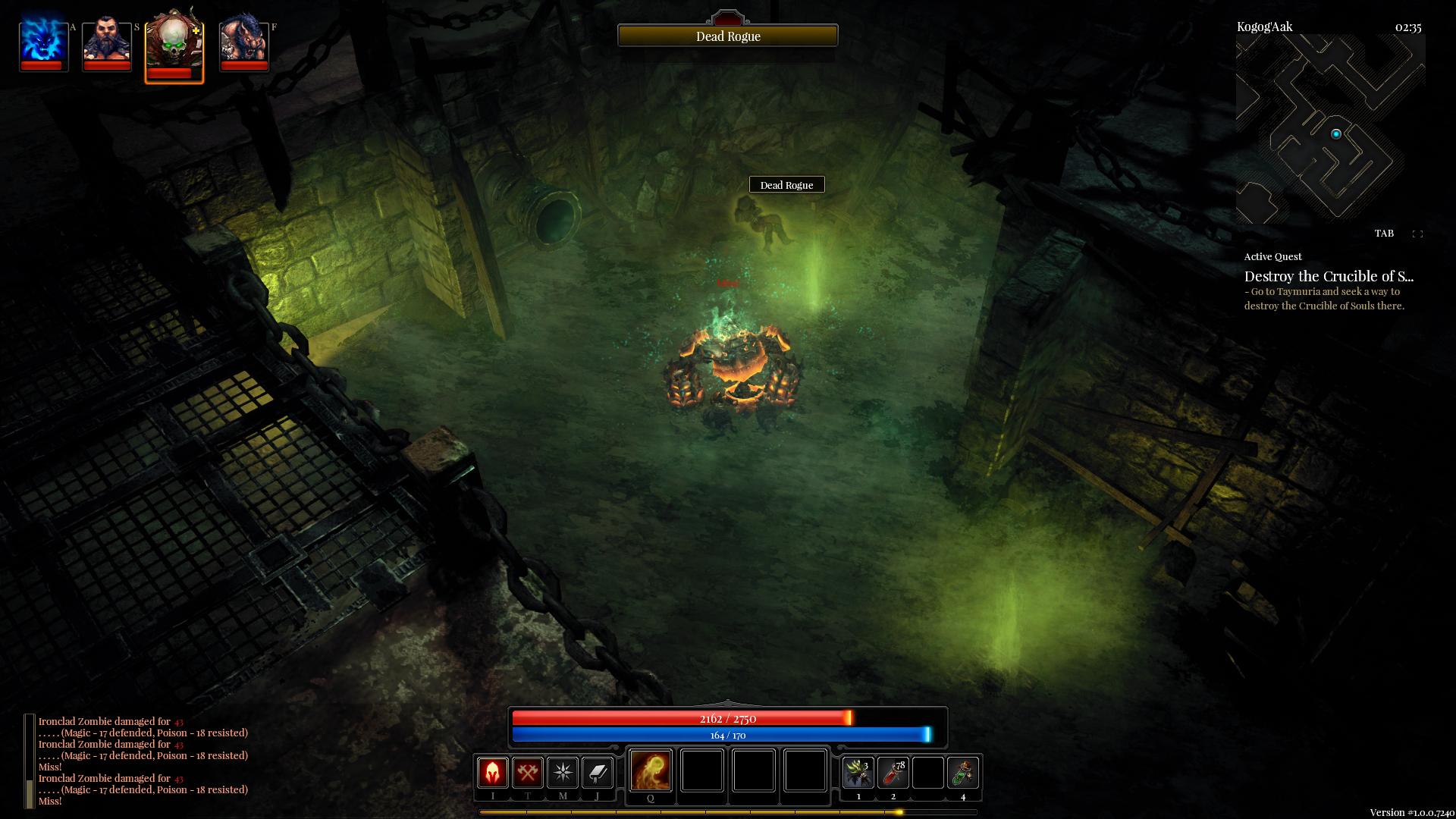 Jetzt gilt es erst mal die anderen verbleibenden drei Elementarsiegel zu beschaffen. Für das Luftsiegel (Air Sigil) [D] müsst ihr zunächst den oberen Weg in der Schattenwelt beschreiten und dann oberhalb des Käfigs den Schalter betätigen. Der senkt den Käfig darunter und ihr könne das Luftsiegel über den unteren Weg an euch nehmen. Das Wassersiegel (Water Sigil) [C] ist eines der schwersten, da ihr in der frostigen Umgebung dauerhaft Schaden erleidet. Versucht zunächst so viele Eiselementare raus zu locken und außerhalb zu töten. Ein ähnliches Problem begegnet euch beim Erdensiegel (Earth Sigil) [E] im Osten. Der Zugang hierzu ist mal wieder nur in der Schattenwelt möglich. Sobald ihr im grünlich giftigen Bereich angelangt seid, solltet ihr versuchen alle Giftelementare zu euch hoch zu locken. Denn auf der untersten Ebene erleidet ihr ebenfalls starken Schaden. Abgesehen von dem Siegel liegt dort unten noch der Leichnam eine toten Schurken, der mal wieder goldene Beute bei sich hat.