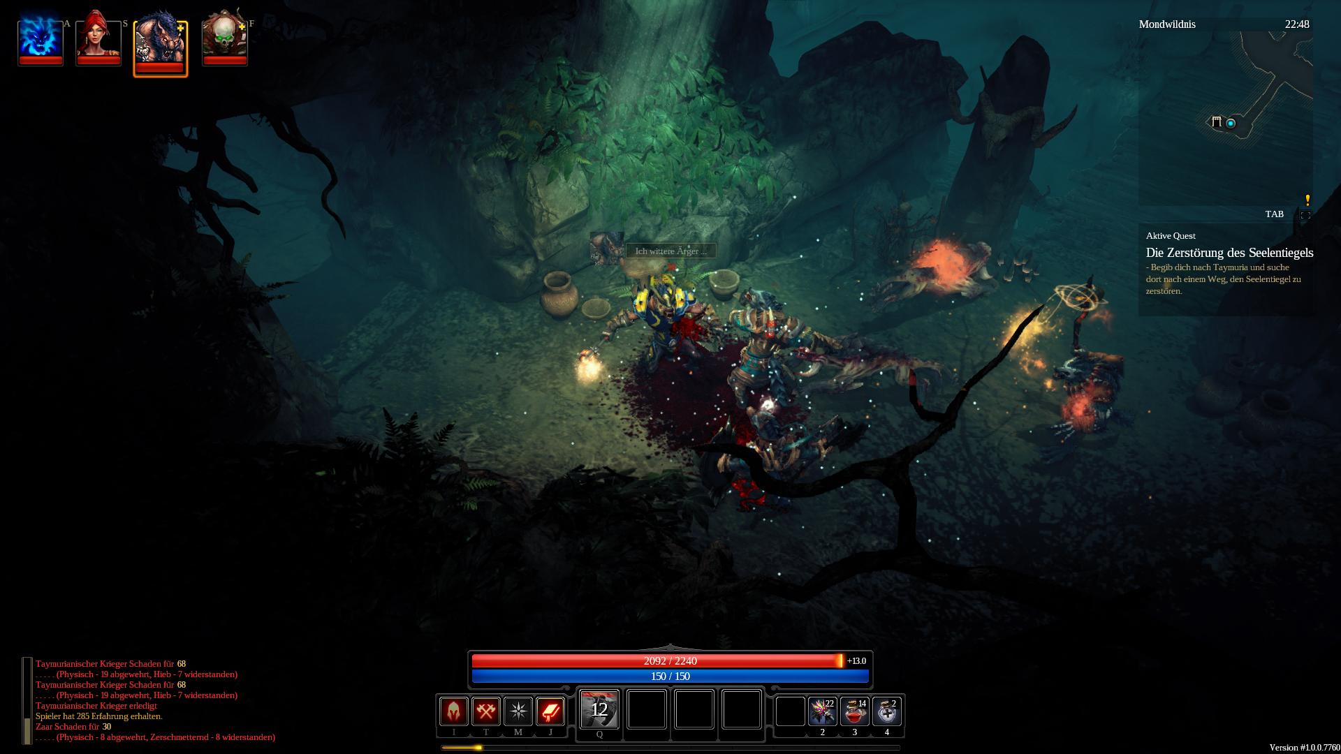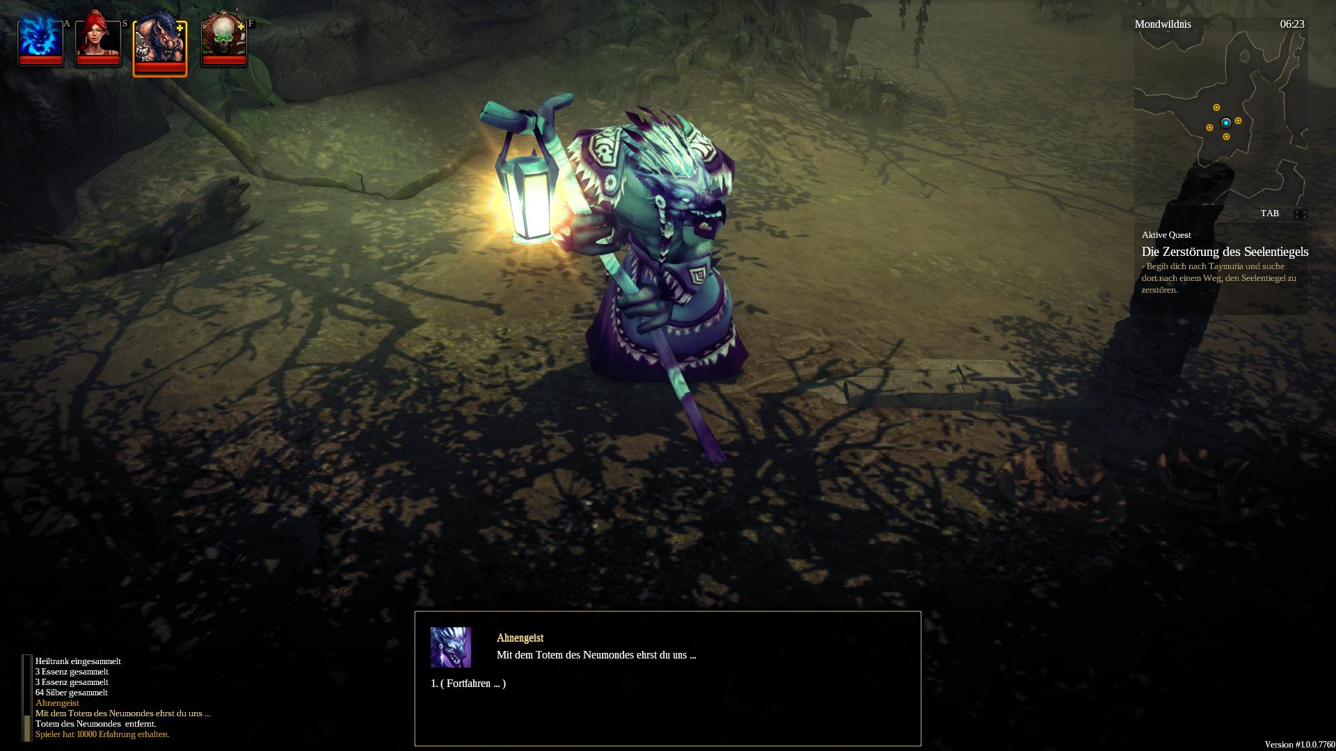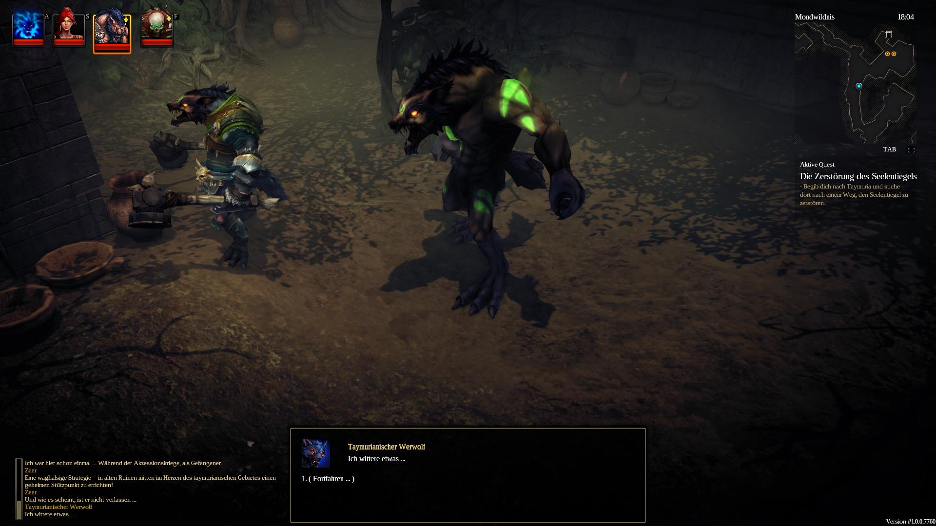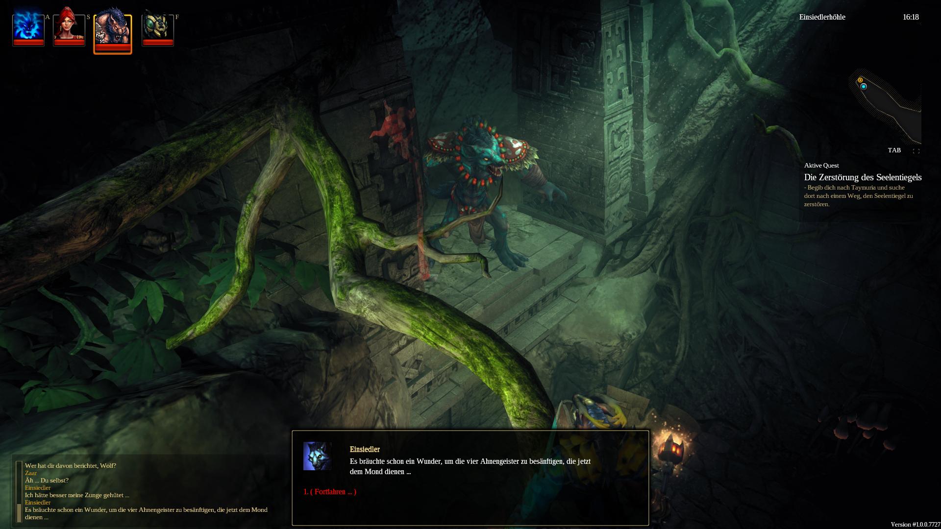 Der Einsiedler [1] weiß direkt Rat für euer Verwandlungsproblem. Er zeigt euch einen Geheimnisvollen Kristall [2], am anderen Höhlenende, der das Leiden heilt. Von ihm bekommt ihr zudem zwei weitere Quests, die quasi ganz Taymuria umspannen. Der Einsiedler erzählt von den Ahnengeister und das es ein Wunder bedarf sie zu besänftigen. Was wiederum notwendig ist, um den Fluch von den Wölfen in Menschengestalt zu lüften. Jeder der vier Geister entspricht einer Mondphase und muss mit dem entsprechenden Totem besänftigt werden. Zumindest eins davon solltet ihr bereits gefunden und damit die "Die Geister des Ahnenmondes" Quest gestartet haben. Zudem könnt ihr den Einsiedler fragen, was er da mit dem "Homm, Homm" macht und dann anbieten einen Ersatz zu suchen, da ihr selbst nicht dafür herhalten könnt (Der Endlose Gesang). Auch diese Aufgabe werdet ihr erst nach einem Besuch in der Konklave erledigen können.
