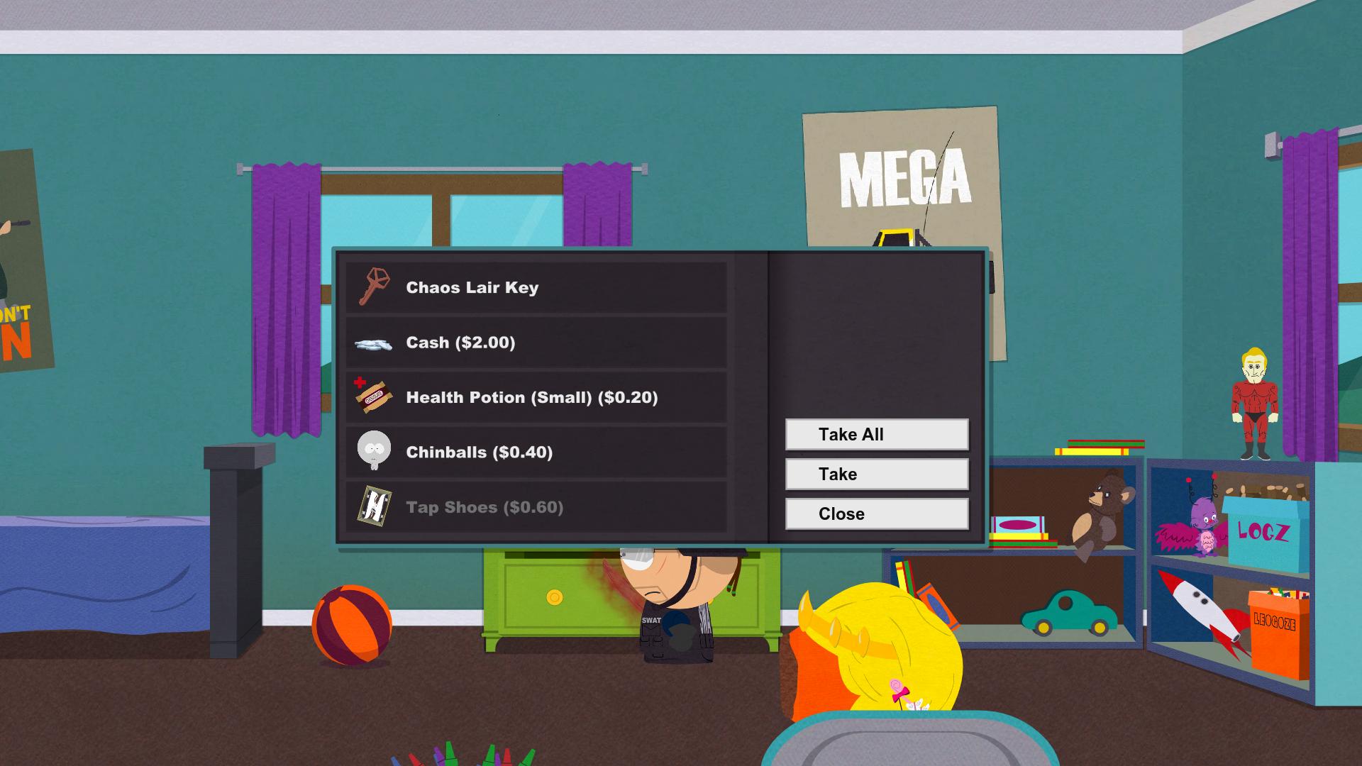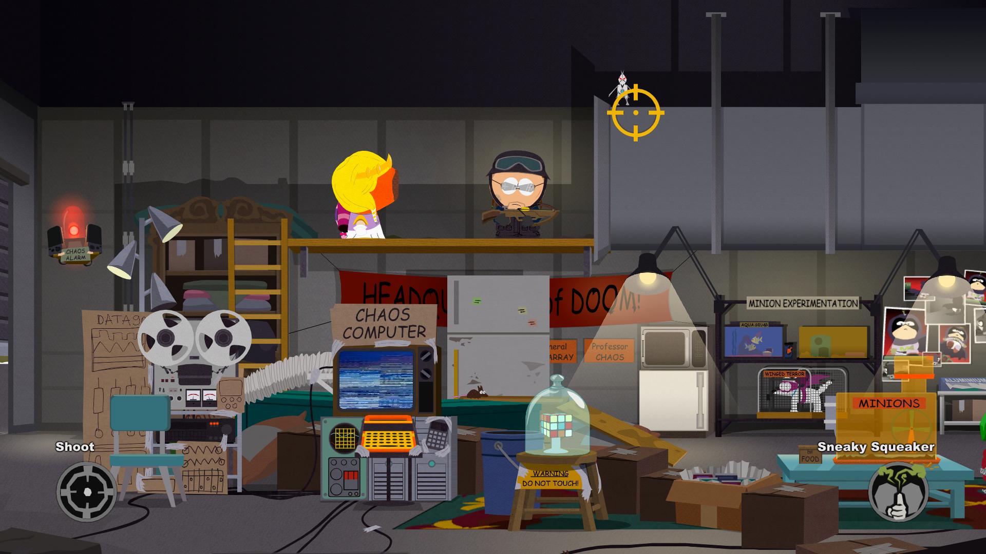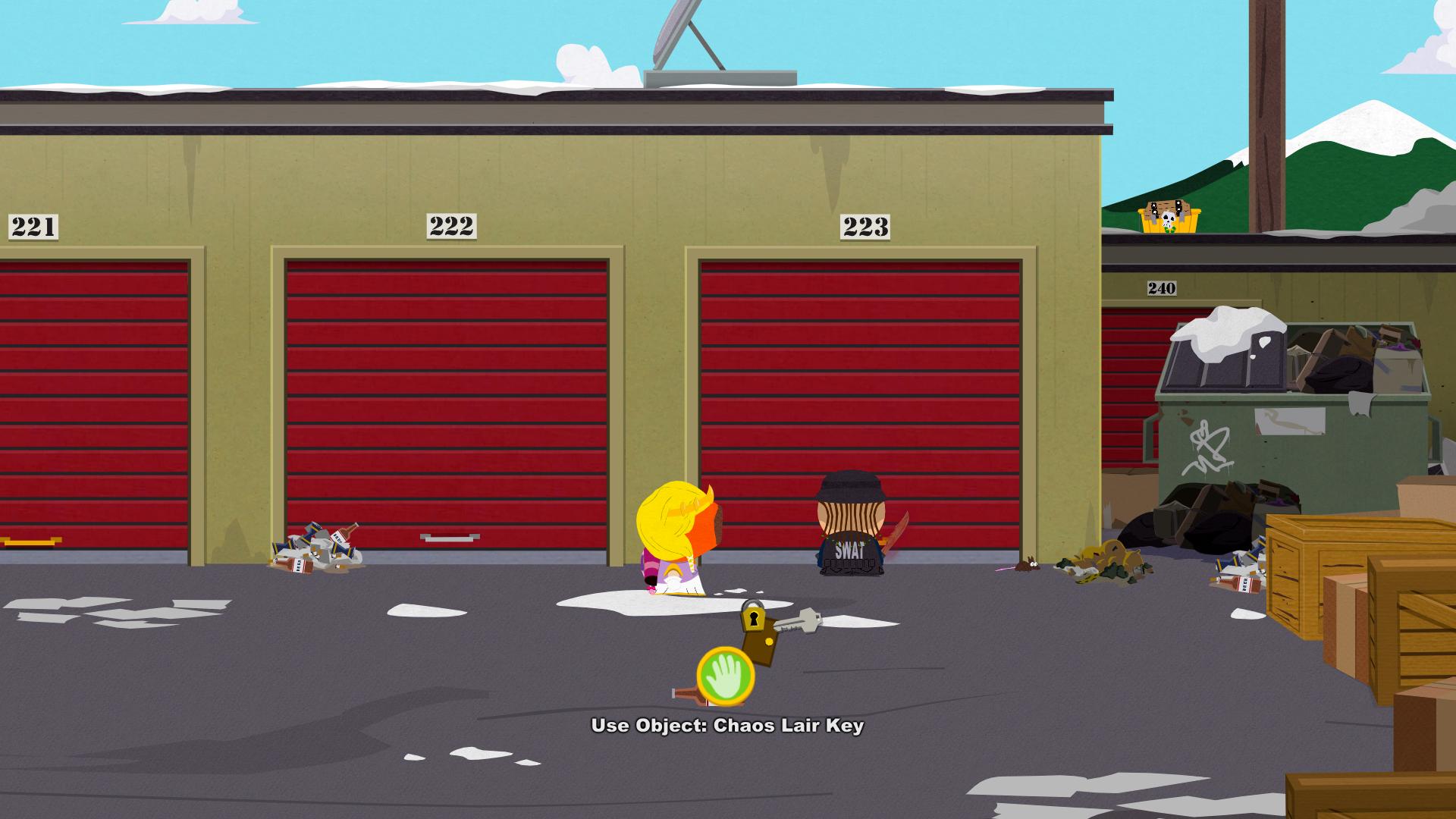 Sobald Butters am ersten Tag dein Freund geworden ist, hast du seinen Haustürschlüssel. Damit kannst du in sein Zimmer gehen (Obergeschoss, erste Tür) und seinen "Chaos Lair Key" aus der untersten Schublade der Kommode nehmen. Geh damit zum U-Store-It Gelände. Wenn du zum ersten Mal da bist, musst du auf den Müllcontainer klettern und die von dort aus die Leiter zur Werbetafel abschießen. Sobald du über die zweite Leiter auf dem Gelände bist, kannst du im Büro den Schalter umlegen und damit das Eingangstor öffnen. Das Chaos Lair ist der Lagerraum ganz rechts auf dem Gelände. Geh im Lagerraum einmal komplett rum zu der Leiter im Hintergrund und schieß von der Holzplanke aus mit deiner Fernkampfwaffe auf den grauen Roo-Stor Chinpokomon oberhalb des Lüftungsrohres.