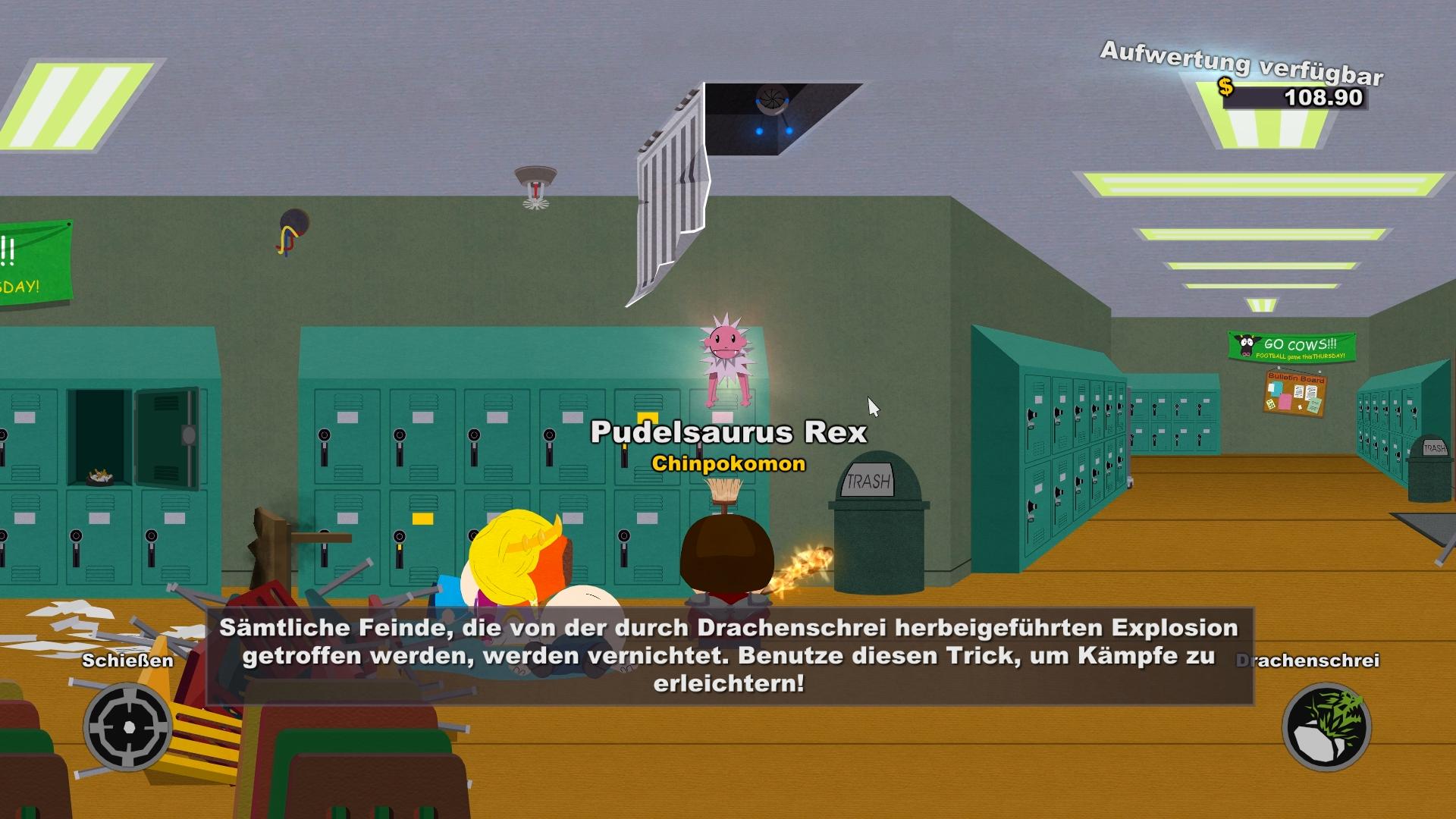Wenn du am ersten Tag Craig vom Nachsitzen befreien sollst, findest du den Poodlesaurus Rex Chinpokomon im zweiten Raum. Geh vom Haupteingang durch die rechte Tür und folge dem Gang bis fasst zur verschlossenen Tür des Nachsitzraums. Vor der Abbiegung ist das Gitter eines Lüftungsschachts in der Decke. Schieß darauf und der Chinpokomon fällt herunter.