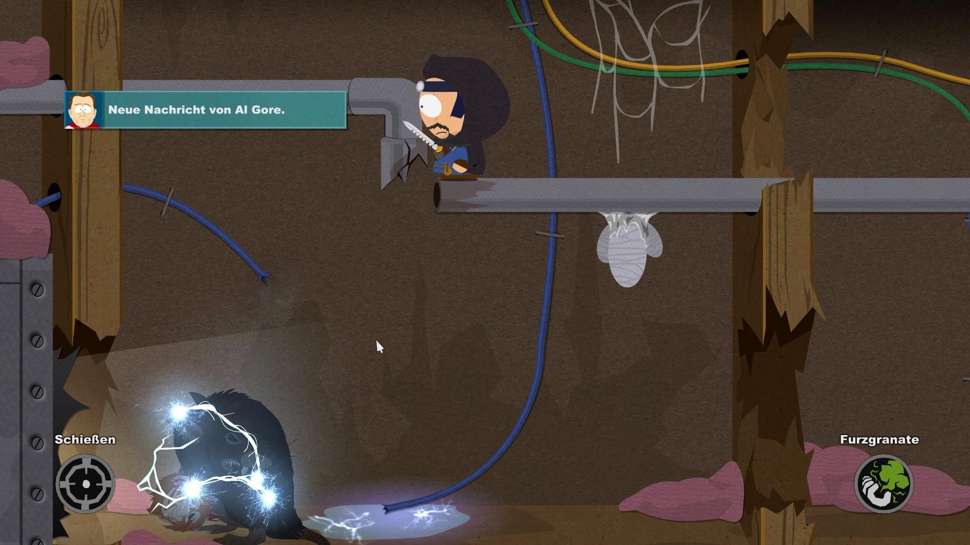 Hinter der Tür, durch die gerade Stan / Butters verschwunden ist, trittst du dem jeweiligen Handlanger der Elfen / Menschen in einem Boss-Kampf gegenüber.