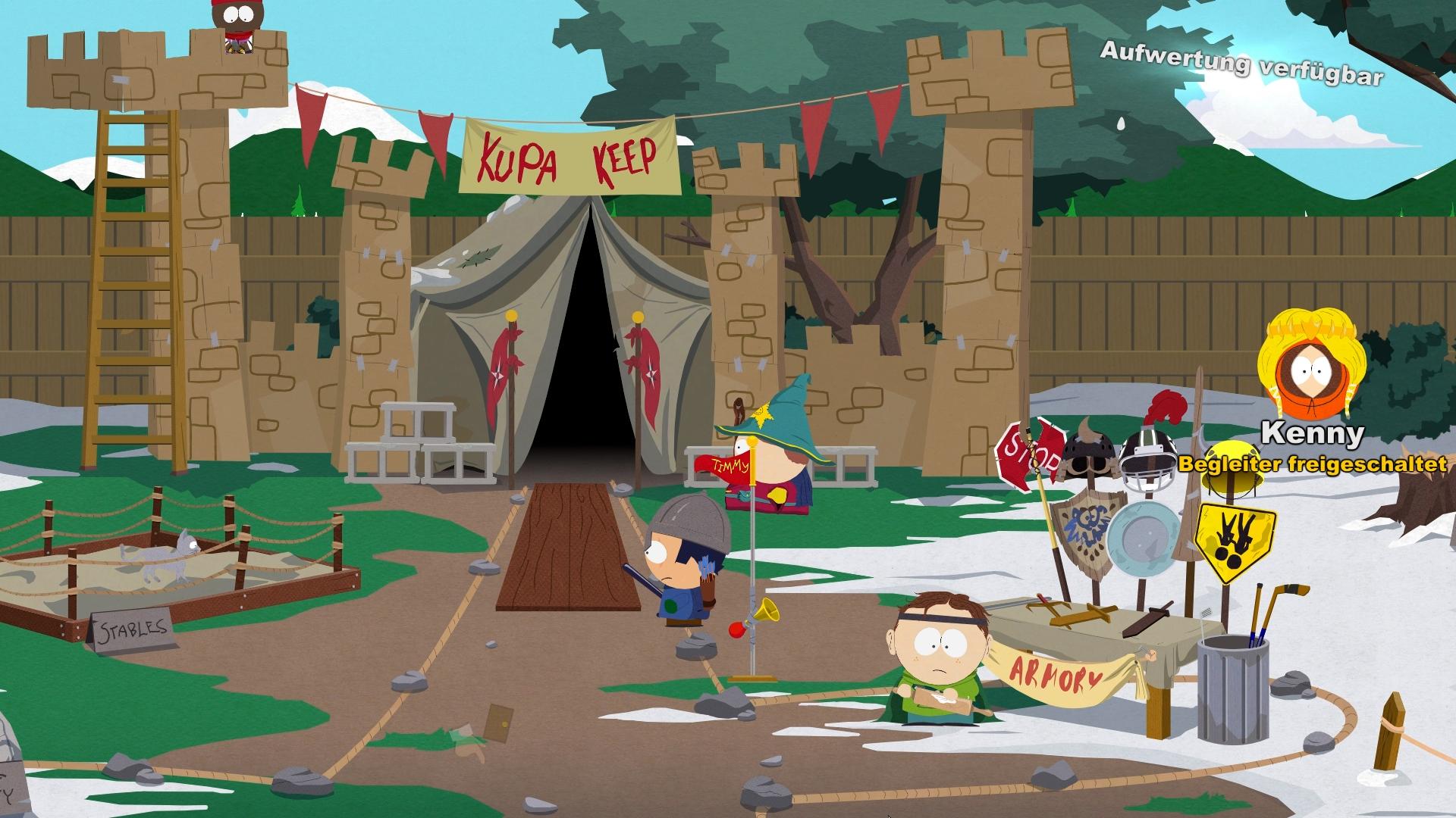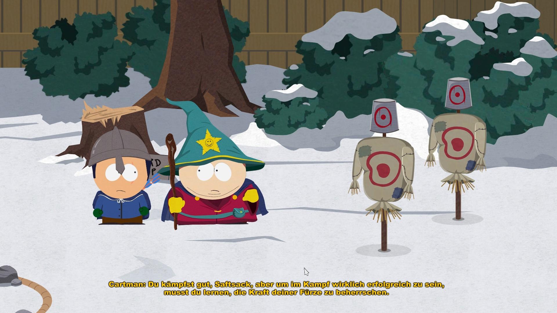 Zurück in Kastell Kupa bringt dir Cartman den zweiten Furz, die "Furzgranate" (Cup-A-Spell), bei. Den Fernkampf-Furz musst du erneut erst an den Trainingspuppen und dann an Scott testen. Ist dir das gelungen, beginnt der Angriff auf den Barden! Falls du an diesem Tag noch eine der Nebenquests erledigen möchtest, solltest du da machen, bevor du den Furz erlernst.