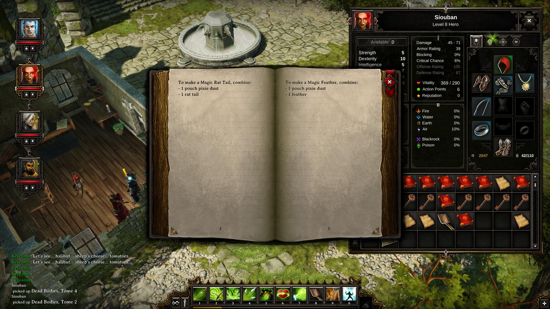 Ein Vergleich mit derart großen Erfolgen ist durchaus berechtigt. Denn sieht man davon ab, dass Divinity nicht in Faerun (Anm.: die Welt von Baldur's Gate, Neverwinter Nights etc.) oder Britannia (Ultima-Reihe) spielt, steht Original Sin selbst dem Richard Garriott Vorbild in nichts nach. Es gibt sogar ein Herstellungssystem, mit dem Essen zubereitet, Tränke gebraut oder Waffen und Rüstungen angefertigt werden können. Einfach das Mehl mit einem Becher Wasser im Inventar kombinieren, die Tomate mit dem Hammer bearbeiten und auf den Teig geben, das Ergebnis in den Ofen schieben und fertig ist die Pizza! Pilze plus eine Phiole ergeben, je nachdem ob es ein Giftpilz war oder nicht, ein Gift oder einen Heiltrank. Metallstücke können an einem Amboss zu Stiefeln verarbeitet werden usw. Das alles ist natürlich kein Muss, sondern nur eine kostenlose Dreingabe. Es gibt tonnenweise Heiltränke und nützliche Ausrüstung. Natürlich immer davon abhängig wie weit man das Gesetz zum eigenen Vorteil ausdehnt. Denn Anwohner achten sehr wohl auf ihre Habseligkeiten, sprechen Verwarnungen aus und greifen letztlich an.