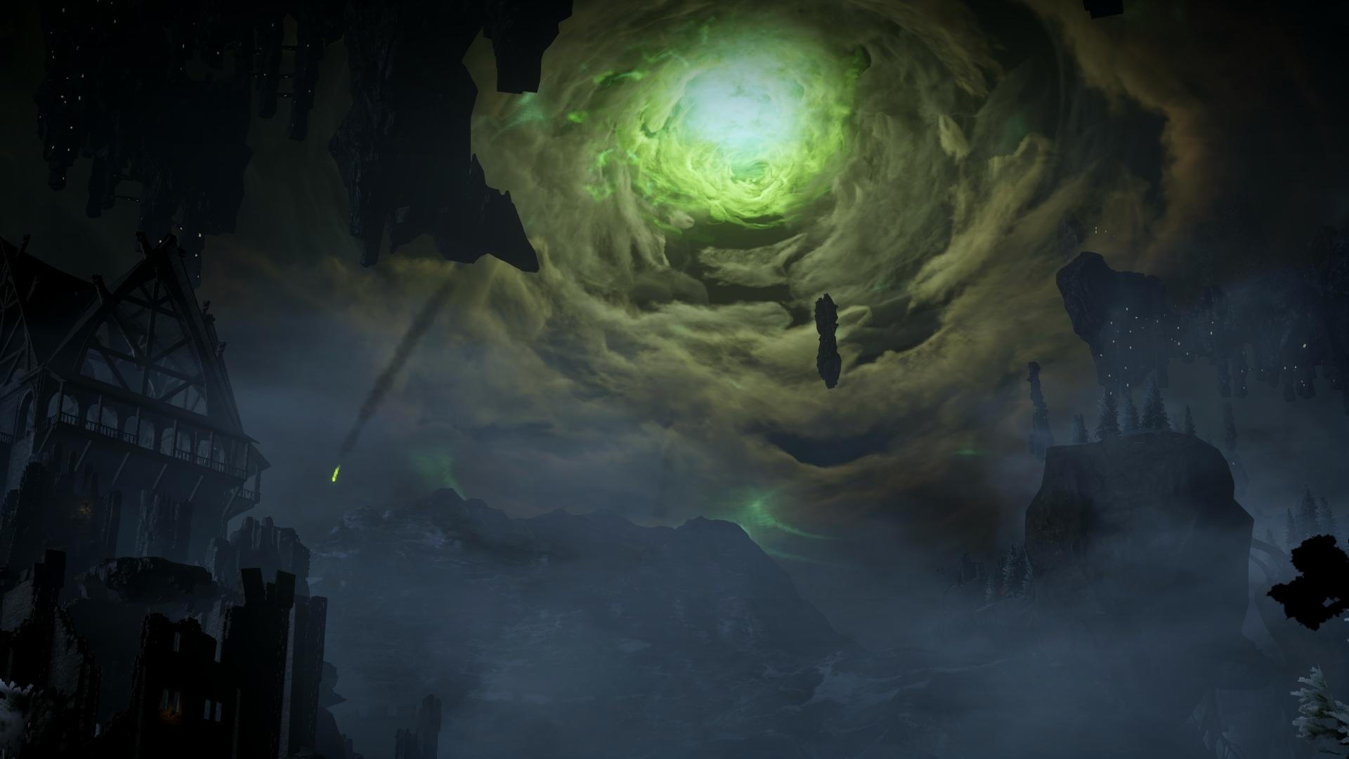 Hoch oben auf dem schneebedeckten Berg zerreißt ein grüner gezackter Strahl die Luft und spuckt dich aus. Noch bevor dir klar wird, was genau gerade geschehen ist, nehmen die Soldaten dich gefangen und sperren dich in eine Zelle. Kurze Zeit später betreten eine Templerin und eine schurkenhaft gekleidete Frau deine Zelle und wollen wissen, was es mit dem Mal auf sich hat, das deine Hand bedeckt. Angeblich stimmt der Rhythmus der grünlichen Impulse mit dem Takt überein, in dem der gigantische Riss Dämonen frei gibt. Ohne irgendeine Erinnerung an die letzten Stunden, schleifen sie dich wieder zum Riss, wo sich herausstellt, dass dein Mal den Riss schließen kann. Das Frostgipfel Gebirge ist gerettet. Aber das war nicht der einzige ... auf ganz Thedas öffnen sich weitere Risse und scheinbar bist nur du in der Lage sie zu schließen.