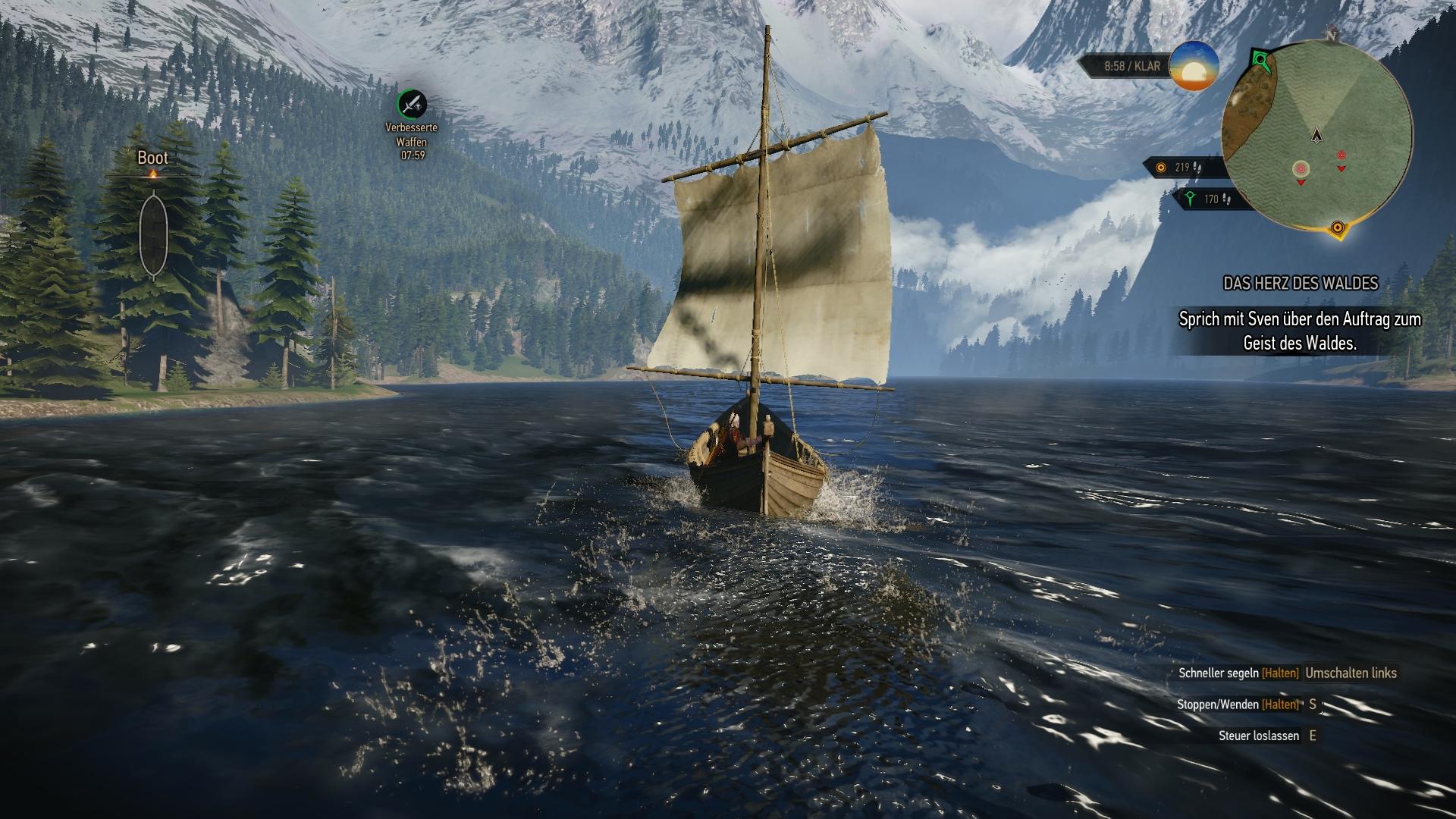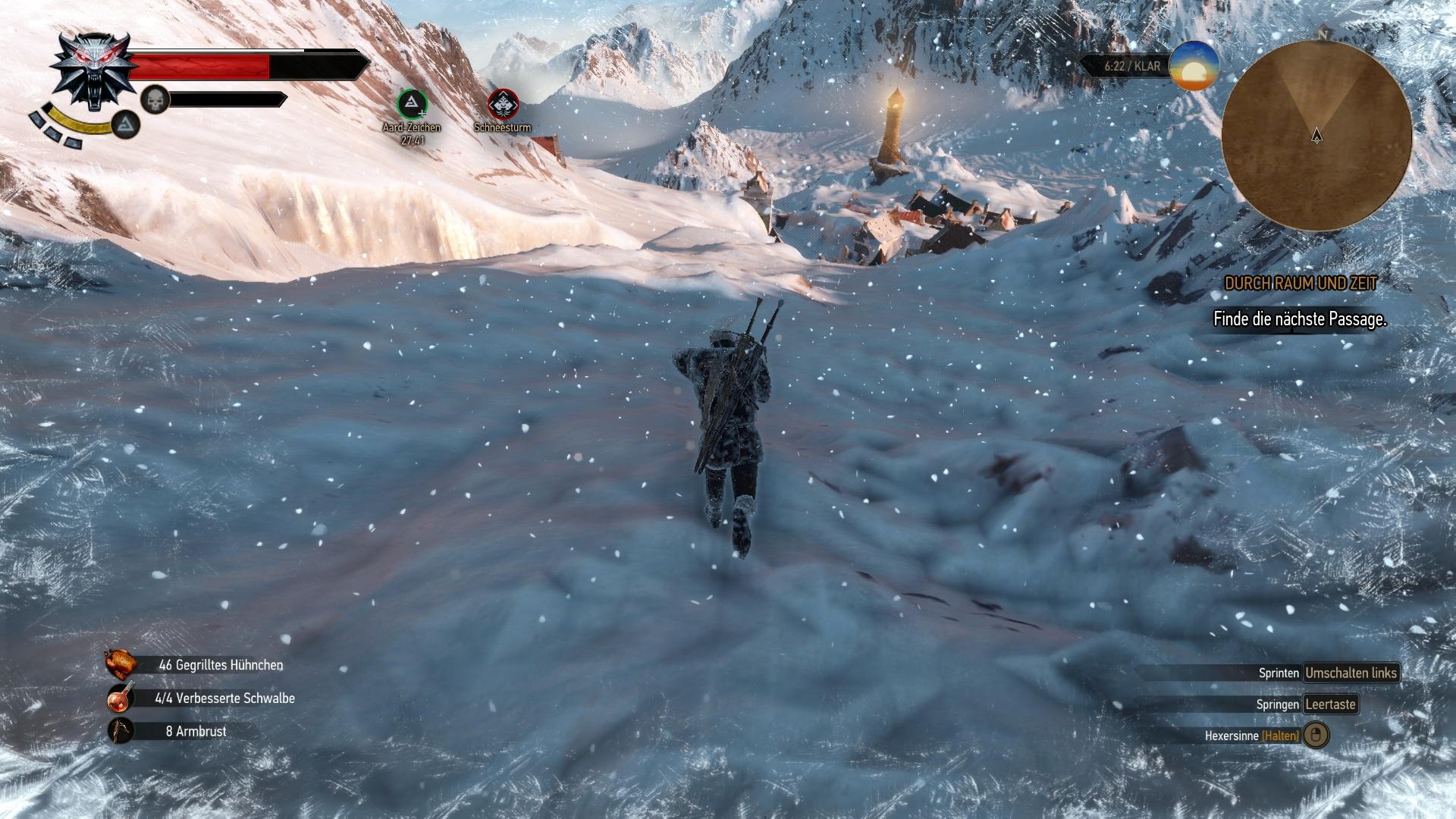 Sobald ein Gebiet erst erschlossen ist, kann Geralt jederzeit problemlos dort hin wechseln. Abgesehen vom Gehen, Reiten, Schwimmen und Rudern stehen ihm dazu Weg-Markierungen zur Verfügung, die es in jedem noch so kleinen Dorf und vielen zusätzlichen Orten gibt. So kann er innerhalb von einer Minute problemlos kleine oder die größten Distanzen überhaupt zurücklegen. Dieser Moment ist der Einzige, in dem Witcher 3 merkbar nachladen muss. Während das Spiel automatisch im Hintergrund Objekte der angesteuerten Richtung nachlädt und Ladezeiten somit quasi nicht auffallen, taucht in dem Augenblick, oder für geskriptete Szenen ein Ladebildschirm auf. Bedauerlicherweise fällt dieser in den Konsolen-Fassungen etwas üppiger aus. Da können schon mal 30 - 40 Sekunden vergehen, bevor das Spiel weitergeht.