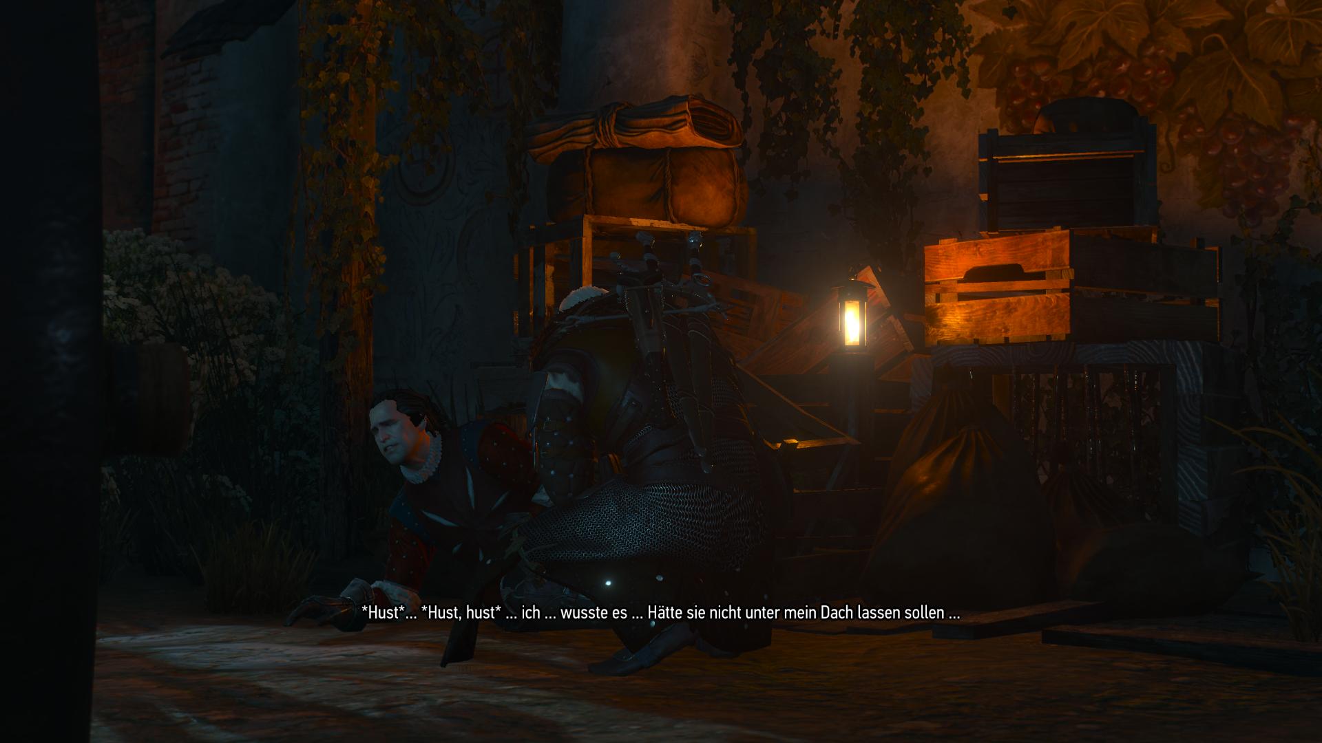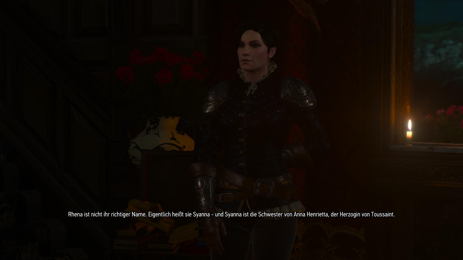 Vom Karren könnt ihr euch außerdem das "Ami" Silberschwert nehmen, falls euer bereits zu viel Schaden genommen hat und ihr es nicht reparieren könnt. Als nächstes müsst ihr euch an "Der eiserne Borg", Glotzauge und zahlreichen anderen Banditen aus Nazair vorbei zur Terrasse durchschlagen. Ihr braucht nicht alle töten. Sobald ihr die Treppe hoch und über die Veranda gelaufen seid, setzt automatisch eine Sequenz ein, in der Regis und Dettlaff erscheinen. Von dem Punkt an sterben die meisten Feinden, die vor euch stehen, von selbst. Ihr braucht quasi nur noch den umherfliegenden Bolzen ausweichen. Sind alle Banditen im Bergfried tot, stürmt das Trio automatisch in den Turm. Unabhängig von eurer Wortwahl stellt Geralt die Verbindungen her. Rhena und Syanna sind ein und die selbe Person und stecken zudem hinter dem gesamten Plan. Dettlaff kann sich gerade so beherrschen und gibt Syanna drei Tage, um sich ihm zu stellen.