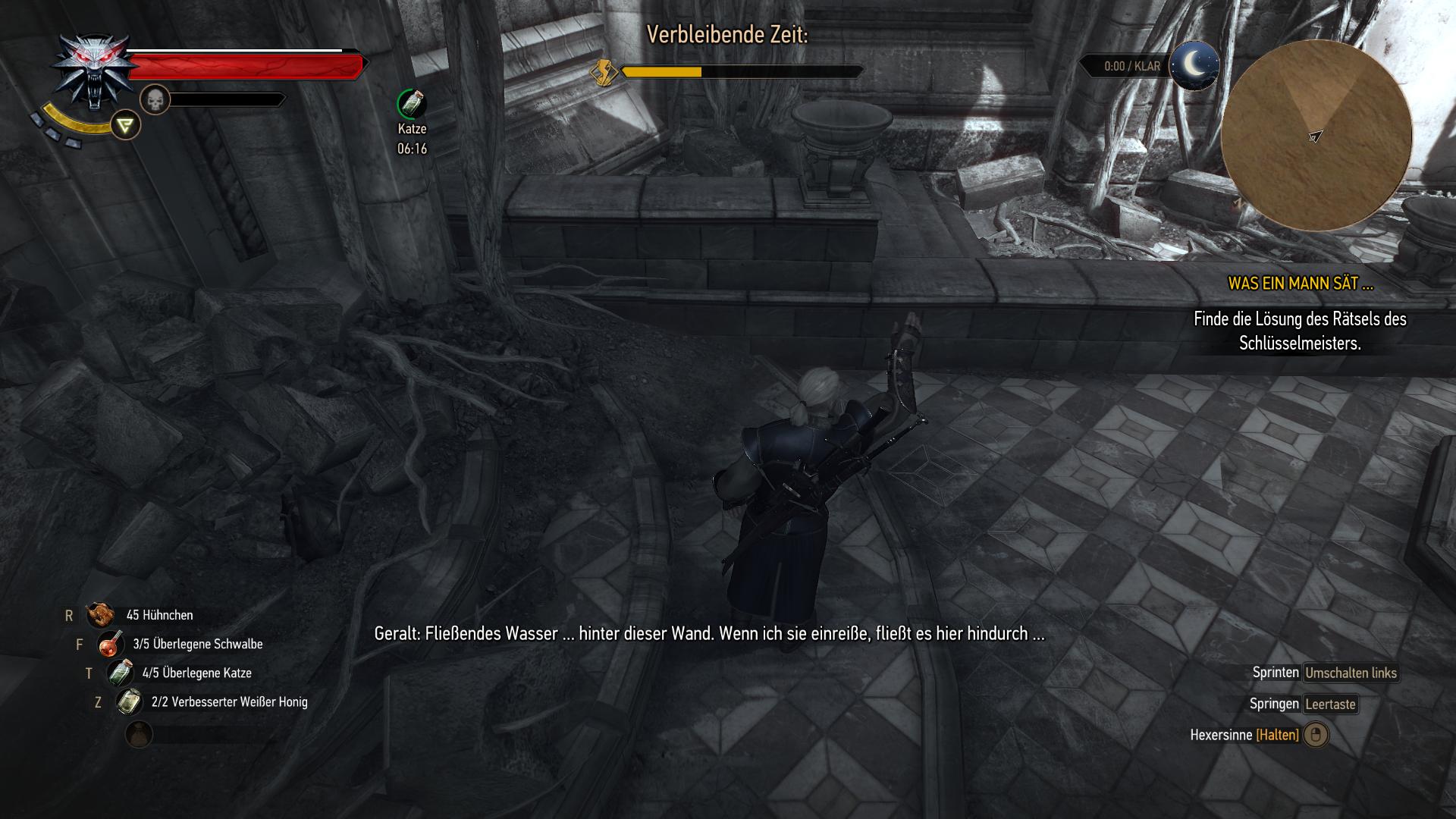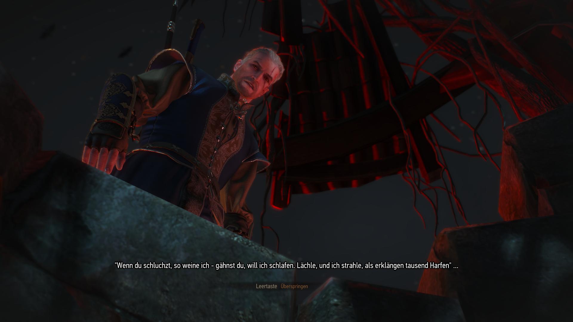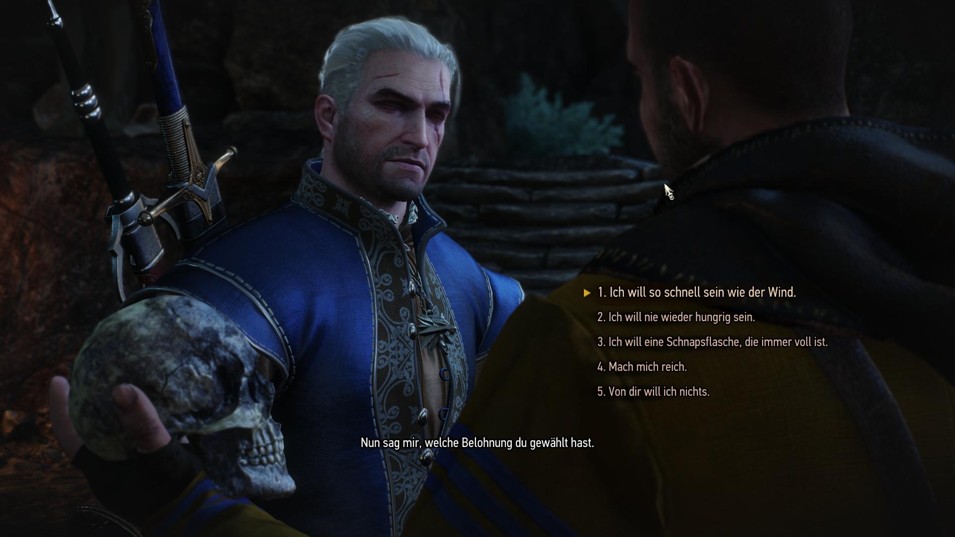 Der Spiegelmeister versetzt Geralt in seine Welt und stellt ihm ein Rätsel, welches ihr in Form eine Gegenstandes in der Welt finden müsst: