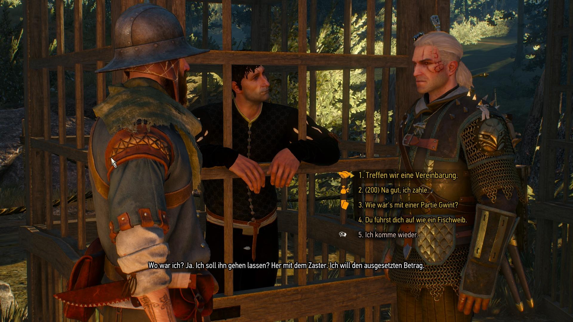 Geralt darf Hans von Cidaris herunterhandeln. Ihr könnt damit 30 Kronen oder mehr sparen. - Wie wär's mit einer Partie Gwint?