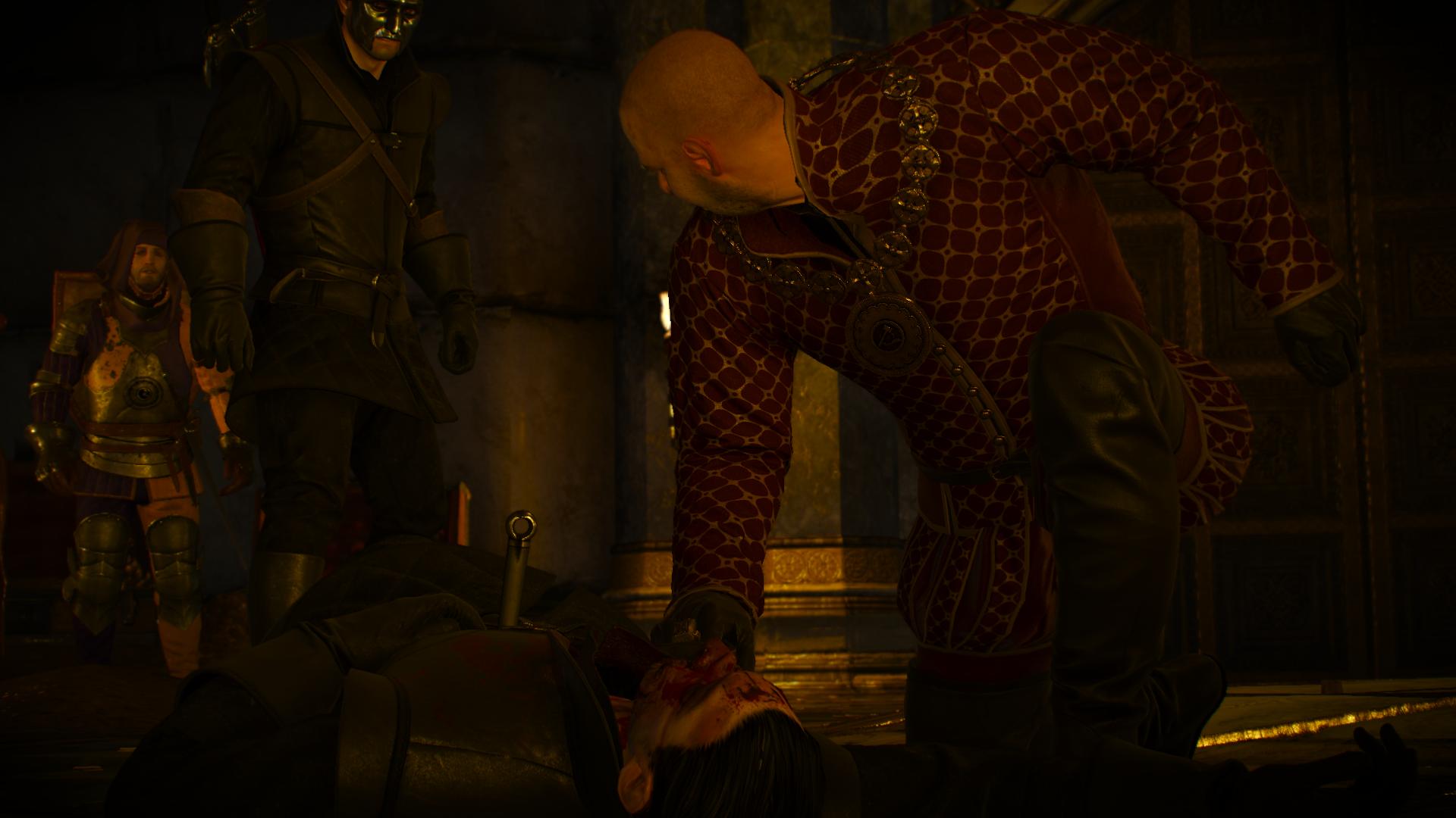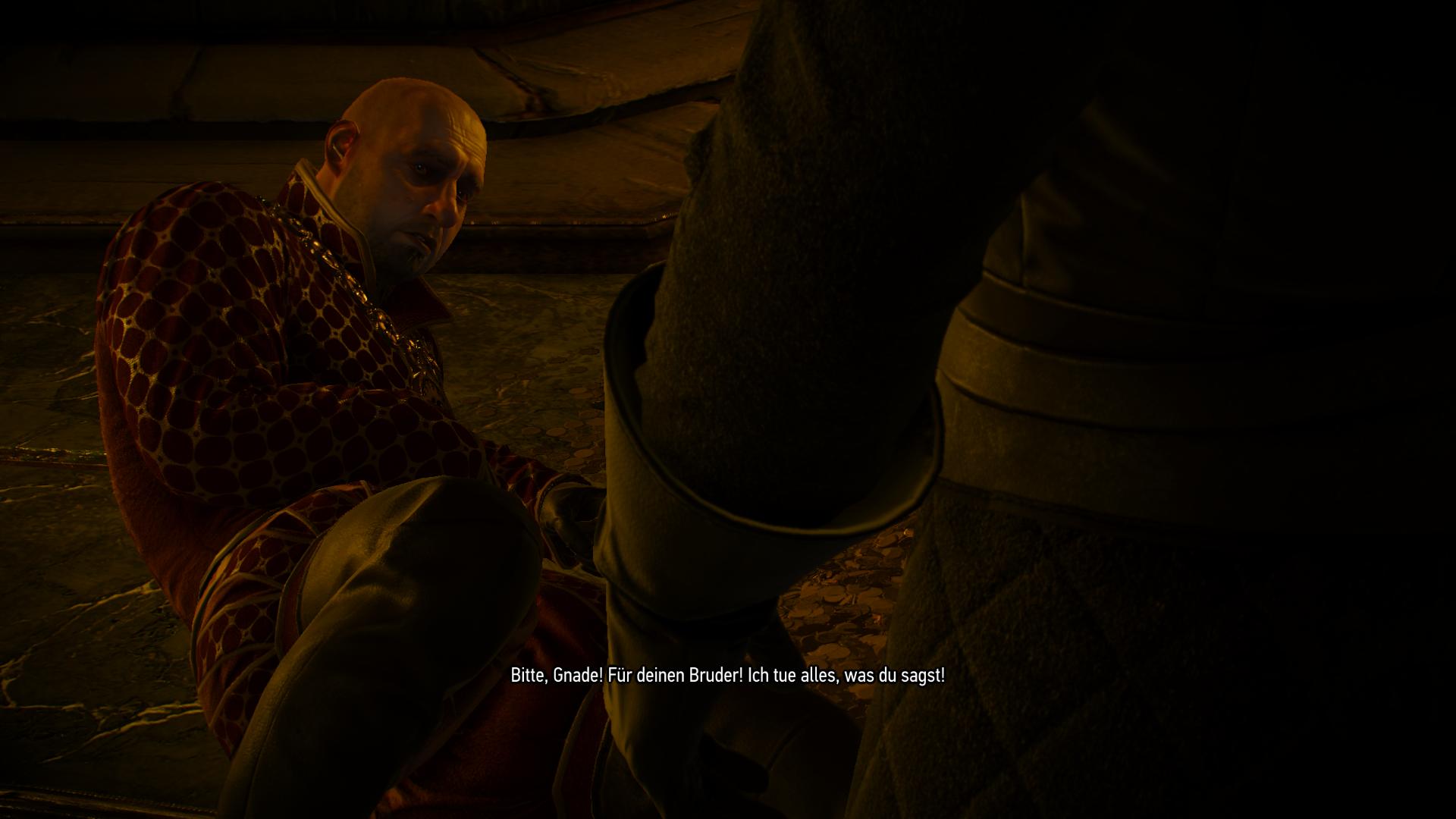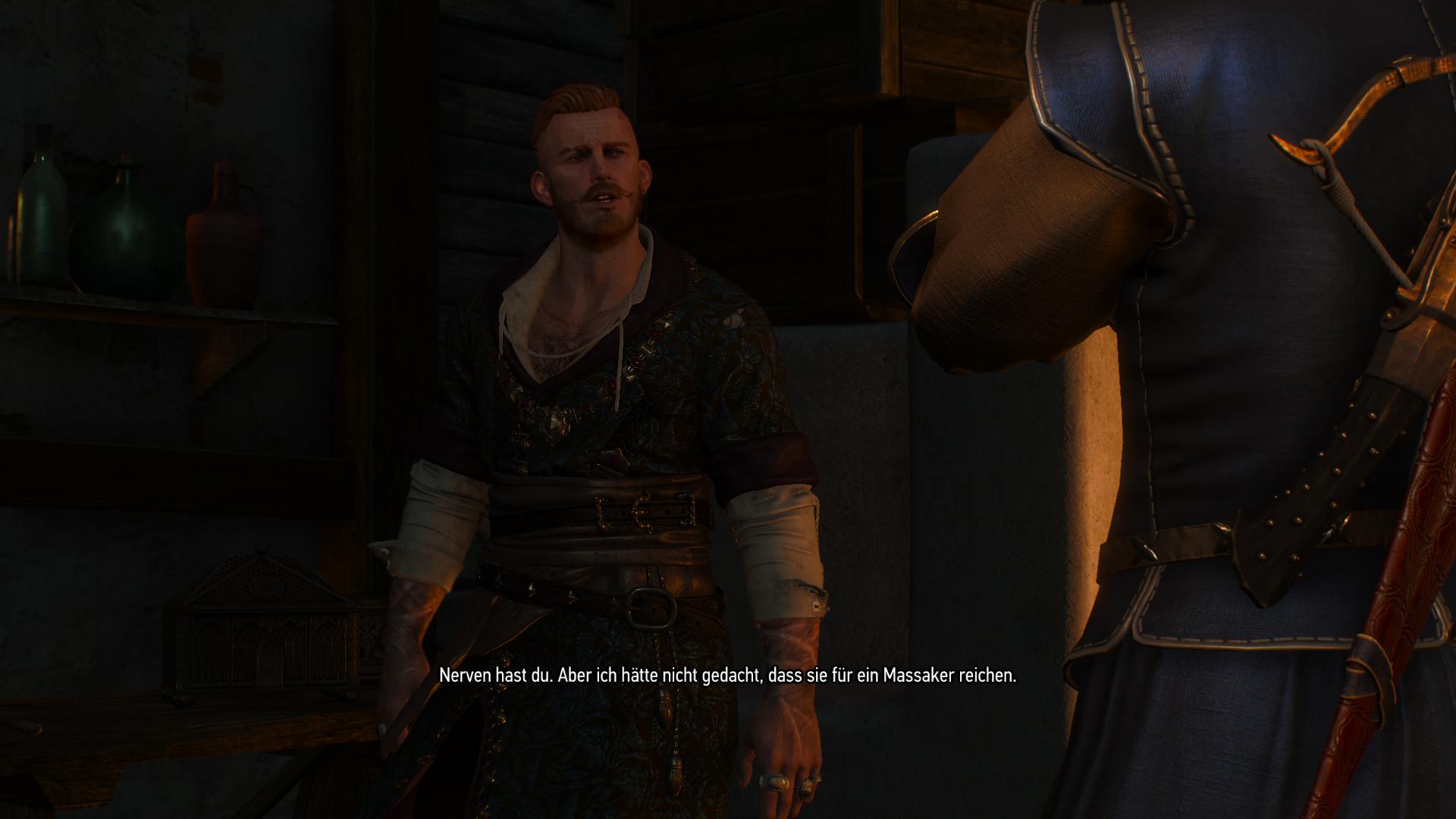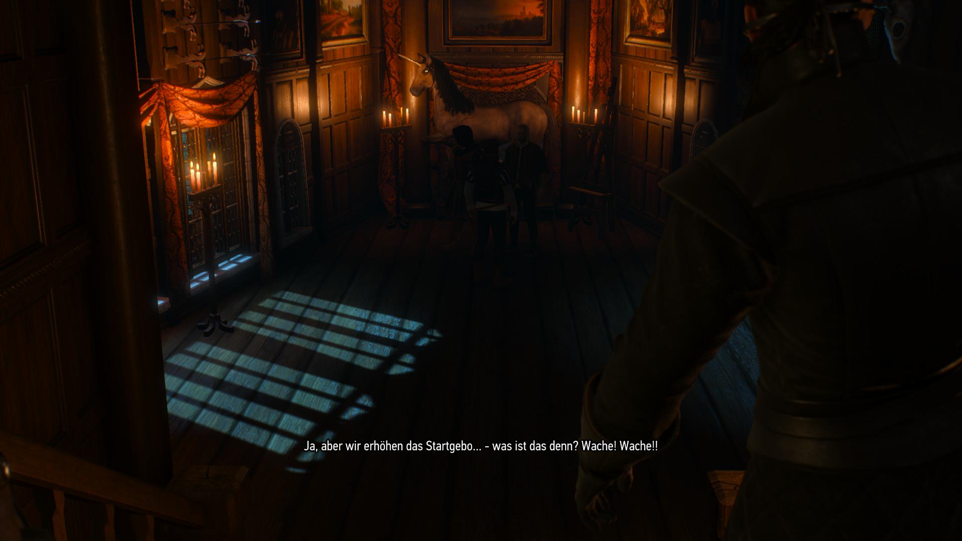 Die Reinigungsmixtur fürs Vergiften des Essens, solltet ihr Problemlos im Alchemie Menü herstellen können. Zwergenschnaps, Moderhautblut und Wolfsbann dürftet ihr zu diesem Zeitpunkt des Spiels vermutlich zu Hauf im Inventar haben. Begebt euch damit zurück zum Auktionshaus am Nordende von Oxenfurt und belauscht die Wachen dort. Ihr müsst jeweils an den Rand des markierten Bereichs gehen, eure Hexersinne aktivieren und damit dem Gespräch lauschen. Die ersten Wachen vor dem Auktionshaus reden über andere Dinge, genau wie die zwei Wachen im Haus, die ihr durchs Fenster belauschen könnt. Die Patrouille am Flussufer redet letztlich tatsächlich vom Essen. Am Besten nähert ihr euch dem Paar von Osten, denn das Gespräch bricht ab, wenn ihr zu nah dran seid und sie laufen nach Osten. Sobald sie vom fischenden Koch erzählt haben, könnt ihr den Koch unterhalb der Brücke am Westtor aufsuchen (ist nur tagsüber da). Mit 500 Kronen (50 XP) oder Täuschung (40 XP) lässt er sich überzeugen, die Reinigungsmixtur ins Essen zu mischen. Damit sind alle Vorbereitungen abgeschlossen und ihr könnt zurück zur Hütte des Kräuterkundlers reiten, um den Einbruch durchzuziehen.