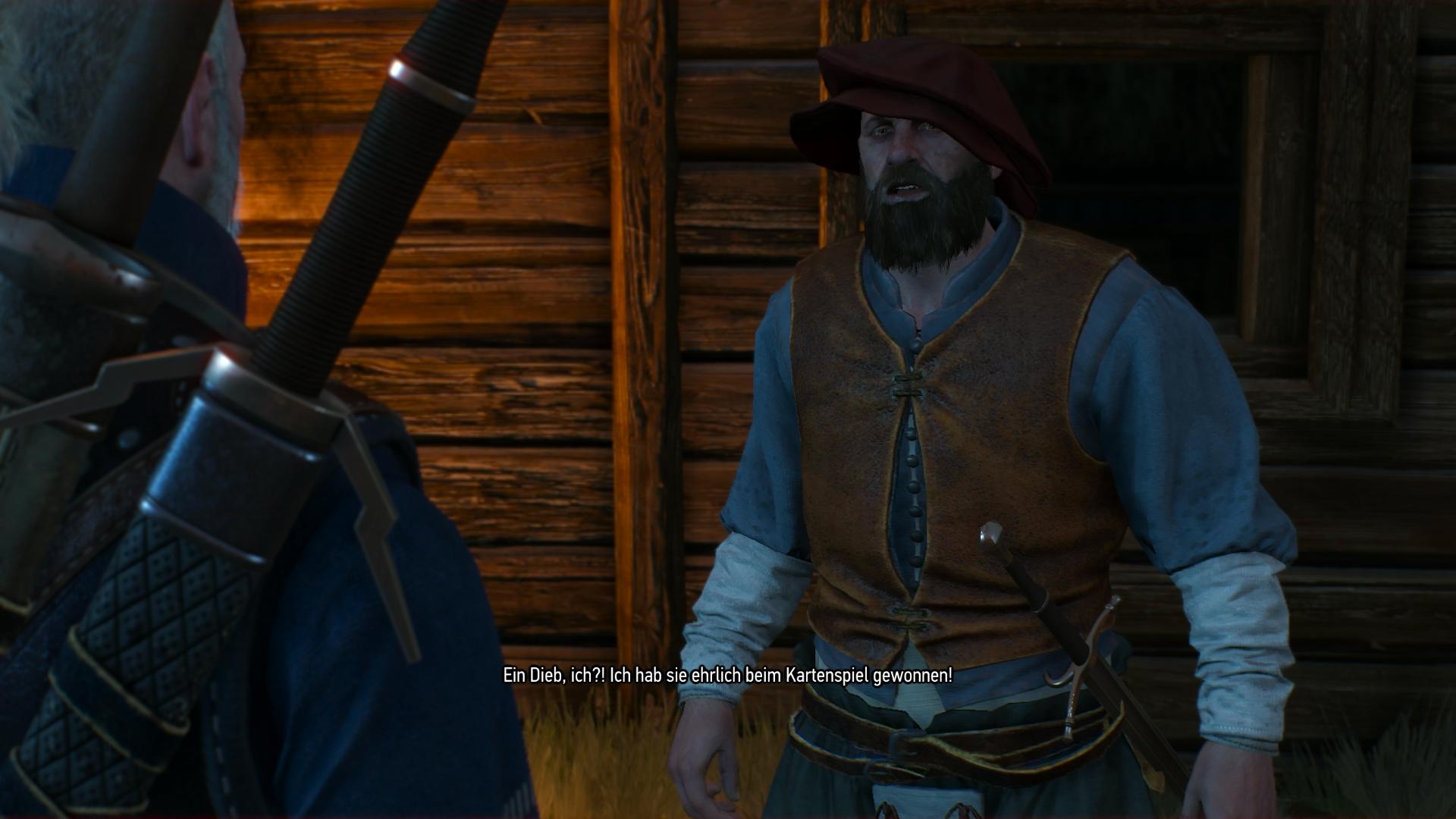 Da er sie beim Kartenspiel gewonnen und ohnehin eine Glücksträhne hat, willigt Axel direkt ein, eine Partie Gwint entscheiden zu lassen. - Gib mir die Dokumente - das musst du.