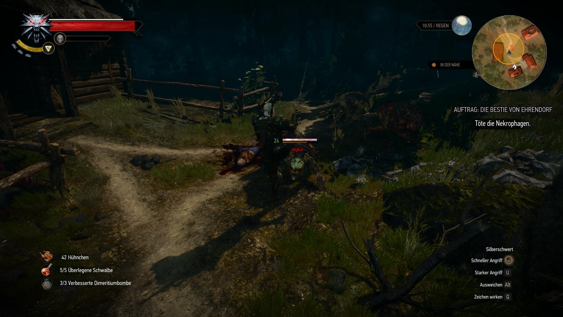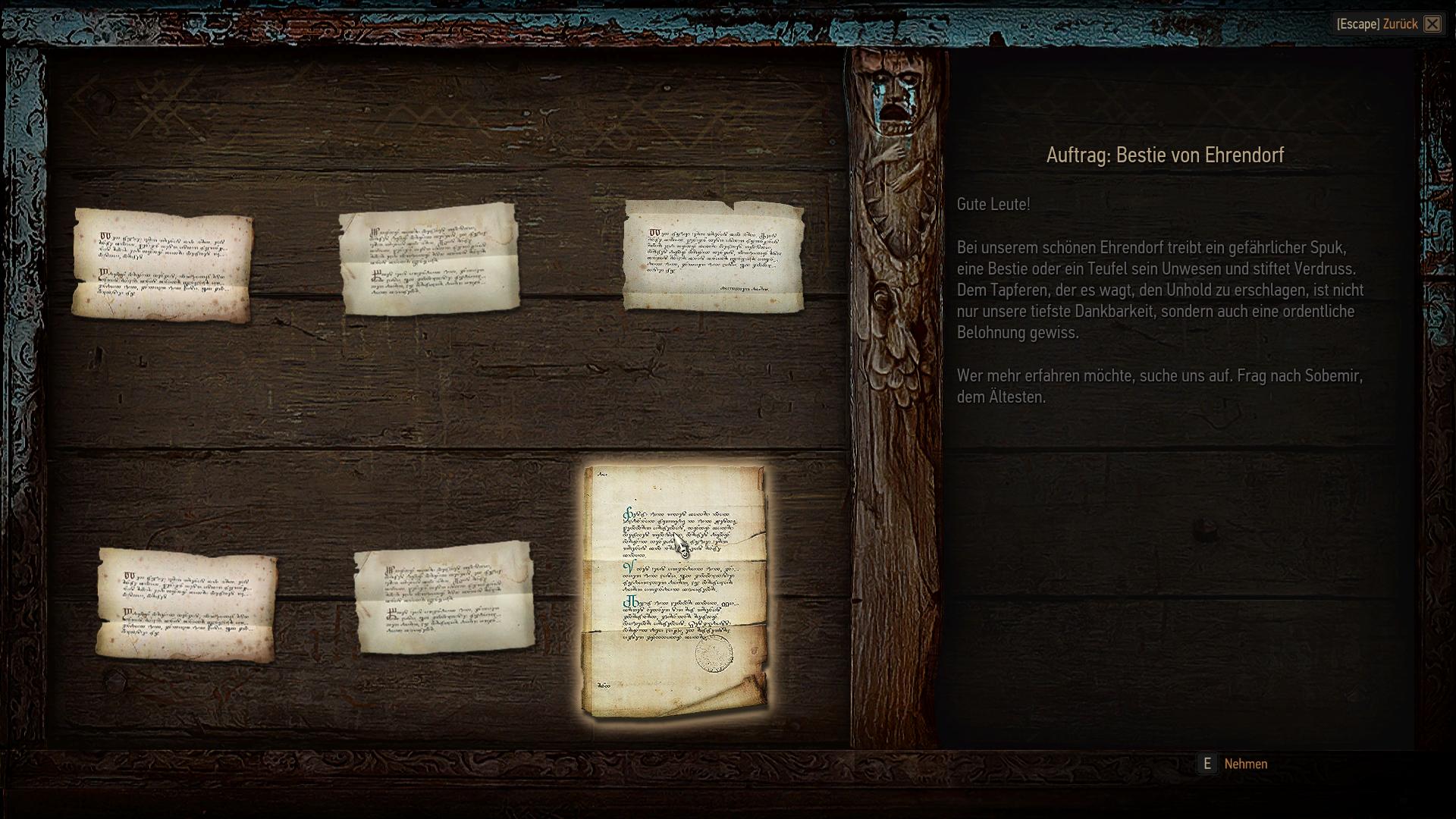 Diese Quest ist die Vorstufe der "Wo Katz und Wolf spielen ..." Nebenquest. Der "Bestie von Ehrendorf" Auftrag startet durch einen Aushang am Anschlagbrett von Erzdorf (Oreton) oder Krähenfels (Crow's Perch). Das sollte euch in eine Ansammlung von vier Häusern nördlich vom Erzdorf und westlich der "Hütte des Bootsbauers" bringen. Bei eurem Eintreffen in Ehrendorf ist der Waldschratt jedoch genauso tot wie die ganzen Einwohner und ihre Leichen haben bereits Alghule angelockt. Sobald ihr die Ghule getötet habt, endet der "Bestie von Ehrendorf" Auftrag und die "Wo Katz und Wolf spielen ..." Quest beginnt automatisch.