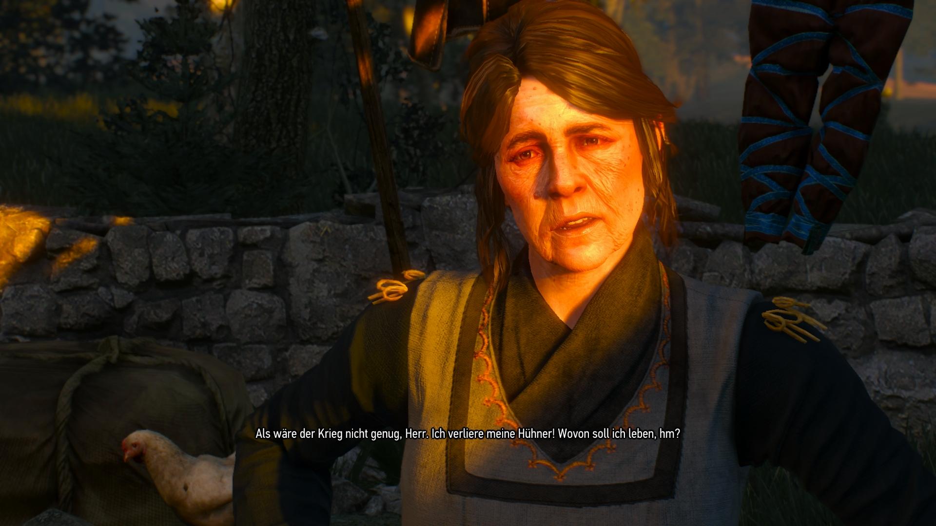 In Velen bar eine alte Frau Geralt um einen ungewöhnlichen Gefallen. Vor einiger Zeit waren ihre Hennen aus dem Hühnerstall verschwunden. Anhand der Spuren, die sie gefunden hatte, ging die Frau davon aus, dass eine zweibeinige Kreatur mit wolfsähnlichen Pfoten dafür verantwortlich war. Geralt erklärte sich bereit, der Sache mit dem geheimnisvollen Wesen auf den Grund zu gehen.