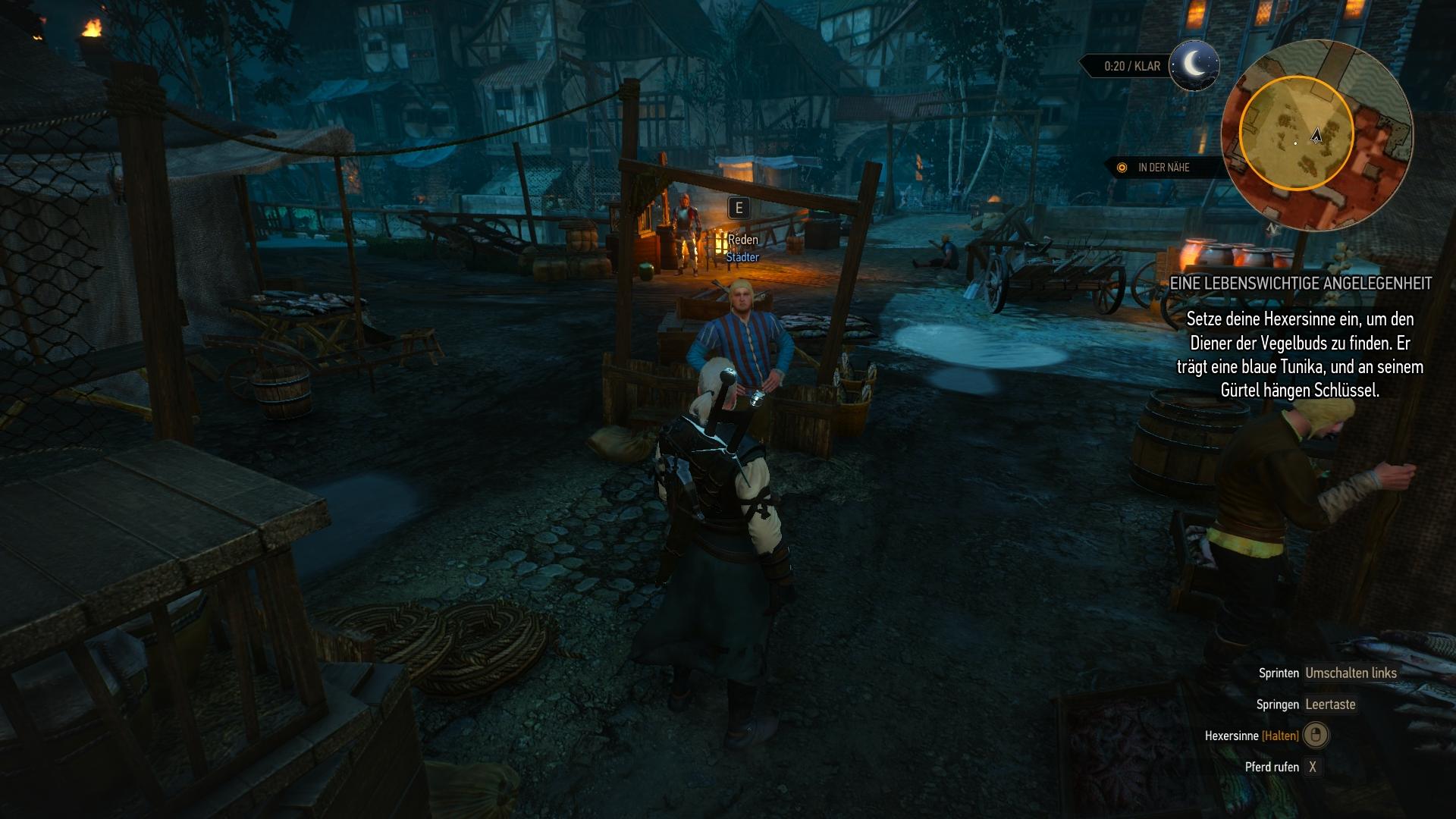 Im Gespräch mit Triss in ihrer Novigrader Wohnung [6], erzählt sie Geralt etwas von einer sonderbaren Nachricht, die sie von Ingrid Vegelbuds Diener erhalten hat. Ingrid ist bereit den Magiern zur Flucht zu verhelfen, fordert dafür jedoch einen Gefallen ein. Mehr Details gibt der Brief nicht preis. Nur das Triss Herrin Vegelbuds Diener auf dem Fischmarkt treffen und ihn als Erkennungszeichen nach dem Forellenpreis fragen soll. Selbstverständlich bietet ihr euch an, das Treffen zu organisieren und müsst anschließend zum Fischmarkt reisen, um den richtigen Mann im blauen Hemd zu finden.