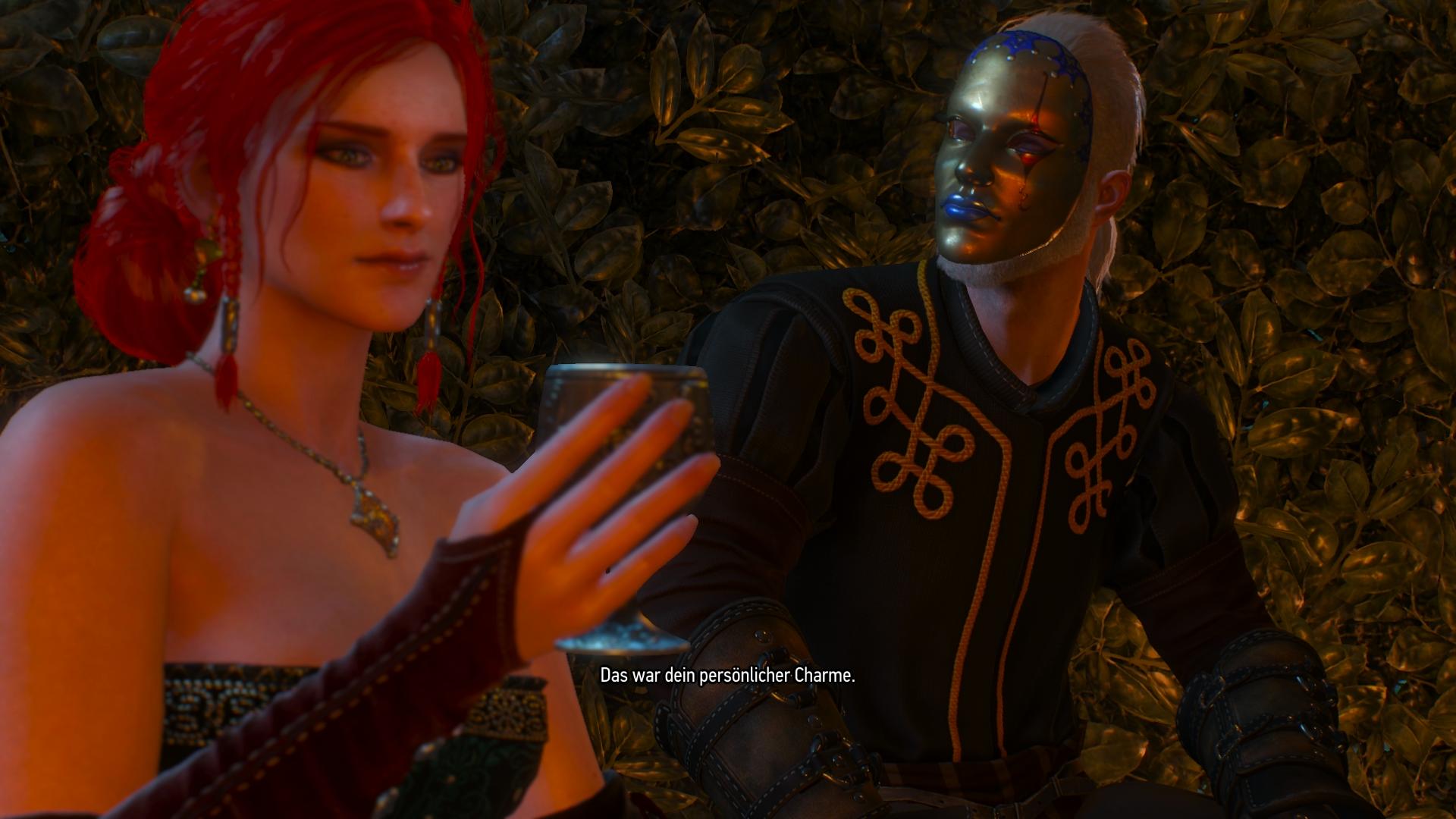 Triss erwidert, dass es sich fasst wie ein Kompliment anhörte und ihr müsst das bestätigen, wenn es romantisch weiter gehen soll. - Sie haben sonst niemanden.