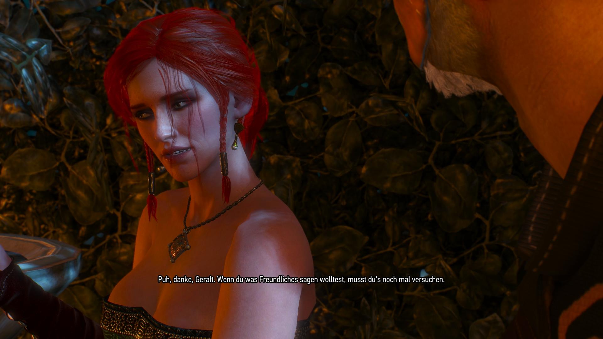 Triss hakt bei dieser Reaktion noch mal nach, ob ihr vielleicht doch etwas freundliches sagen wolltet. Mit "Du siehst nett aus." könnt ihr so ziemlich alles kaputt machen.