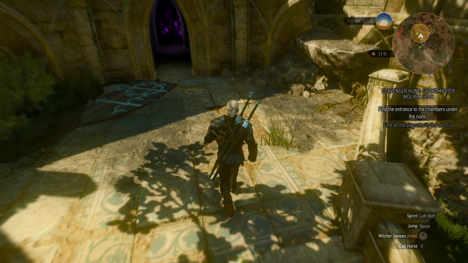 Geralt selbst stammte von der Wolfsschule, daher war er an Großmeisterschemas dieser Schule besonders interessiert. Er begann seine Suche bei jenen Elfenruinen, die ein gewisser Hexer Jahre zuvor besucht hatte, als er die Mitglieder einer archäologischen Expedition eskortiert hatte.