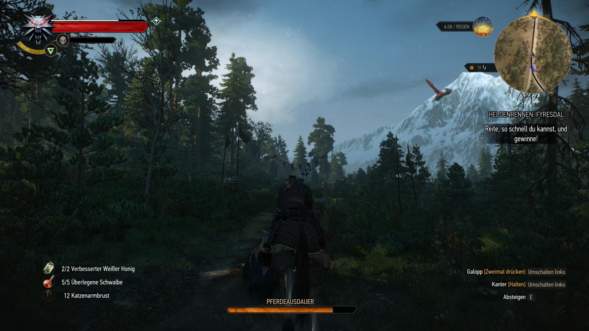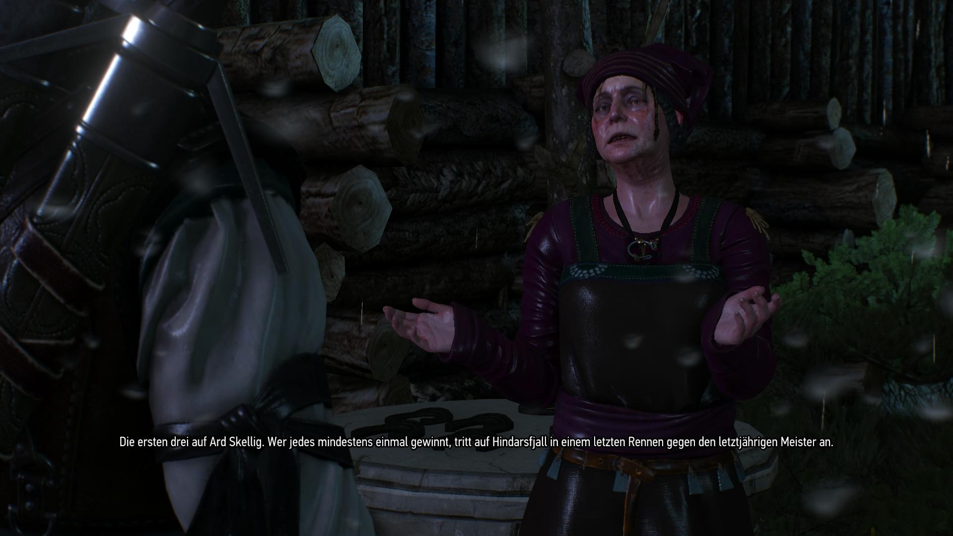 Dieses und die drei anderen Heldenrennen auf der Hauptinsel Ard Skellig starten durch die übergeordnete Heldenrennen: Zu Ehren der Göttin! Quest auf der Insel Hindarsfjall. Svana am Dorfeingang von Larvik erzählt euch von den Ard Skellig Rennen, die als Qualifizierung fürs Meisterrennen gelten, bei dem ihr den besten Sattel in Witcher 3 gewinnen könnt. Redet mit dem Rennleiter am Startpunkt südlich von Blandare [32], um gegen Bald Sigge und Aegir Fischig anzutreten. Die Rennstrecke ist ziemlich lang, hat aber keine scharfen Kurven. Lediglich wenige Meter vorm Ziel, gibt es eine kleine Brücke, die man leicht verpassen kann. Kommt ihr als erster ins Ziel, erhaltet ihr 50 Kronen und einen Kavalleriesattel für Plötze.