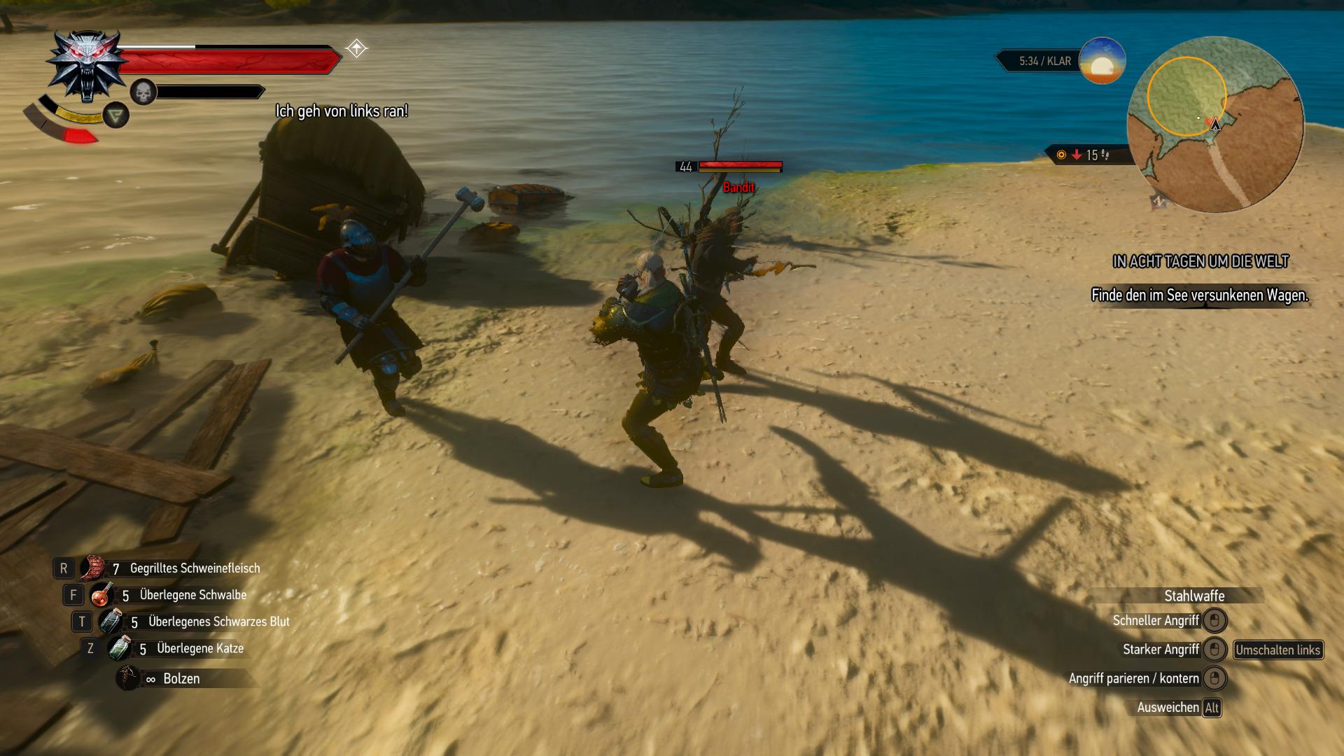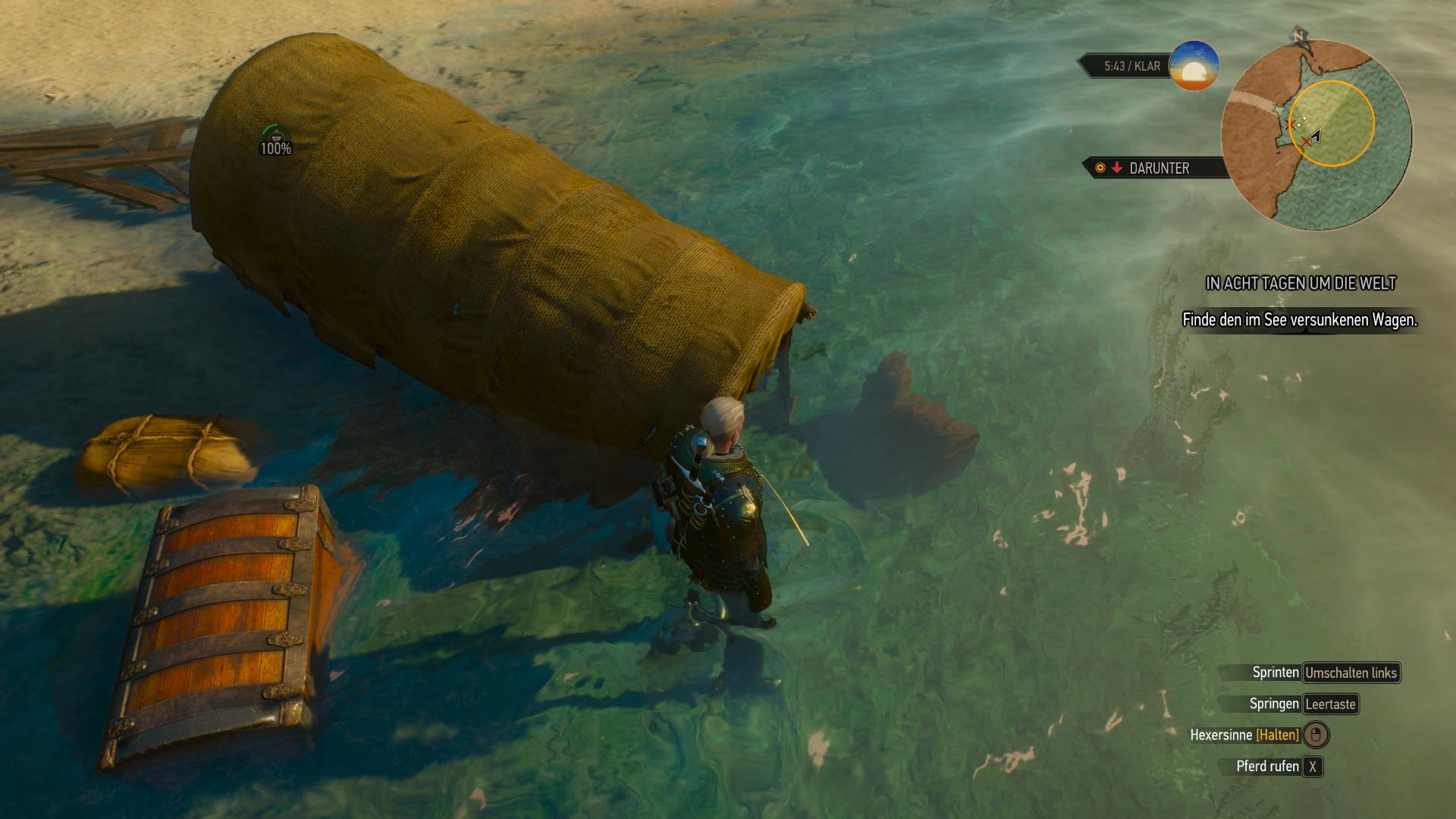 Im Wald östlich des Corotnata-Weinguts hat eine Gruppe Banditen ihr Lager aufgeschlagen. Erledigt ihr sie, könnt ihr aus der Truhe des Lagers den Schlüssel zu einer Reisekiste sowie den unvollendeten Bericht nehmen. Der Bericht führt euch wenige Meter südöstlich zum Strand runter, wo zwei weitere Banditen (Stufe 44) besagten Karren bewachen. Nachdem ihr sie zerteilt habt, könnt ihr die versunkene Truhe direkt hinter dem Planwagen öffnen und die Schatzsuche damit beenden.