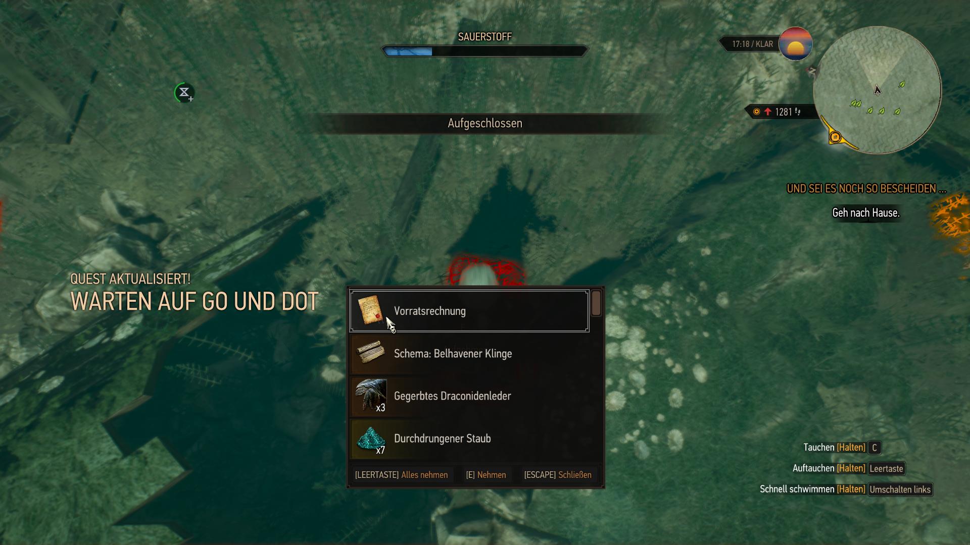 An der nordwestlichen Spitze der sonst uninteressanten südöstliche Ecke Toussaints hat eine kleine Gruppe Banditen ihr Lager am Rande des Flusses aufgeschlagen. Habt ihr die Angreifer niedergeschlagen, findet ihr bei einem von ihnen "Befehle auf fleckigem Papier". Sie führen euch zu einem versunkenen Schiff auf halben Wege zum anderen Ufer. Besagter Schatz ist am südöstliche Rand des Suchbereichs zu finden.