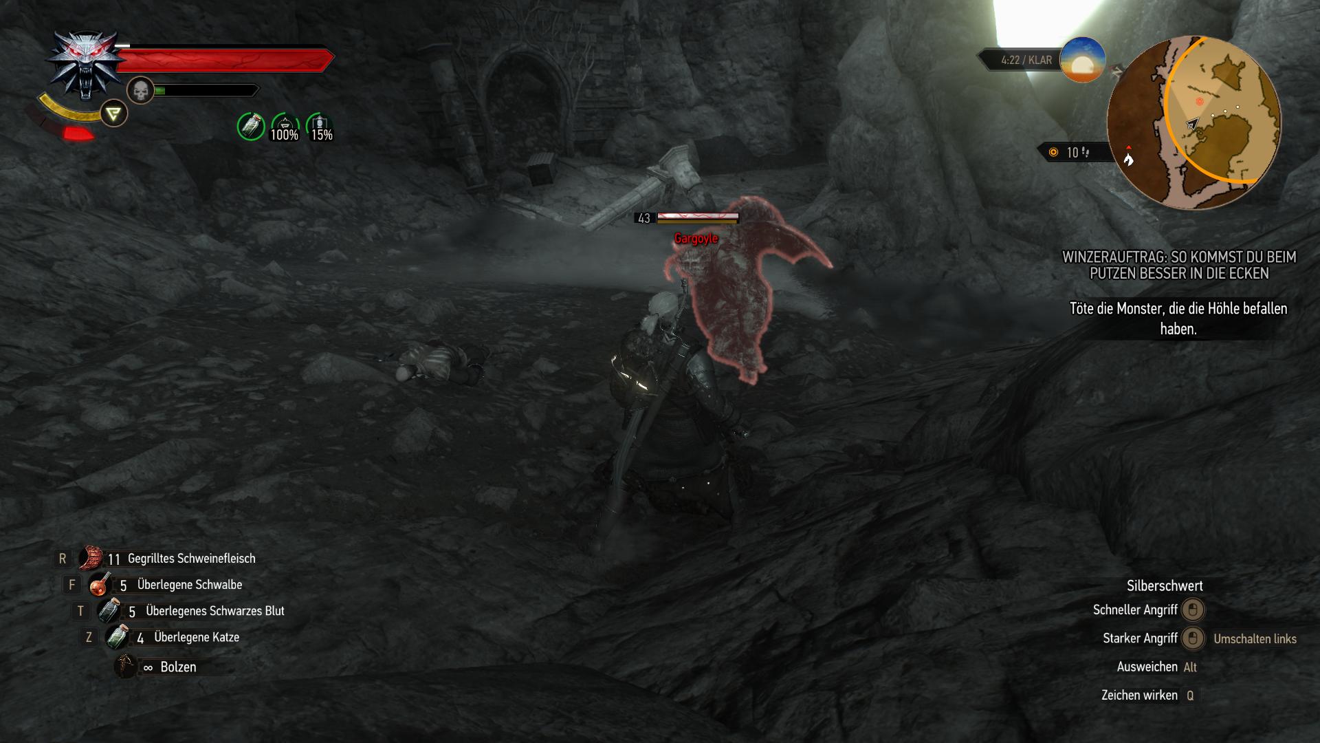 Eine kleine Höhle östlich der Ruinen des Termes-Palasts im Südosten Toussaints ist Austragungsort dieses Auftrages. Der Winzer vor der Höhle hat laute Geräusche daraus gehört und seinen Gehilfen rein geschickt, der nie zurück kam. Vermutlich wurde er von einem der zwei Gargoyles plattgetreten. Handelt den Winzer auf 250 Kronen oder mehr hoch, bevor ihr dem Auftrag zustimmt.