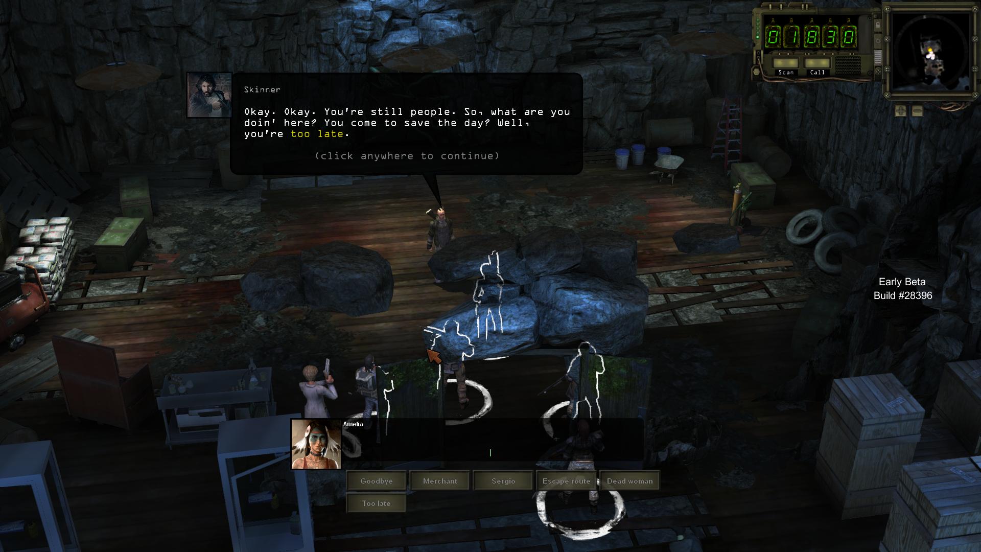 Westlich vom Kampf befindet sich ein Torbogen im Fels (leicht zu übersehen), der zu drei aufeinander folgenden Räumen führt. Im ersten liegt neben der Leiche von Dr. Herbison eine Energiewaffe. Skinner hat sich im dahinterliegenden Raum eingeschlossen. Wenn ihr ihn davon überzeugt, dass ihr Desert Rangers seid, lässt er euch rein und erzählt wie er hier rein geflohen ist und seine Frau Marta und seinen Sohn zurücklassen musste. Zudem verrät er euch, dass Sammy (Samuel) im Rail Nomad Camp etwas über Aces Tod wissen könnte. Skinner bittet euch um eine Eskorte nach draußen, wofür ihr ihn einfach zum Computerraum führen müsst. Neben den üblichen Kisten findet ihr in Sergios Raum auch ein Flasche mit Dünger (Fertilizer), die ihr unbedingt einpacken und später zu Kathy bringen solltet. Der dritte Raum ist verschlossen und beinhaltet weitere verschlossene Behälter mit Munition und Verbandszeug. Verlasst die Höhle und steuert durch die schmale Passage am gegenüberliegenden Ende der Höhle. Dort stoßt ihr auf die zweite und letzte Insektengruppe der südlichen Höhle, die von Sergio angeführt wird. Schaltet sie aus und plündert die Kisten. In die Rankenbewucherte Höhle kommt ihr wie üblich noch nicht rein. Aber merkt sie euch für später. Kehrt zum Computerraum zurück.