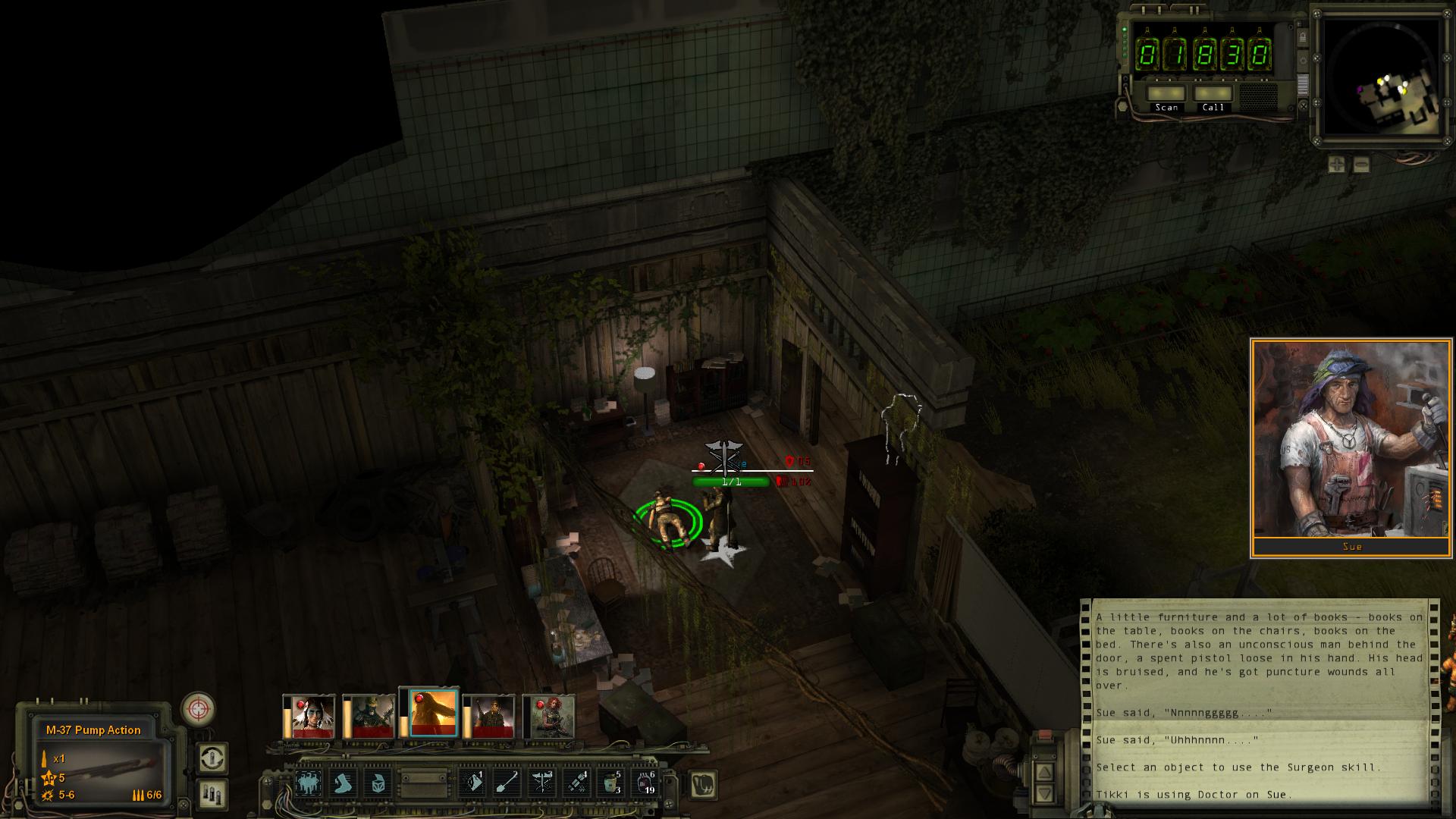 Bevor ihr das Feld verlasst, könnt ihr noch den Rest erkunden. In der eben noch besuchten Scheune lassen sich die vertrockneten Ranken nun zerschießen und geben der Weg zur zweiten Hälfte frei. In dem verschlossenen Gebäude zwischen Scheune und dem Eingang, liegt Sue bewusstlos am Boden. Mit Roses "Chirurg" (Surgeon) Fertigkeit könnt ihr ihn ins Leben zurückholen. Wenn ihr die Taubenställe (auf dem östlichen Feld) untersucht habt, könnt ihr Sue nach den Tauben (Pigeons) befragen. Woraufhin ihm einfällt, dass er die Tauben mit infiziertem Futter gefüttert und losfliegen lassen hat. Auf diese Weise erhaltet ihr eine neue Quest und drei neue Standorte auf der Weltkarte (Infizierte Pumpenstation, Infiziertes Dorf und Infizierte Farm). Sobald ihr mit dem Ag Center selbst durch seid, dürft ihr dahin aufbrechen.