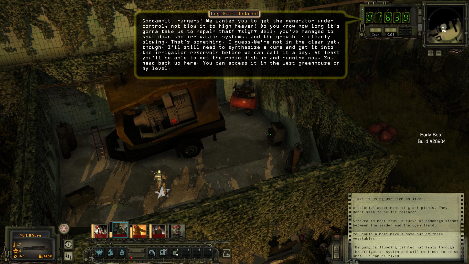 1. Ihr zerschießt den großen braunen Generator, was die Ausbreitung der Gewächse stoppt, aber Kathy ziemlich verärgert, weil sie das Ding später reparieren muss.