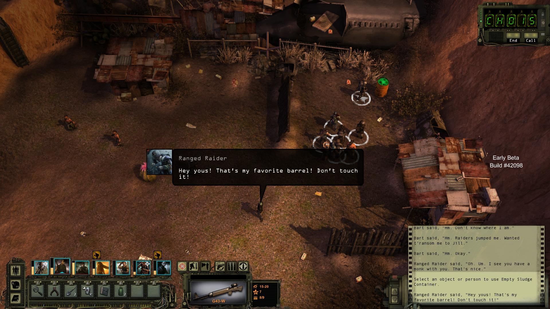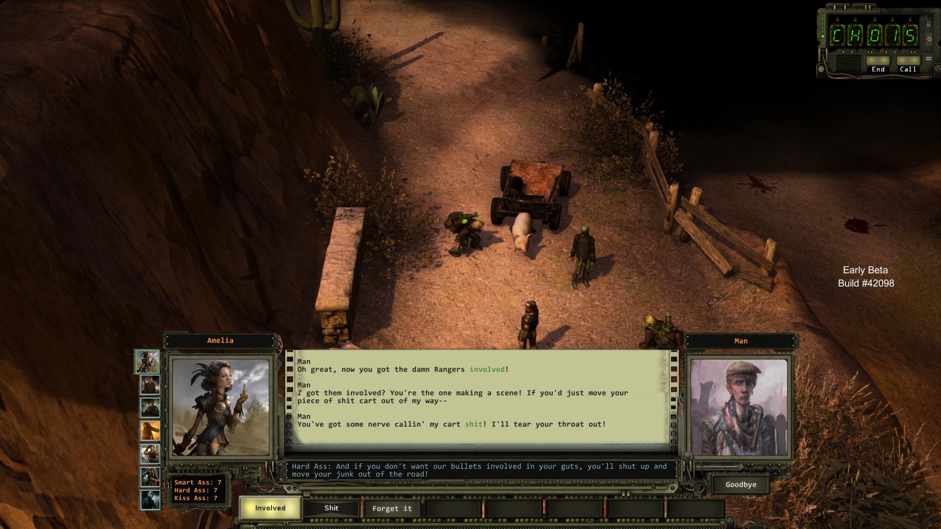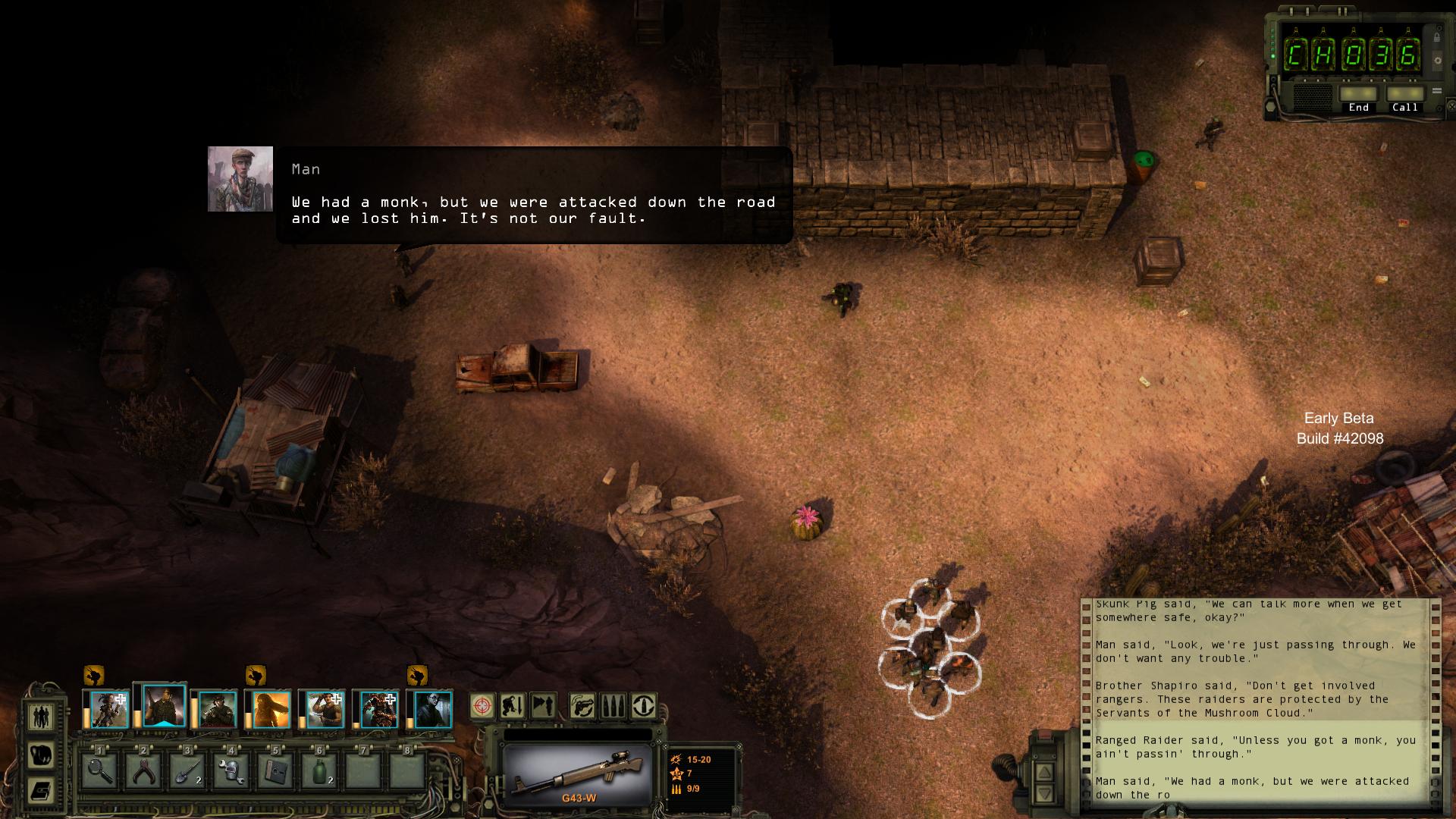 Die Brücke hinter Außenposten zwei wird von zwei Händlern und ihren Karren blockiert. Jeder von ihnen hat einen Mönch-Selbstmörder dabei. Mit "Smart Ass" (Stufe 2) könnt ihr ihnen sagen, dass genug Platz für beide ist und mit "Hard Ass" (Stufe 4), dass sie aus dem Weg gehen sollen, wenn sie keine Kugeln mögen. In beiden Fällen gehen sie unbeschadet aneinander vorbei. Habt ihr beide Sprachfertigkeiten nicht, sprengen sich beide Mönche in die Luft und euch bleibt die Beute von den Karren.
