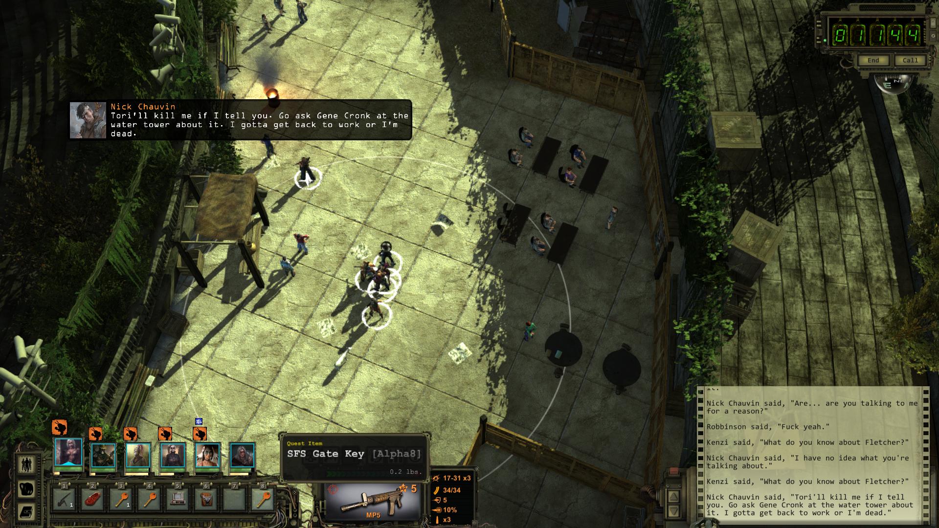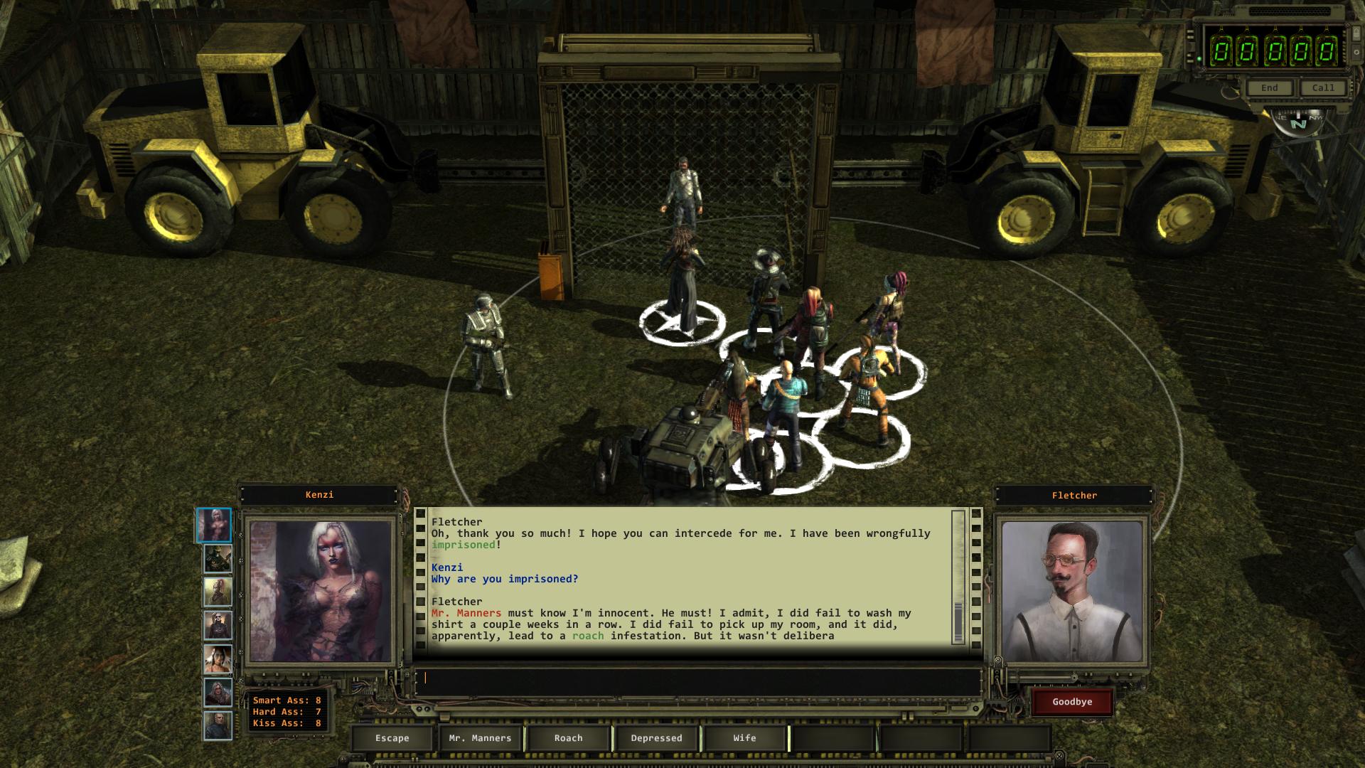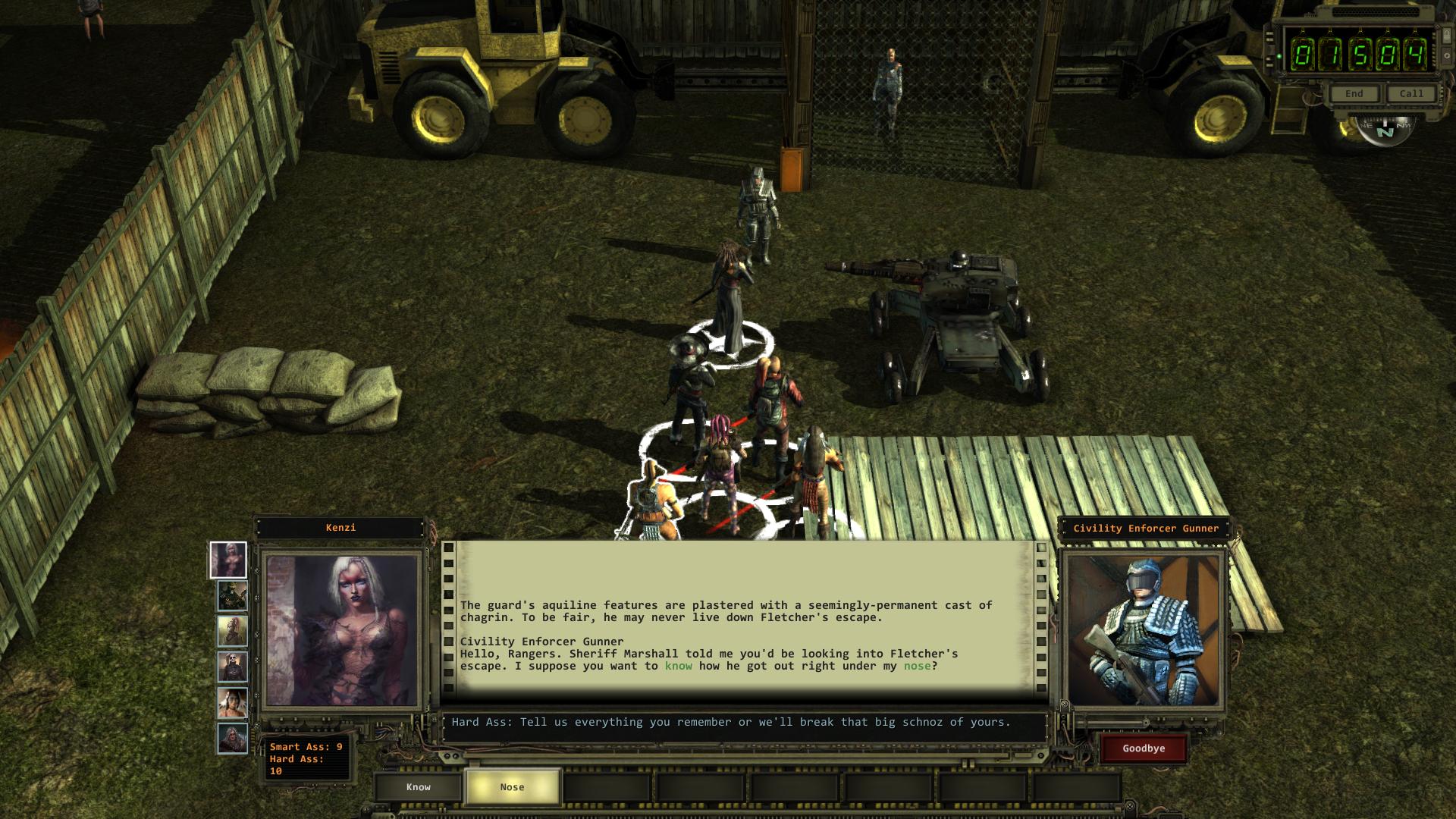 Achtung!!! Es gibt in der Release-Version von Wasteland 2 einen bekannten Bug, der euch unabhängig vom Lösungsweg begegnen wird und den ihr an diesem Punkt kennen müsst, um ihn umgehen zu können. Andernfalls werdet ihr ihn bis zum Ende des Spiels haben! Bei euren nächsten Schritten, werdet ihr euer siebtes Gruppenmitglied zurückerhalten. Habt ihr zu dem Zeitpunkt sechs Gruppenmitglieder, tritt der Bug ein. Das Spiel glaubt in dem Moment eure Gruppe wäre voll und ihr könnt den siebten Platz nie mehr neu besetzen und der eingesperrte Charakter ist nicht mehr ansprechbar. Ihr müsst daher kurz bevor ihr das siebte Gruppenmitglied zurück bekommt, ein weiteres aus der Gruppe werfen (Button dazu ist im Charakterbildschirm). Habt ihr den Gefangenen dann erhalten, könnt ihr das gerade rausgeworfene Mitglied wieder aufnehmen und der Bug ist umgangen.