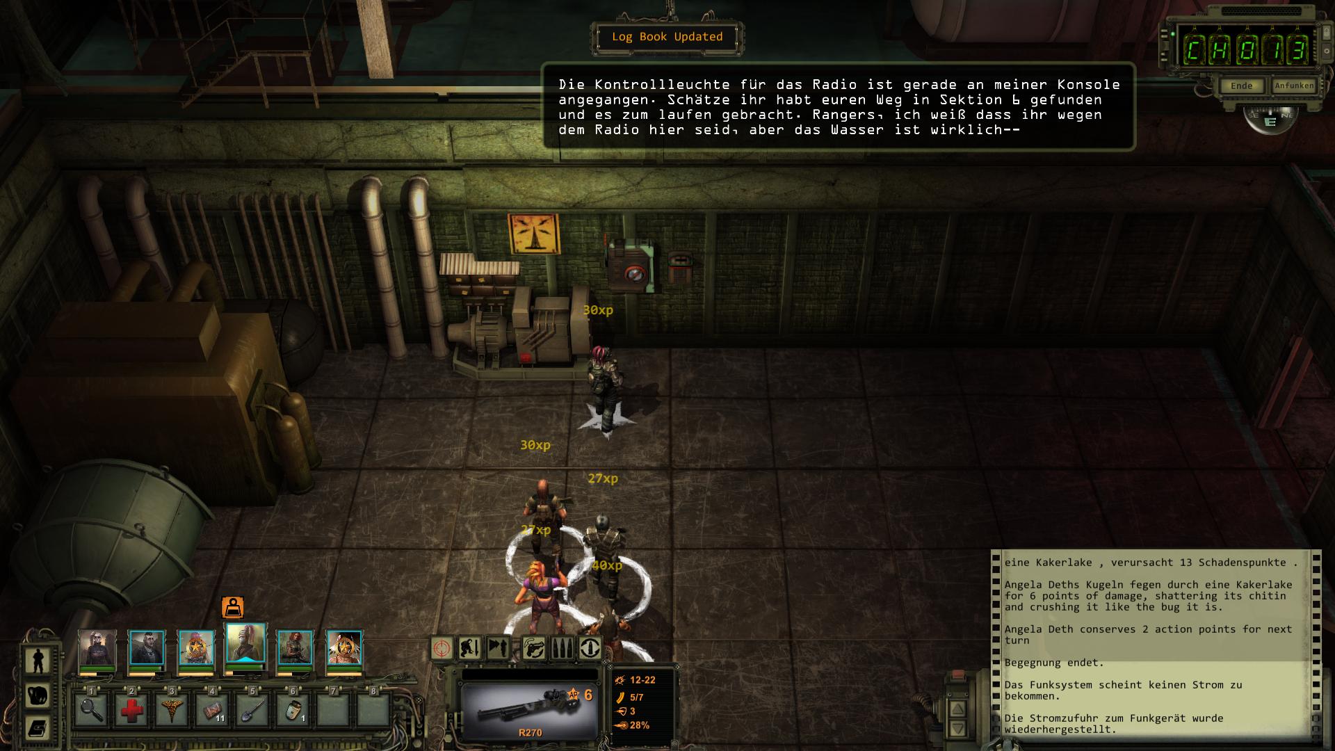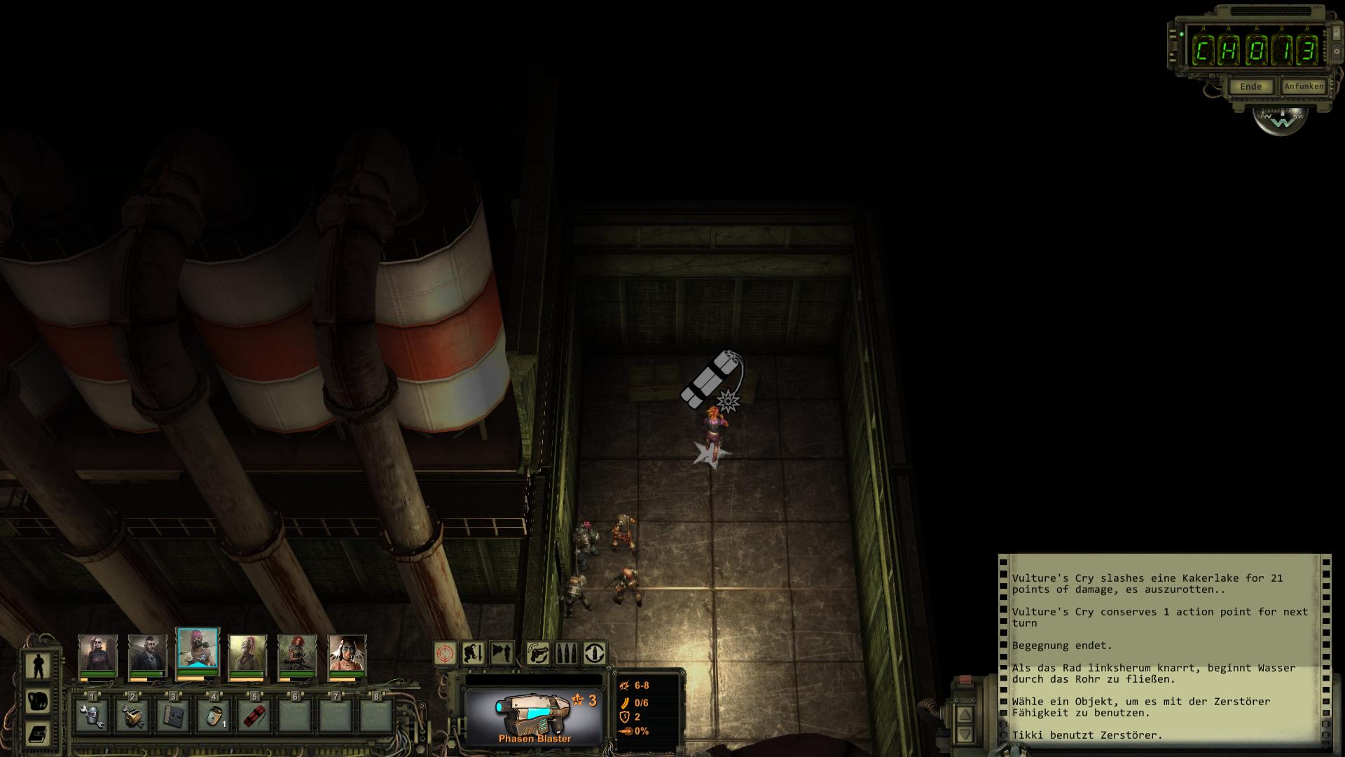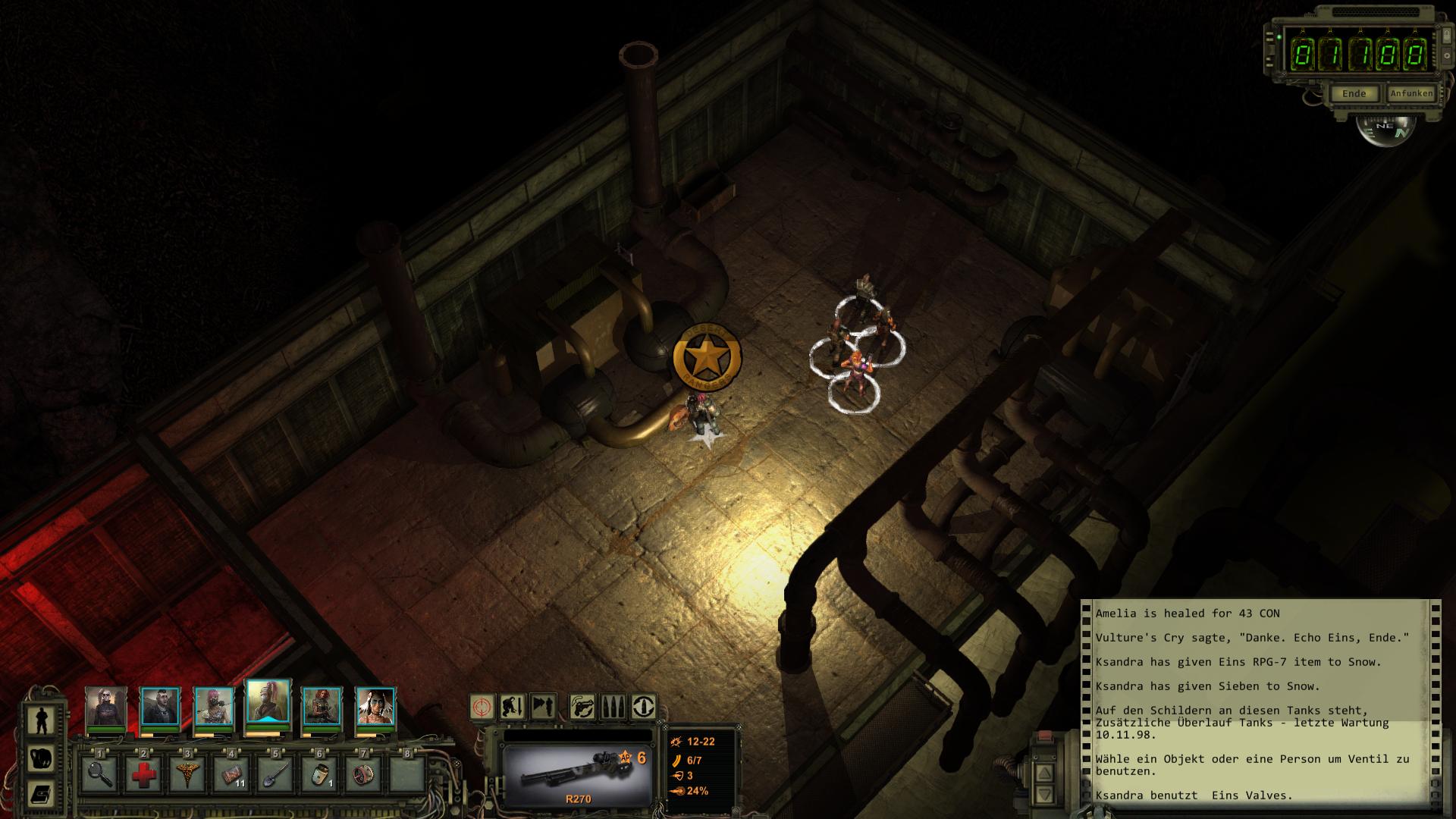 Für diese Aufgabe müsst ihr eure Gruppe aufteilen. Eine Person - die mit den schlechtesten Kampffähigkeiten - muss vorne an den Schleusen-Schaltern bleiben, währen die anderen vier oder fünf durch die geöffneten Schleusen spazieren und dort die Ventile öffnen. Ihr müsst also den Solo-Modus aktivieren (erstes Icon in der Buttonleiste anklicken oder Leertaste drücken) und die zu steuernden Charaktere markieren (entweder mit der linken Maustaste ein Auswahlfeld über sie ziehen, oder in der Portraitleiste mit gedrückter STRG-Taste alle anklicken). Die eine Person im Kontrollraum kann maximal drei Schleusentore gleichzeitig öffnen. Andernfalls fliegt die Sicherung raus und alle Tore schließen sich wieder.