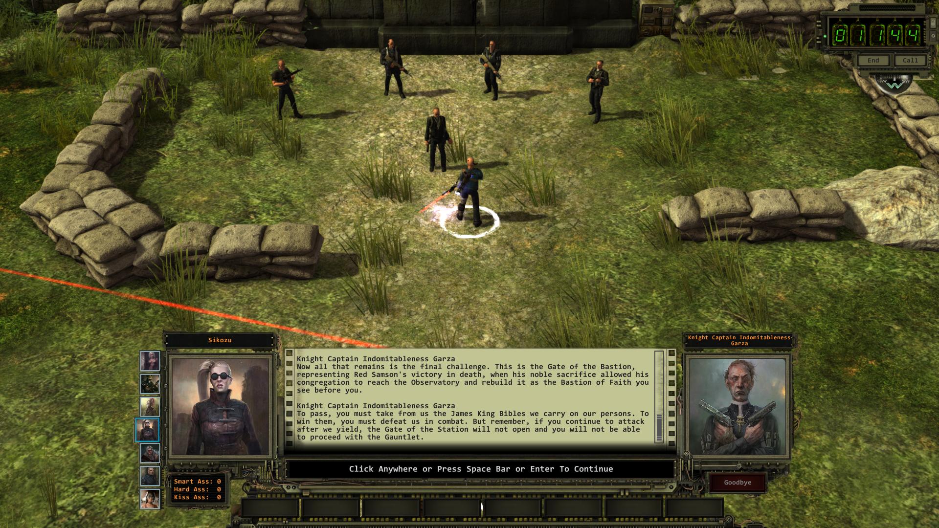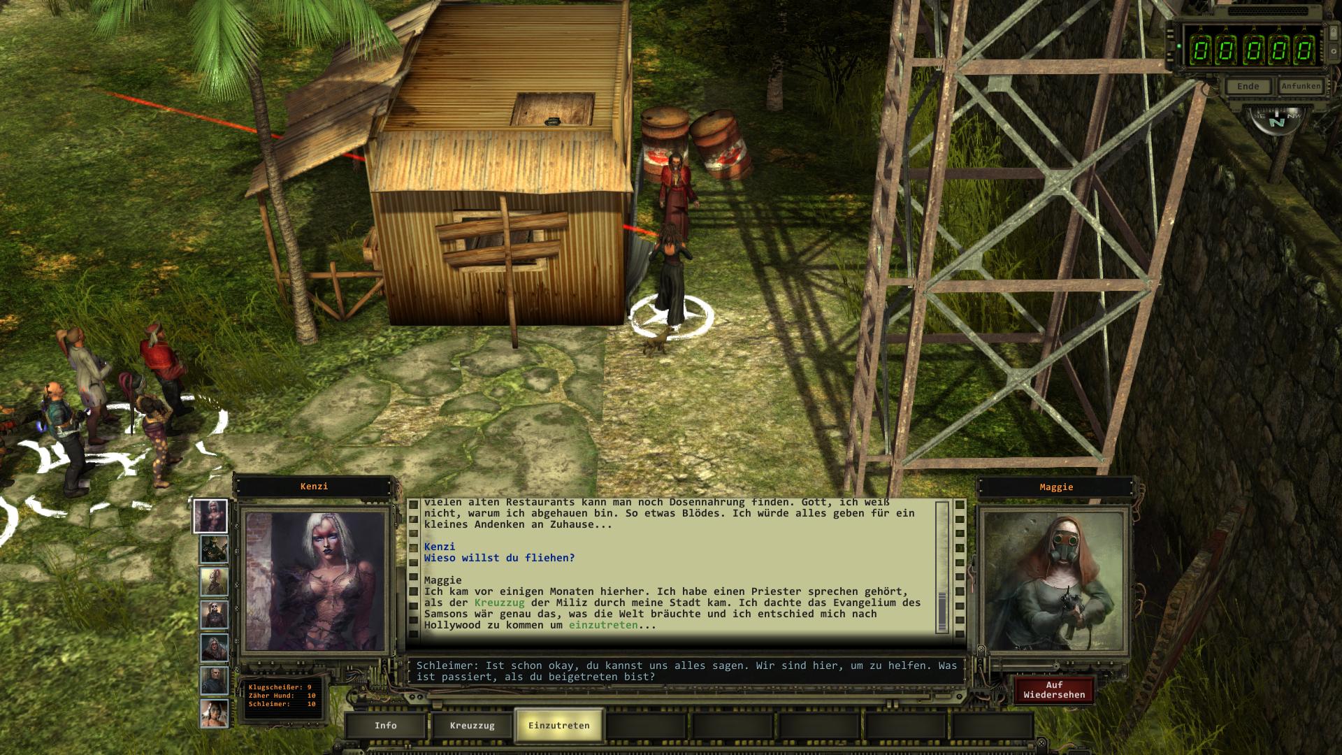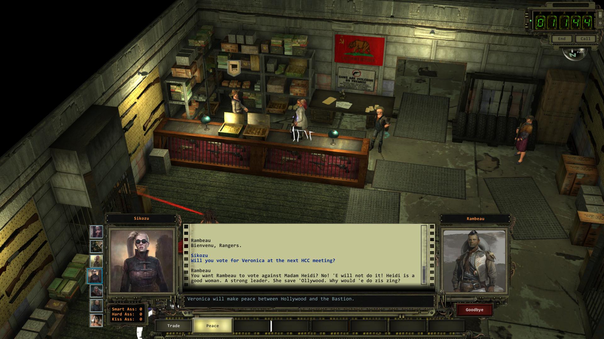 Rambeau [16] will nicht gegen Heidi stimmen, weil er sie gut findet. Er sieht aber einen Vorteil in Veronicas Vorhaben. Denn so kann er Waffen an die Pistolen Preisende Priester (Pistol Packing Priests) verkaufen. Bevor er endgültig zustimmt, müsst ihr Rambeau jedoch noch einen Gefallen tun. Er will wissen wer ständig seine Waffen stiehlt. Sein Gehilfe Jason verlässt direkt nach dem Gespräch den Laden, weil er angeblich was mit der HSP klären will. Folgt ihr Jason, könnt ihr ein Treffen [5] zwischen ihm und dem Syntheten FG13 mit ansehen. An dem Punkt könnt ihr direkt zu Rambeau zurück oder in das Treffen eingreifen und den Syntheten erledigen. Jason versucht anschließend euch zu überreden ihn laufen zu lassen. Mit Zäher Hund Stufe 8 könnt ihr ihn zwingen mitzukommen. Rambeau erschießt ihn auf der Stelle und willigt ein für Veronica zu stimmen.