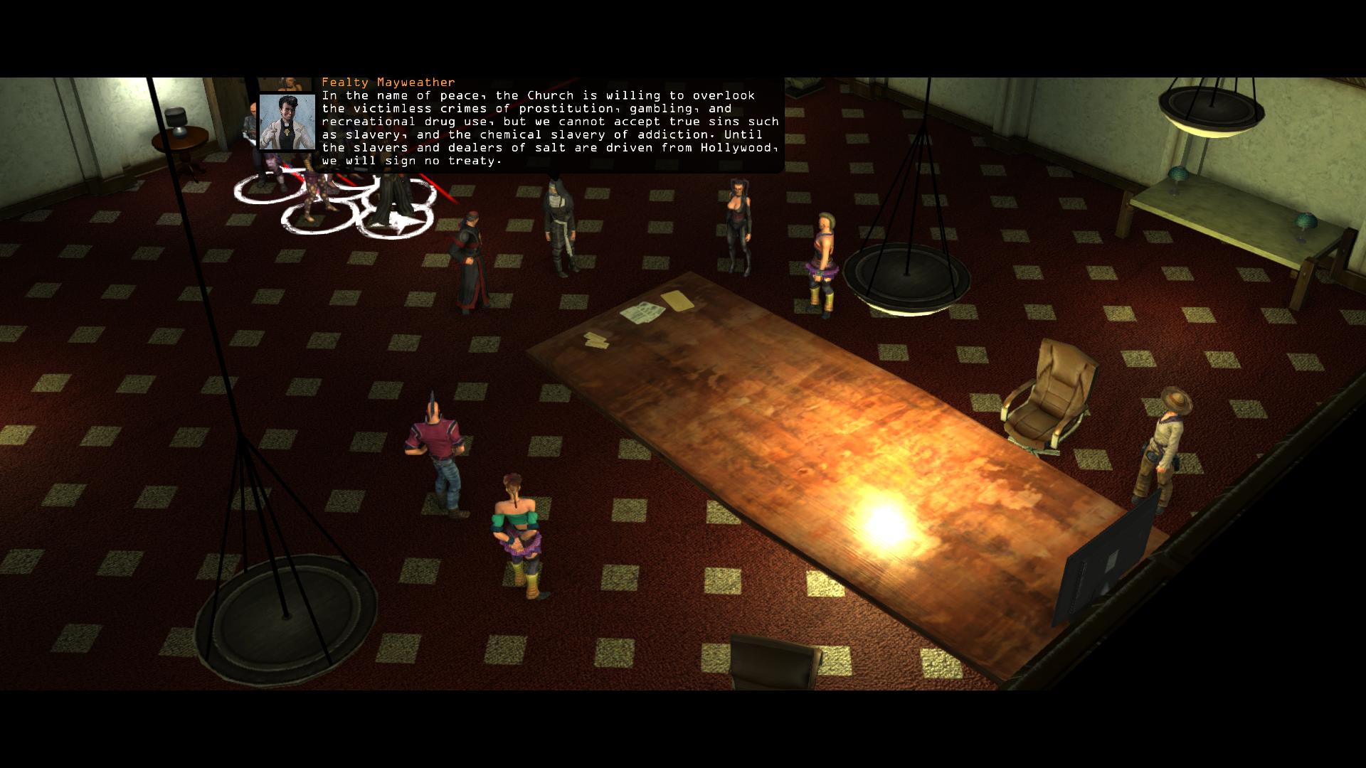 Im positivsten Ausgang für Hollywood und die Bastion habt ihr Veronica und Himmelfahrt McDade vereint, die meisten Miliz Gottes Anhänger getötet und für die Lady der Schmerzen bereits stimmen gesammelt. Als nächstes steht somit die Abstimmung der Handelskammer Hollywood (Hollywood Chamber of Commerce) an. Sprecht kurz mit Veronica in Heidis Hollywood Hideaway, um das Ereignis zu starten und geht dann nebenan in den Konferenzsaal des Etablissements. Die Konferenz läuft wie geplant, doch anschließend möchte Veronica noch mal mit euch sprechen. Sie vermutet, dass Heidi nicht so einfach aufgeben und mit einer Armee zurückkehren wird. Sie bittet euch daher Heidi zu jagen und zu erledigen. Anfangen könntet ihr mit der Suche nach Hinweisen auf ihren Verbleib in Heidis Büro.