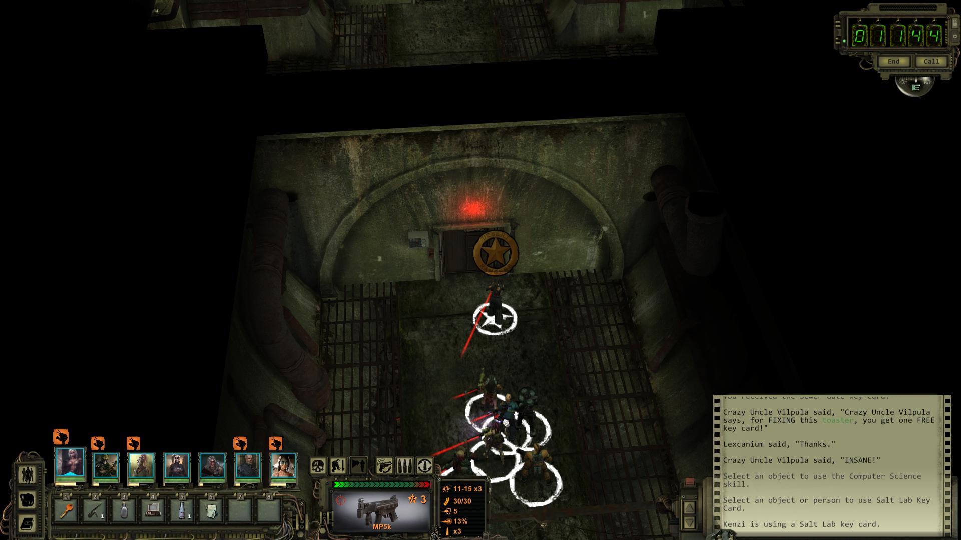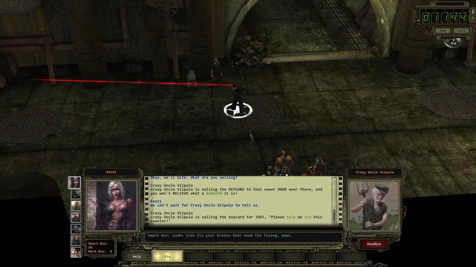 Euer Primärziel in der Kanalisation ist das Salz Labor [5], wo sich Heidi verschanzt hat. Wie rum ihr dort hin gelangt, ist euch überlassen. Ihr müsst in den ganzen Gängen aber auf Lasersprengfallen (Herausforderungsstufe 8) achten. Hinter dem Gittertor (Herausforderungsstufe 8) im Nordwesten steht Crazy Uncle Vipula - Vipula war während der Beta der Name von Gruppenmitglied Pizepi Joren. Als die mit einem Kickstarter-Backer-Namen versehen wurde, entstand hier der Verrückte Onkel Vipula - Er verkauft euch ebenfalls eine Salt Labor Schlüsselkarte (Salt Lab Key Card). Der Preis ist die Reparatur seines Toasters (Herausforderungsstufe 10). Mit Klugscheißer (Stufe 10) könnt ihr erwidern, dass sein Gehirn eine Reparatur braucht. Das bringt euch ein paar Erfahrungspunkte, aber nicht die Karte. Mit einem Exemplar der Karte könnt ihr die beiden Zugangstüren [4] zum Salt Lab aufschließen. Alternativ lässt sich die Tür (Herausforderungsstufe 10) selbst auch mit Computerwissenschaften hacken. Wofür das Panel (Herausforderungsstufe 11) daran gedacht ist, ist mir schleierhaft. Es hat scheinbar keinen Effekt, außer die Lampe grün zu färben. Aber wenn ihr einen ausreichenden Computerwissenschaften Skill habt, könnt ihr euch dadurch gleich vier Mal Erfahrungspunkte holen. Nun braucht ihr nur noch Heidi und ihre Salz Dealer erschießen und ein weiterer Schritt zur Säuberung Hollywoods ist erledigt.