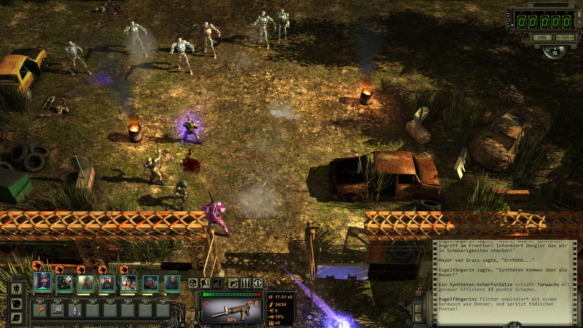 Beim Verlassen des Gebäudes schreit die Kugelfängerin (Bullet Grabber) [2] Alarm, weil sechs Syntheten das Haupttor angreifen. Ihr könnt ihnen zur Hilfe eilen, was euch ein Lob von Dengler einbringt. Zusammen mit den Läderlappen (Leather Jerks) sollte der Kampf einfach sein.